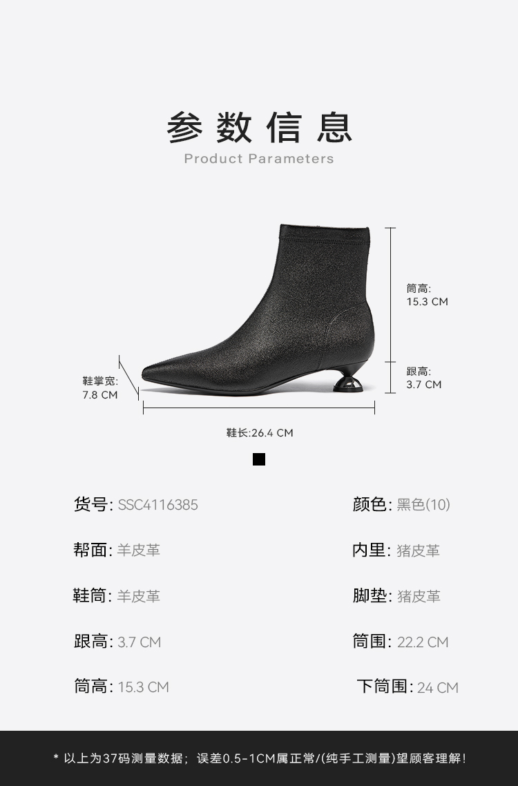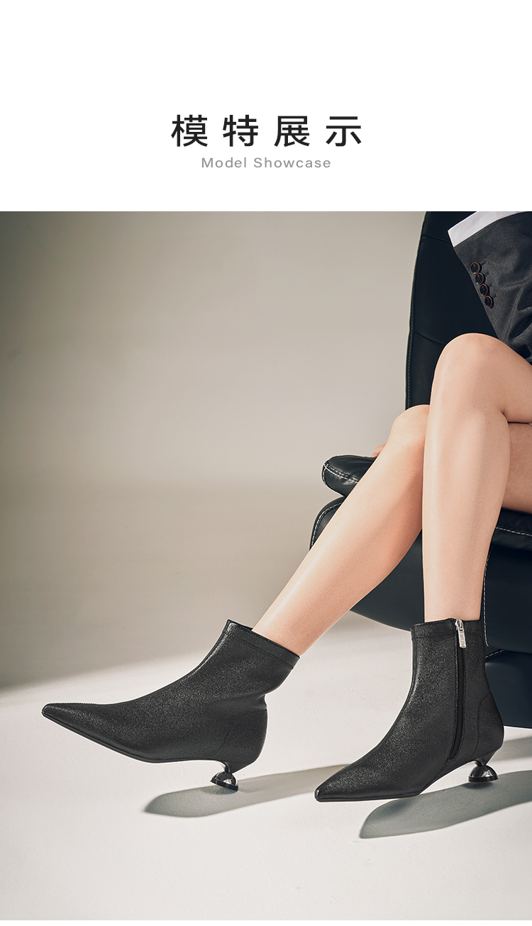 星期六法式气质尖头素面短靴SSC4116385