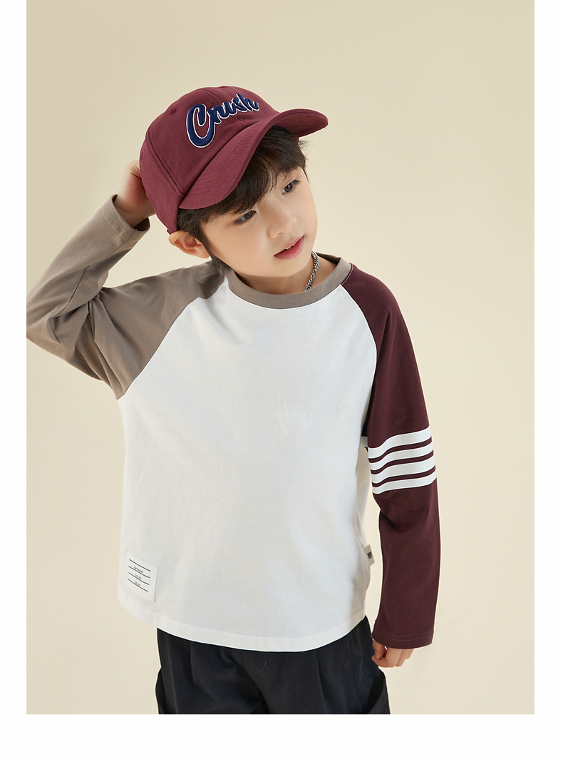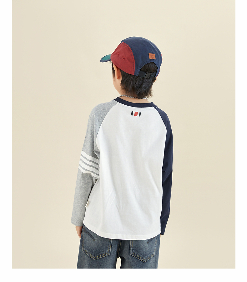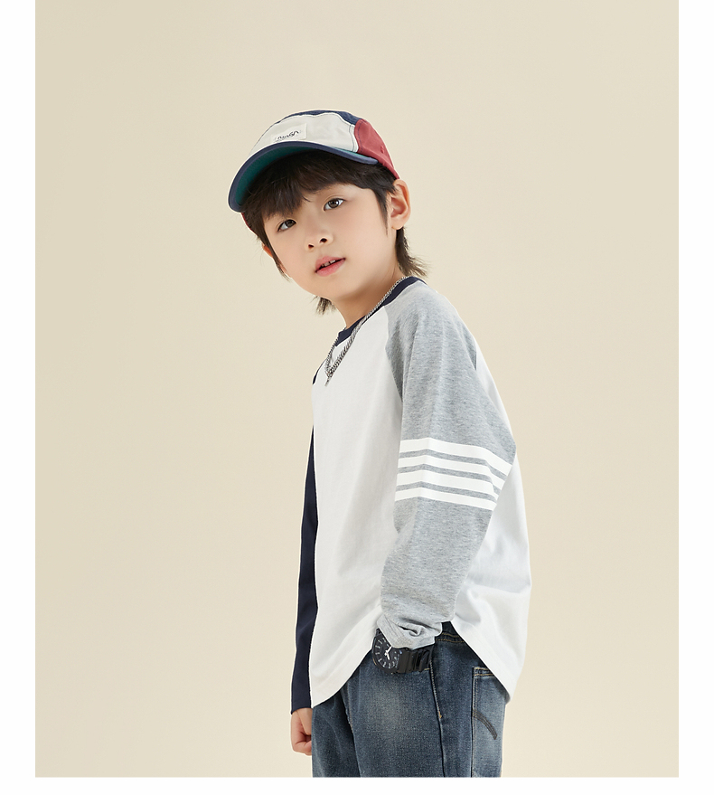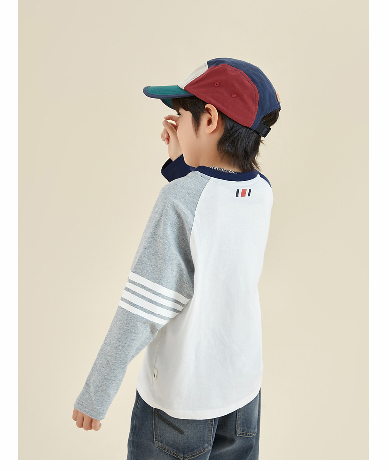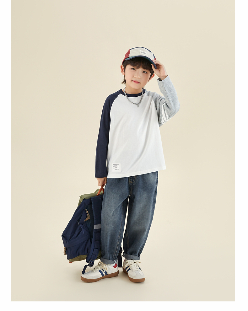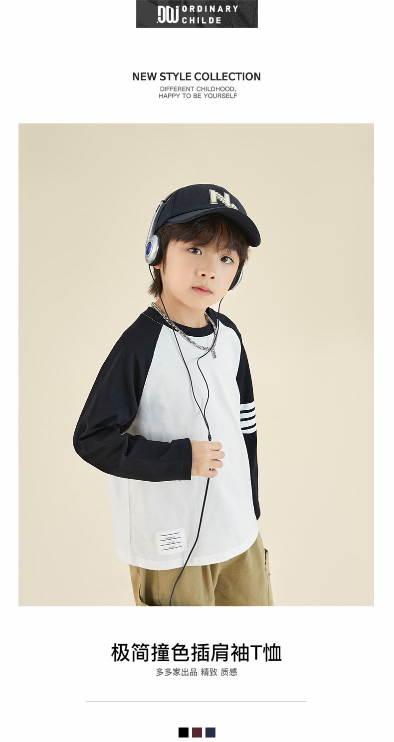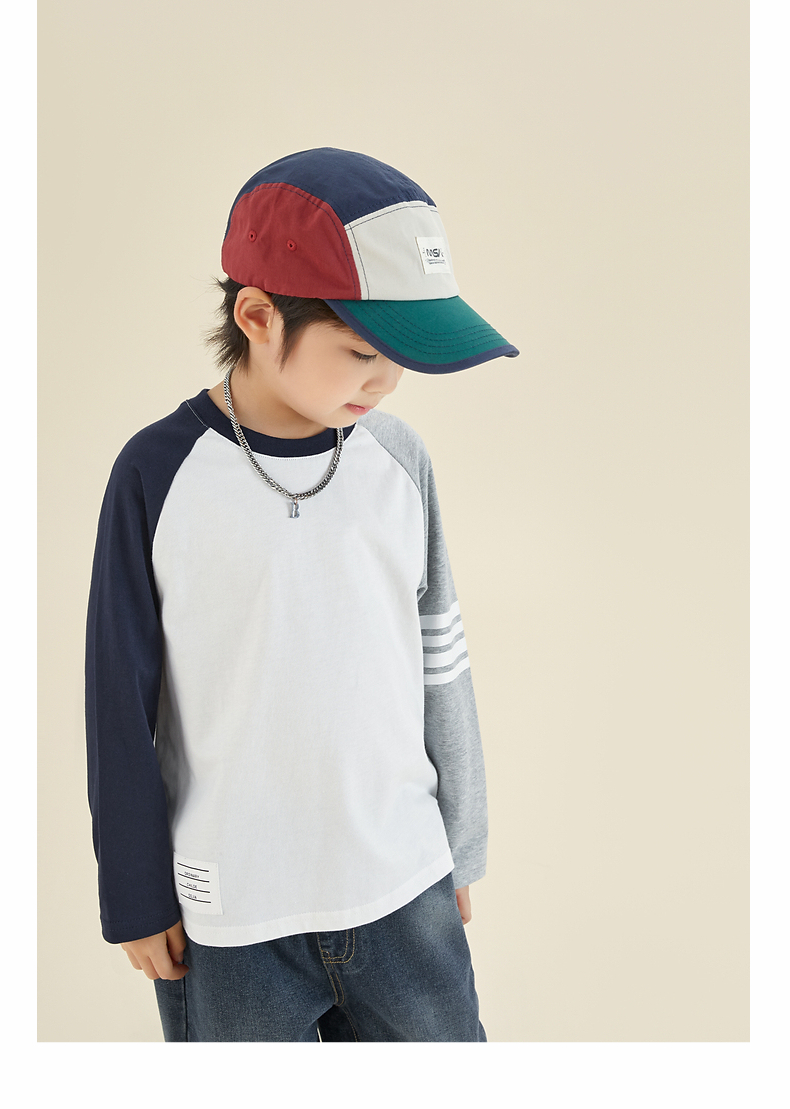 【宠粉专享团购价29.9】多多家男童长袖T恤纯棉撞色插肩袖儿童上衣2024新款百搭男孩春装9094