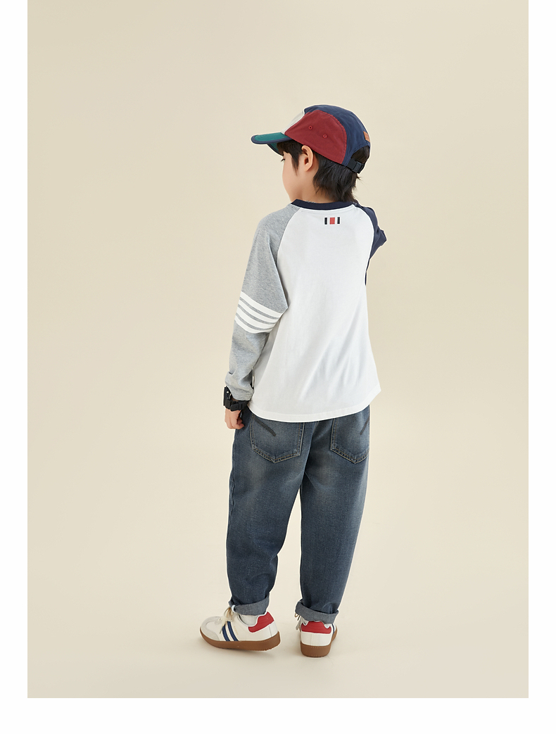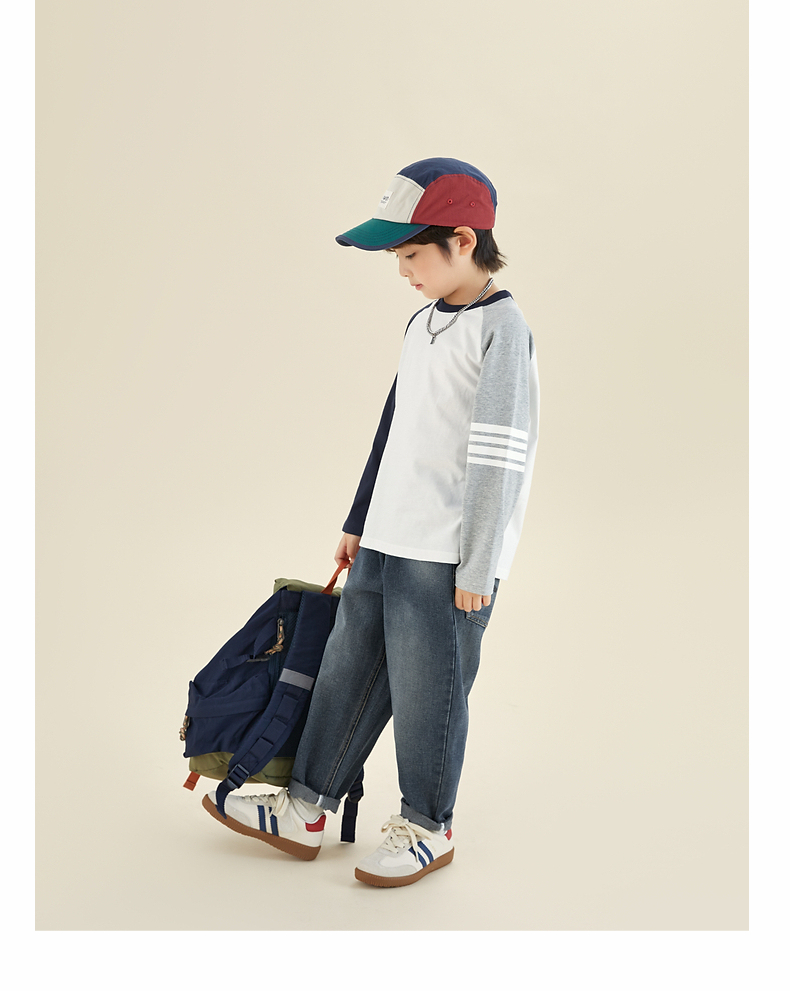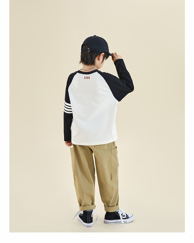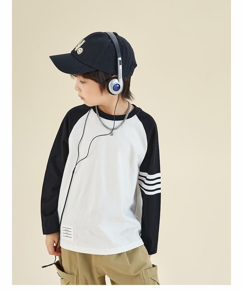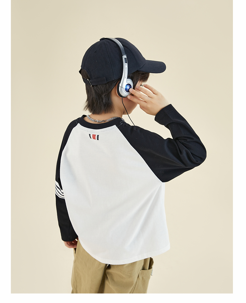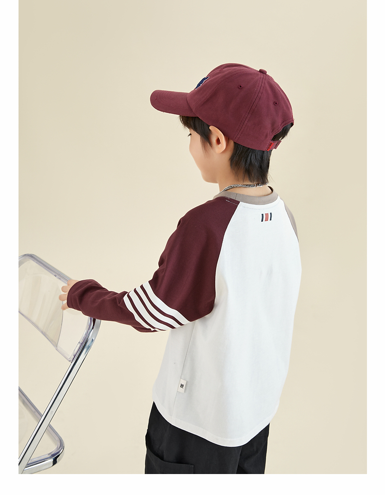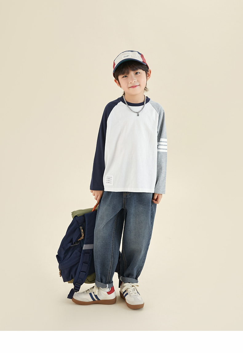 【宠粉专享团购价29.9】多多家男童长袖T恤纯棉撞色插肩袖儿童上衣2024新款百搭男孩春装9094