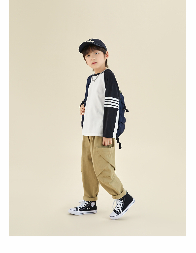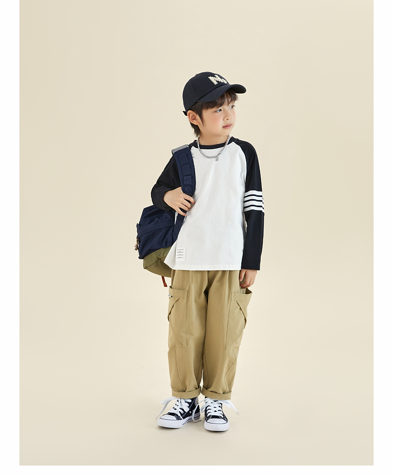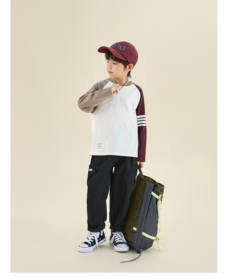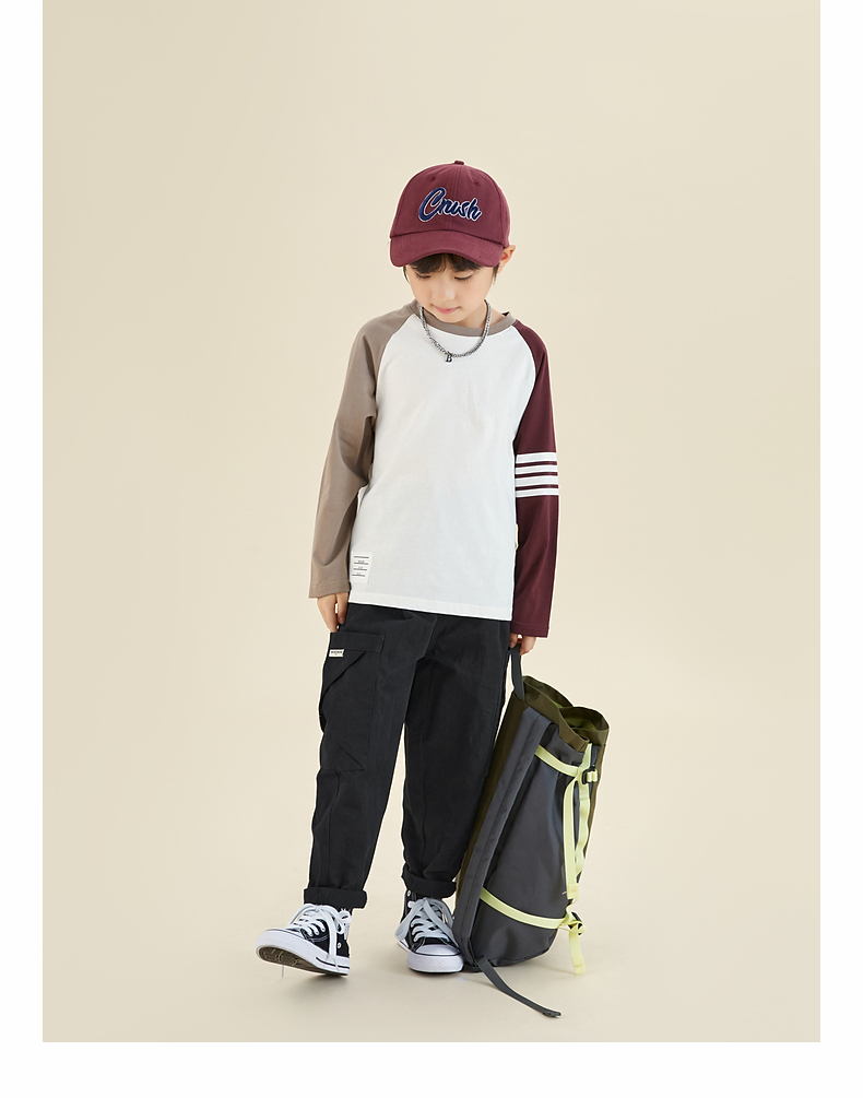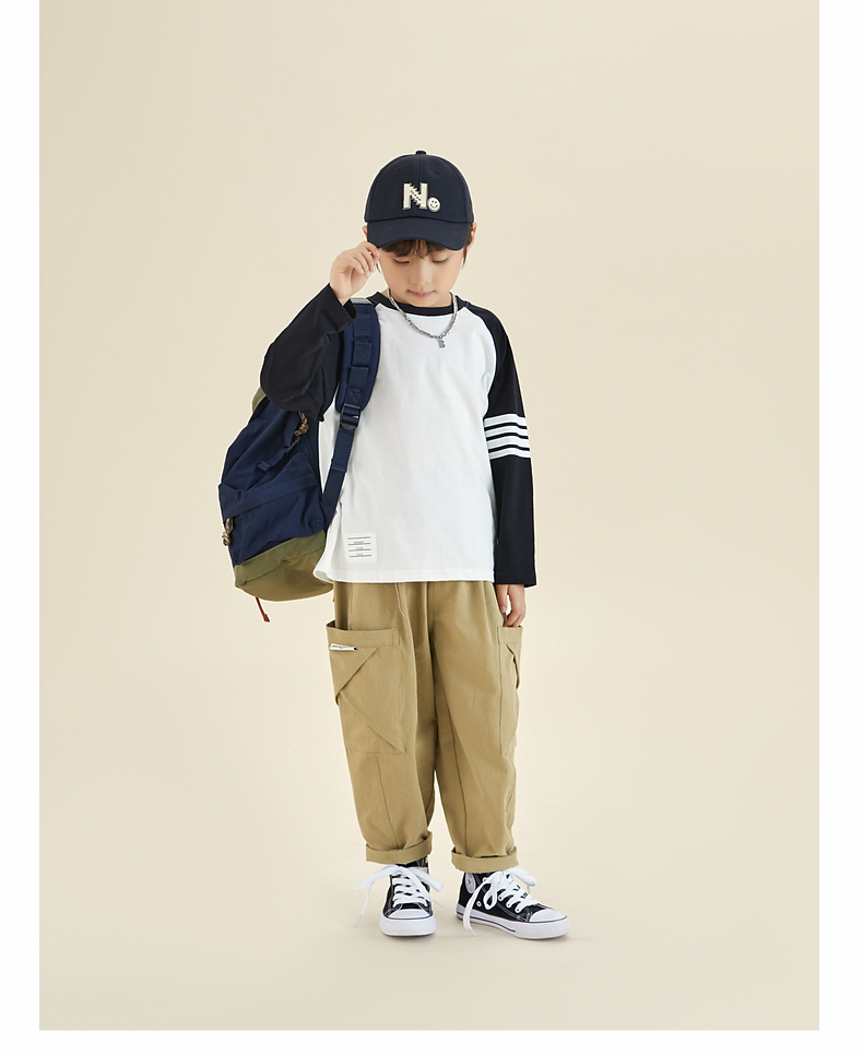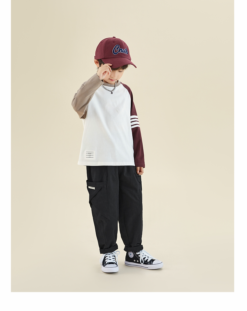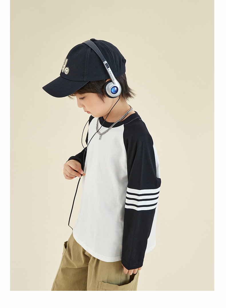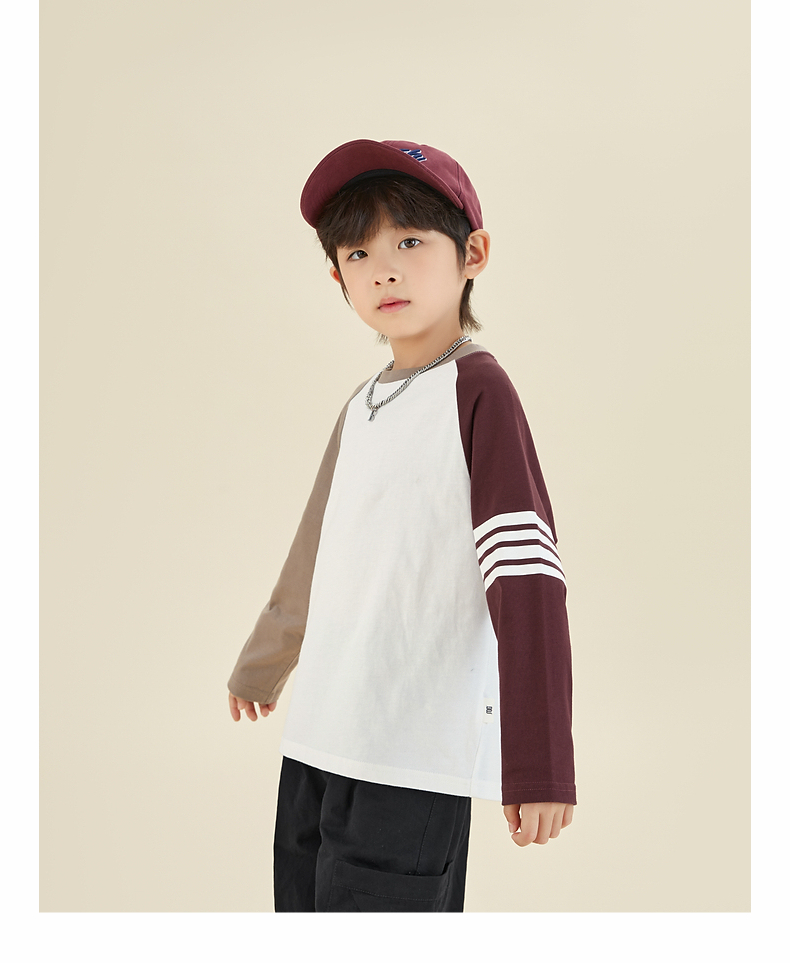 【宠粉专享团购价29.9】多多家男童长袖T恤纯棉撞色插肩袖儿童上衣2024新款百搭男孩春装9094