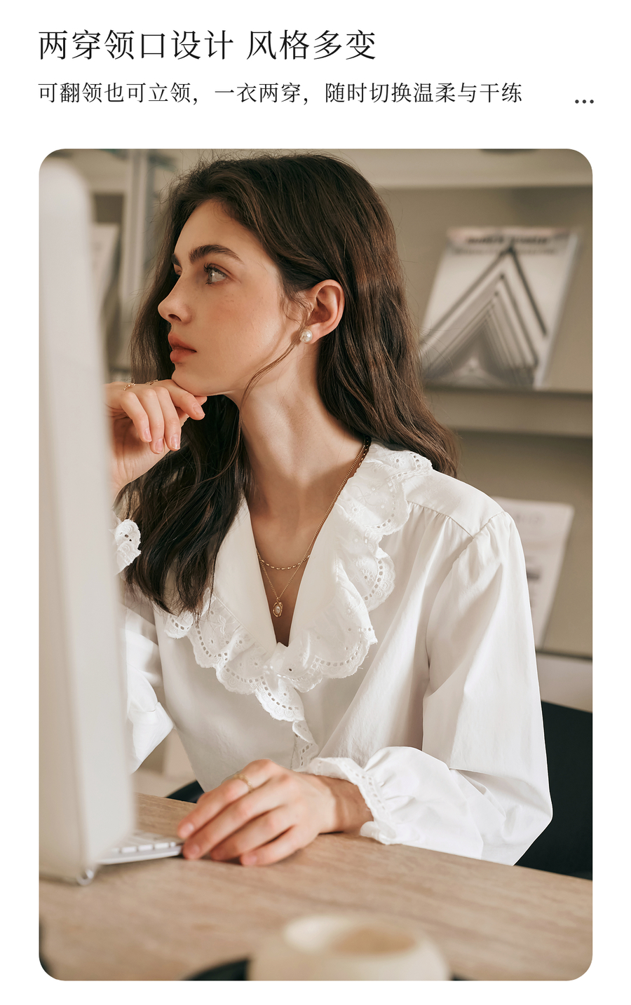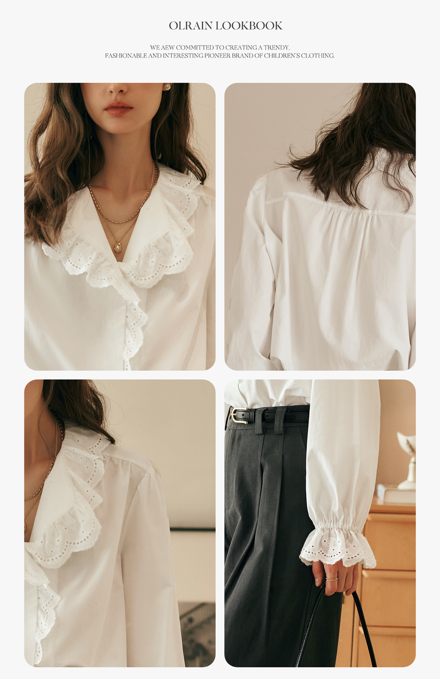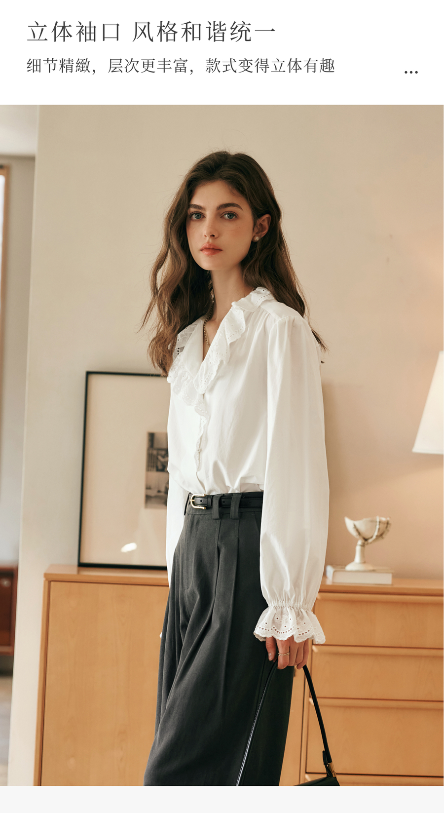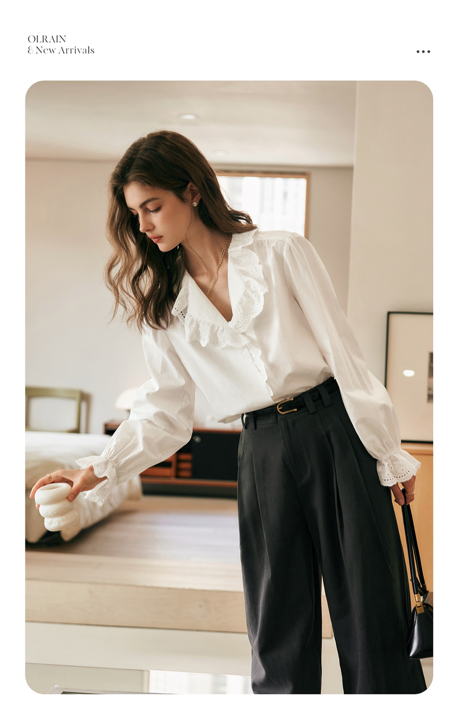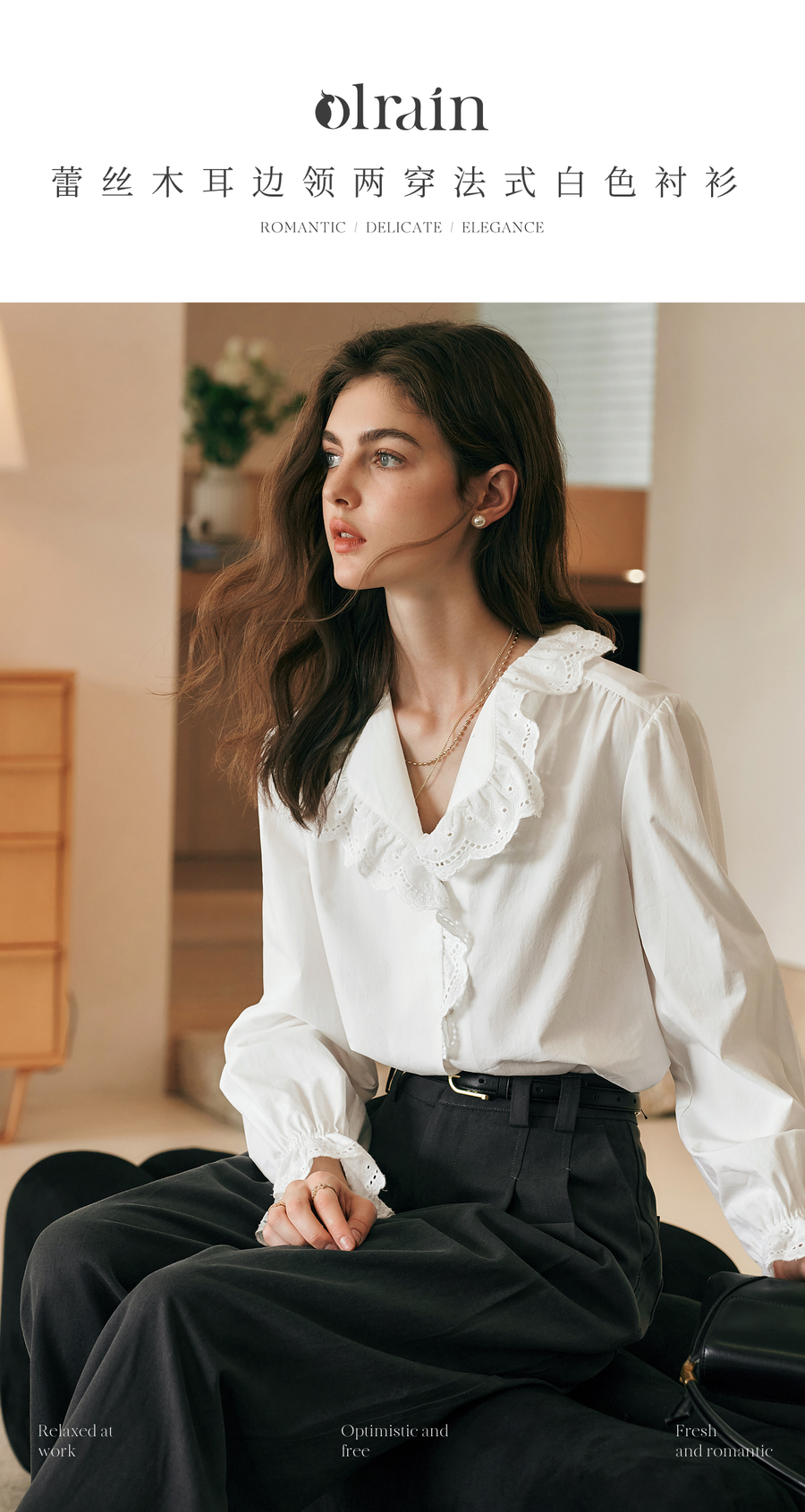 OLrain欧芮儿法式蕾丝衬衫女冬季2024年新款气质通勤木耳边领衬衣