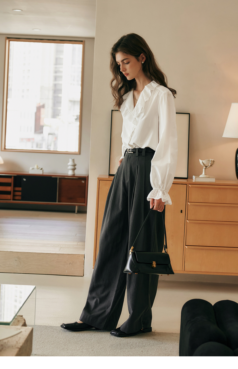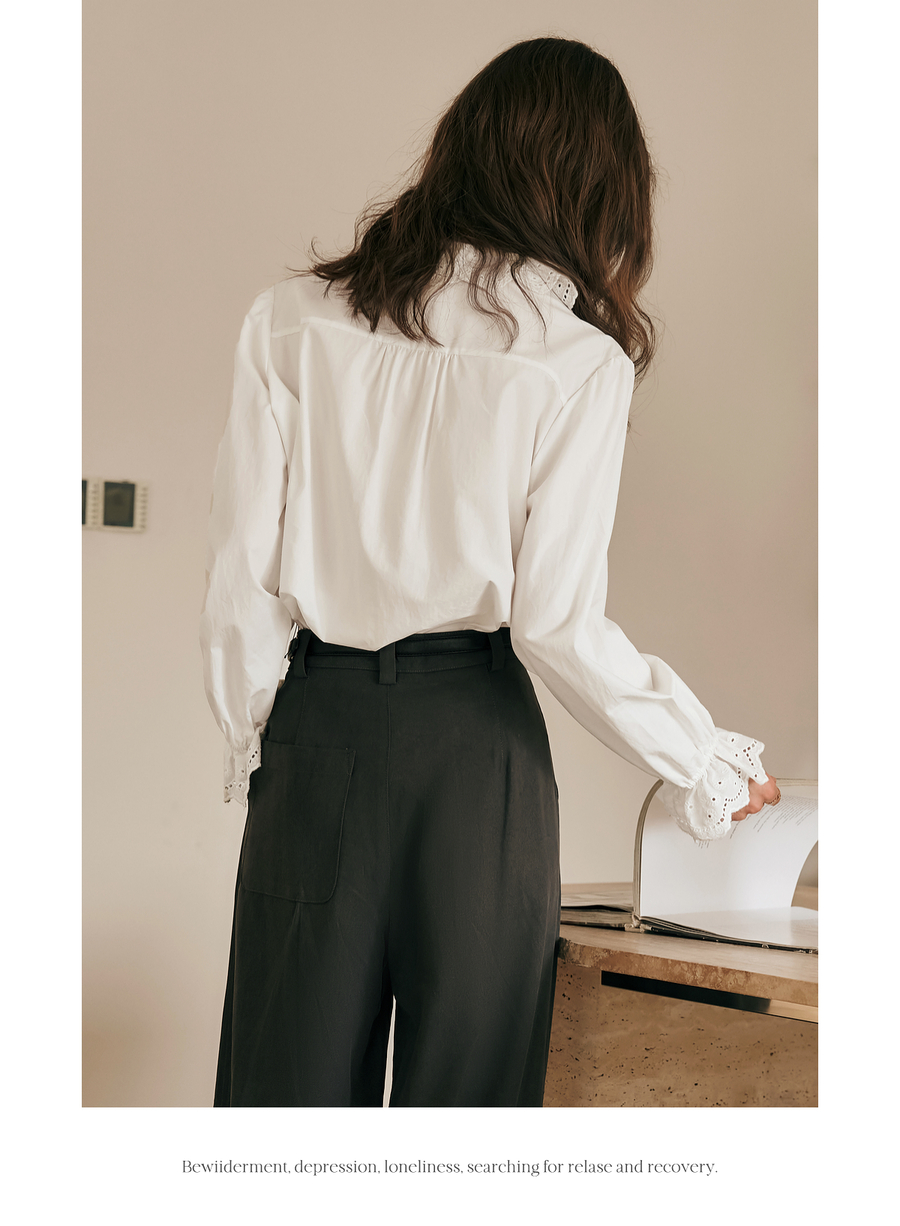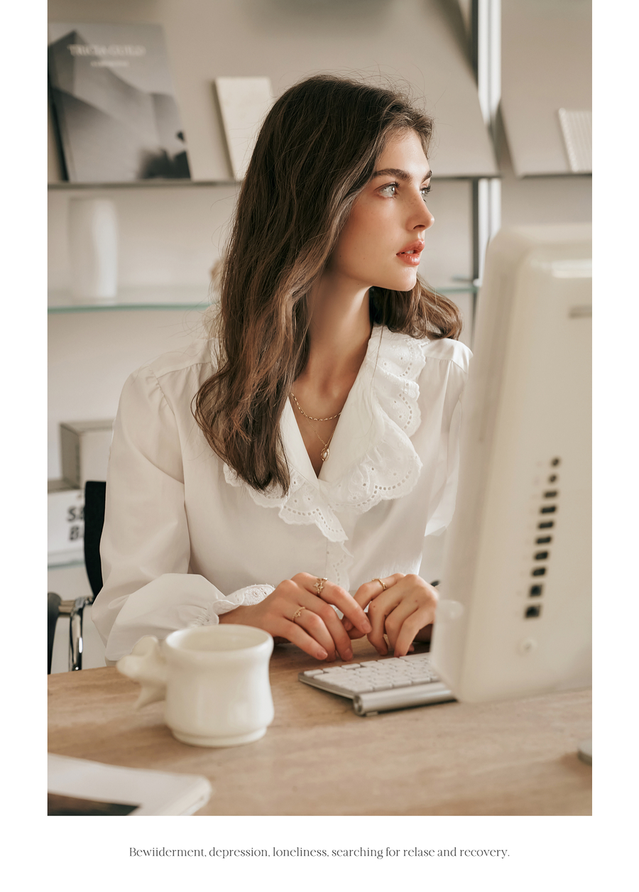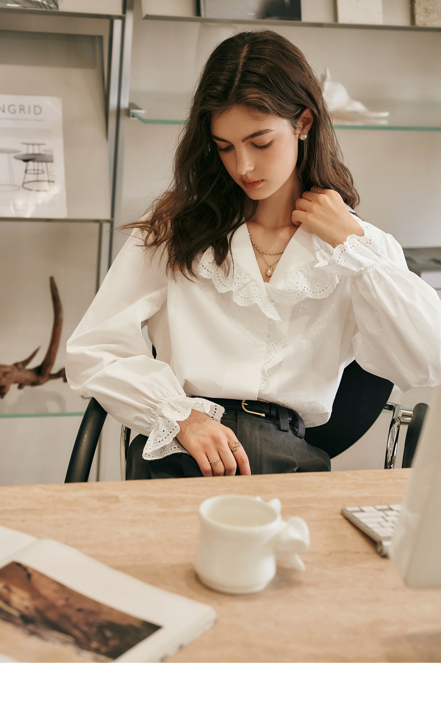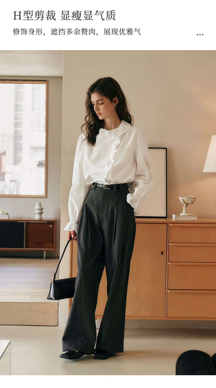 OLrain欧芮儿法式蕾丝衬衫女冬季2024年新款气质通勤木耳边领衬衣