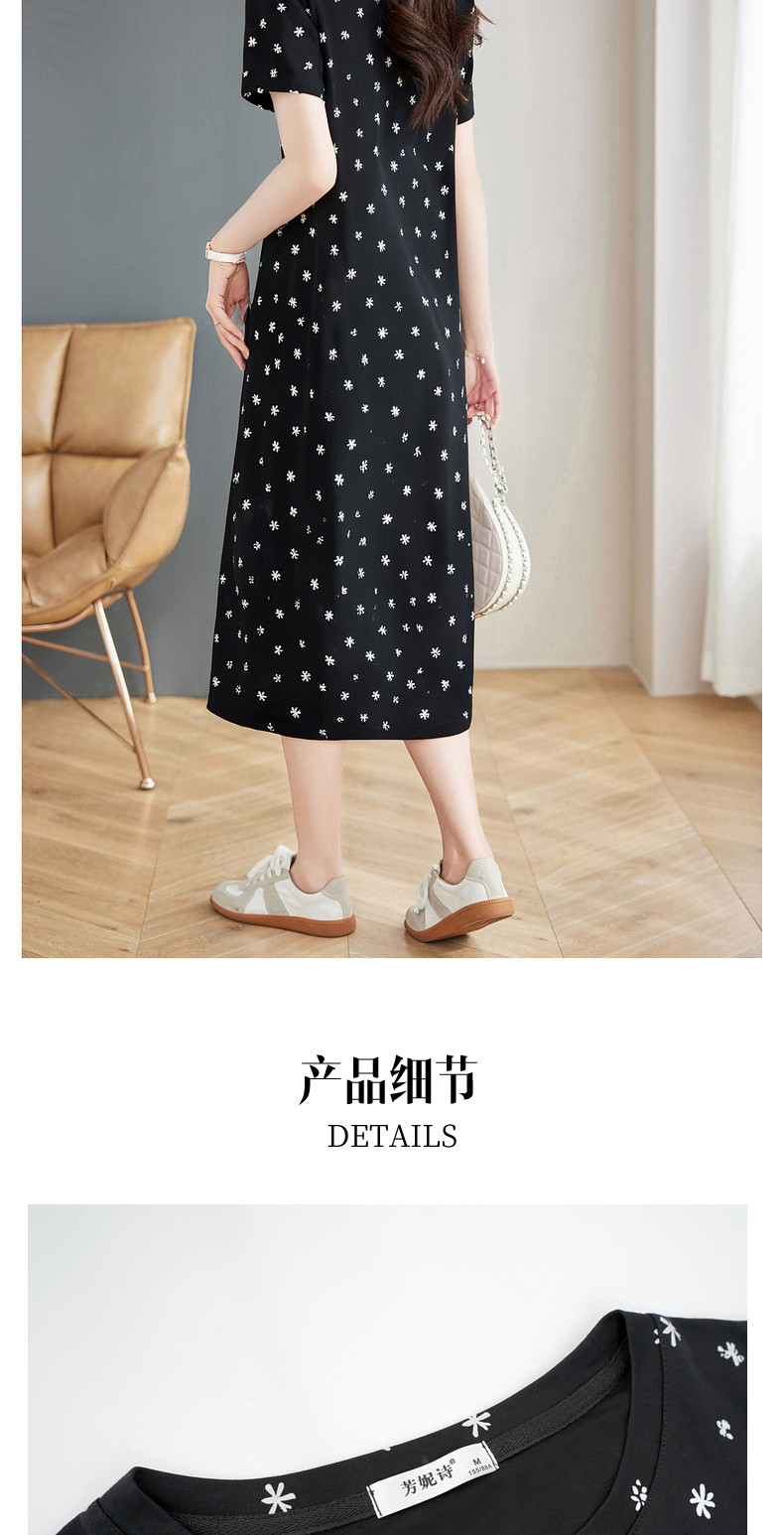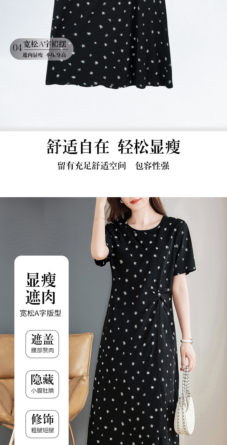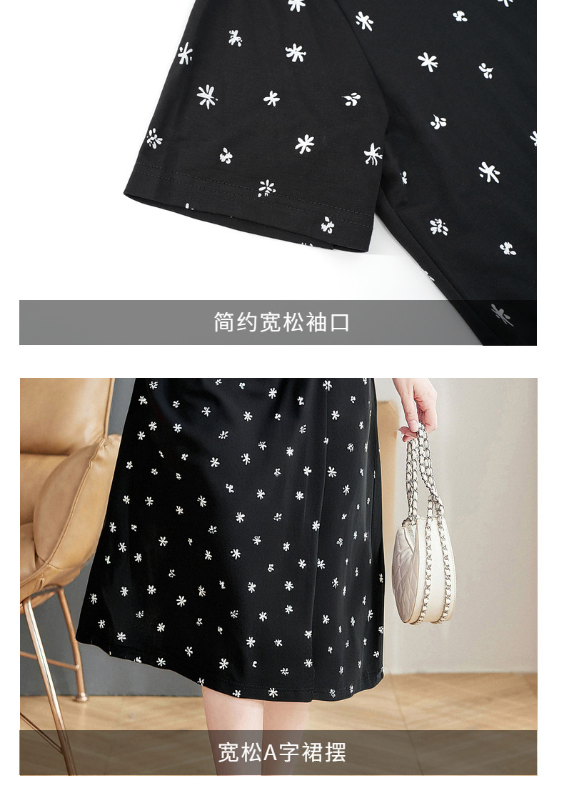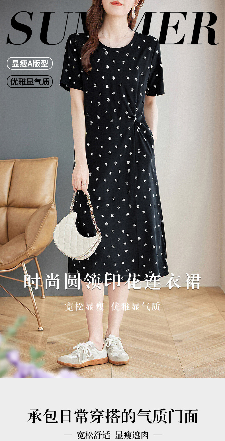 短袖直筒连衣裙2025新款今年流行爆款大码女装减龄印花裙子高级感