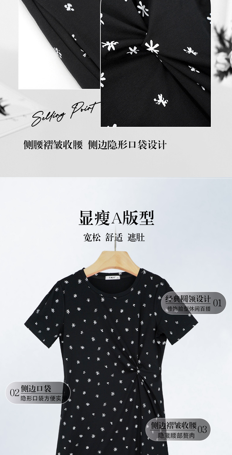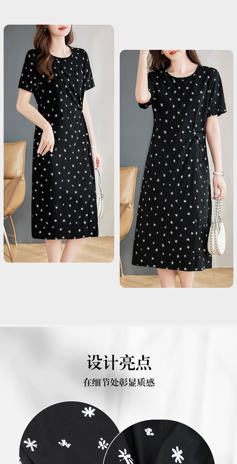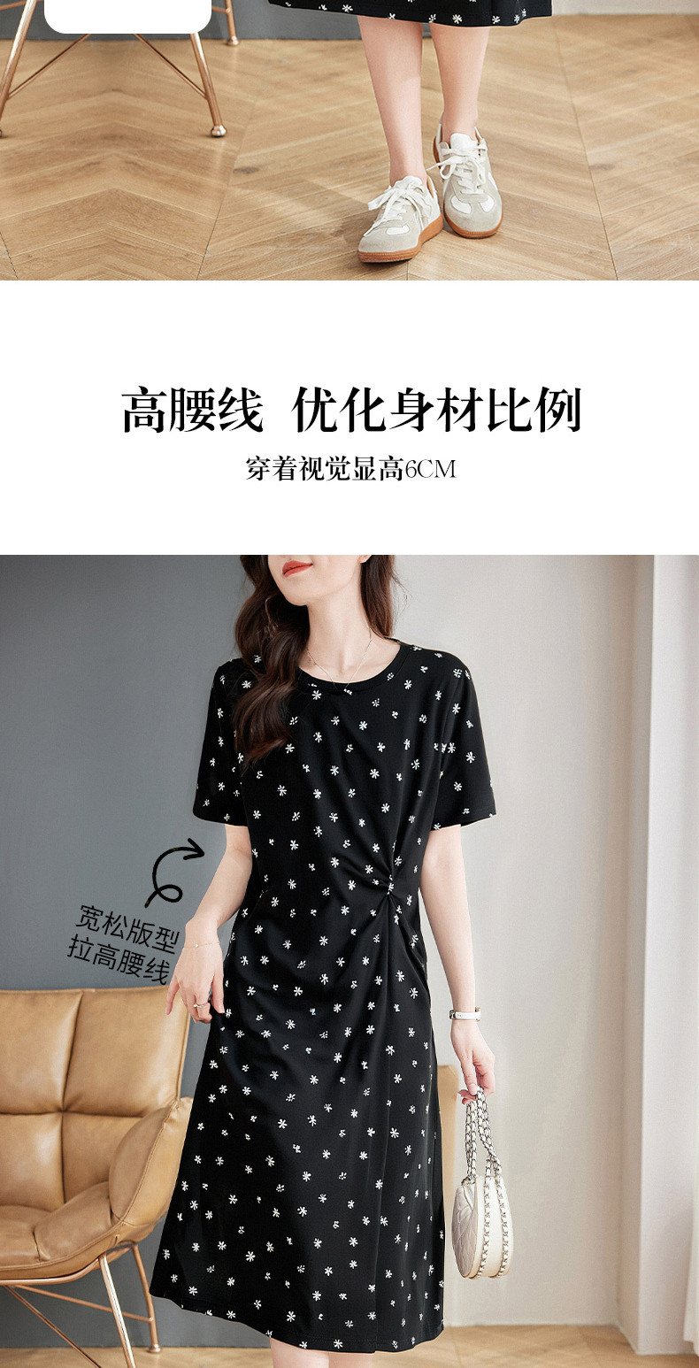 短袖直筒连衣裙2025新款今年流行爆款大码女装减龄印花裙子高级感