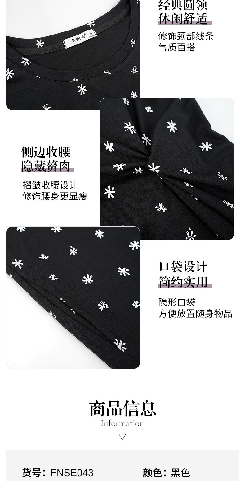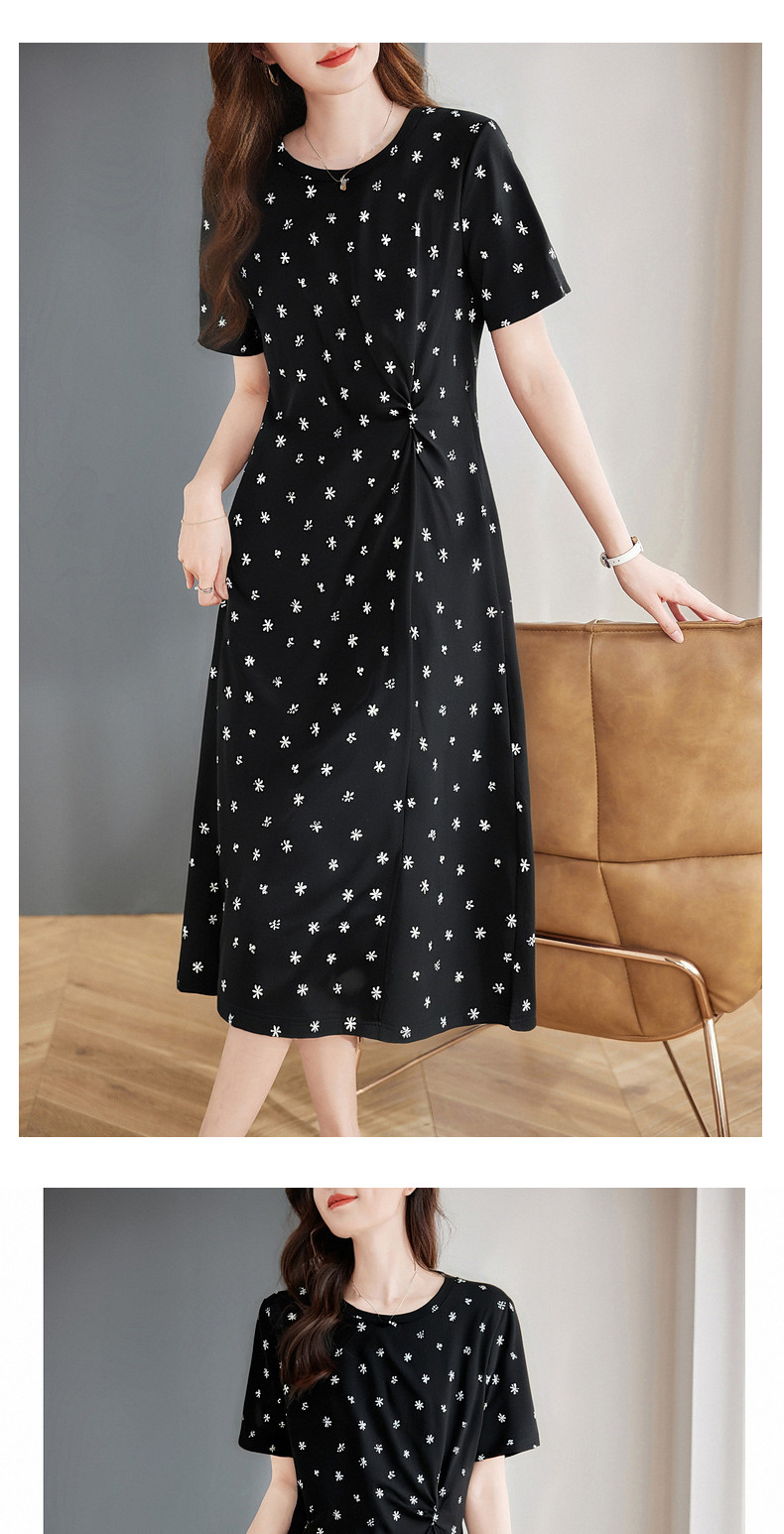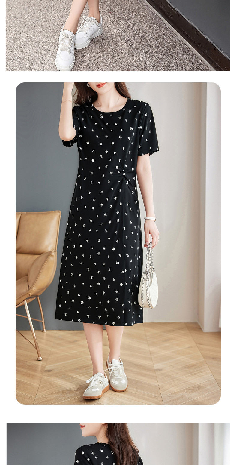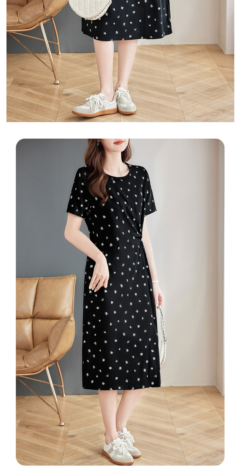 短袖直筒连衣裙2025新款今年流行爆款大码女装减龄印花裙子高级感