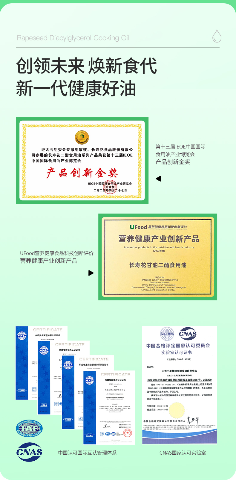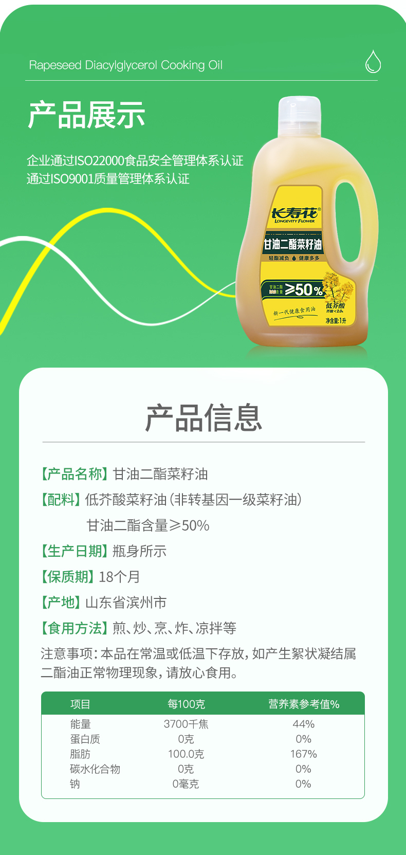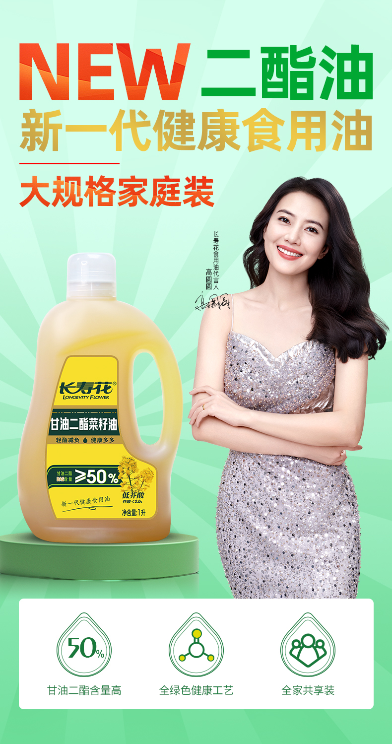 长寿花轻酯甘油二酯食用油50%DAG含量 1L*4桶 低芥酸菜籽二酯油家庭装