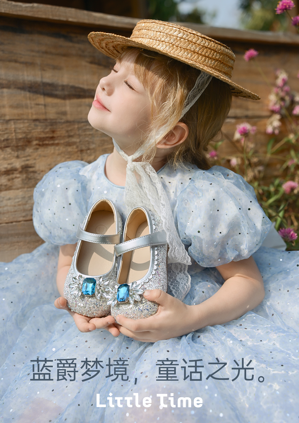 littletime女童公主鞋2025春新款儿童洋气时尚水晶鞋礼服软底单鞋