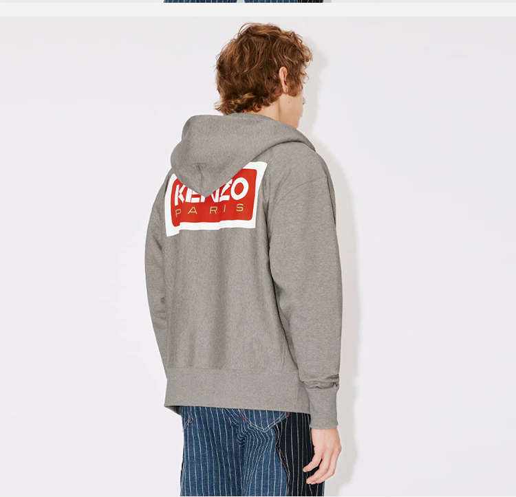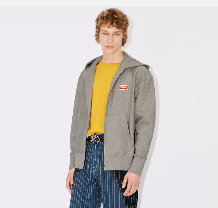KENZO 高田贤三 男士徽标印花拉链连帽卫衣 浅灰色 FD65 SW100 4ME 94