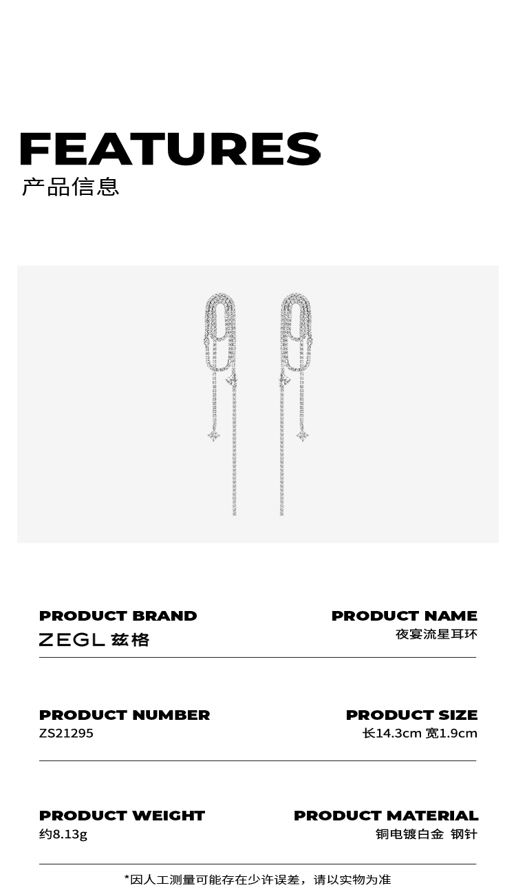 【SVIP积分兑换】ZEGL设计师夜宴派对系列流星耳环女气质长款流苏耳钉高级感耳饰品
