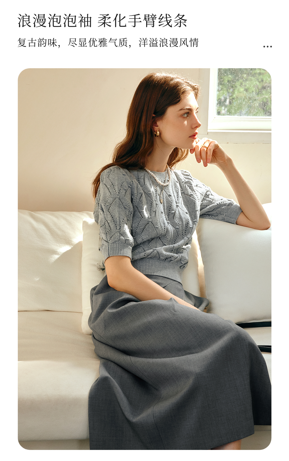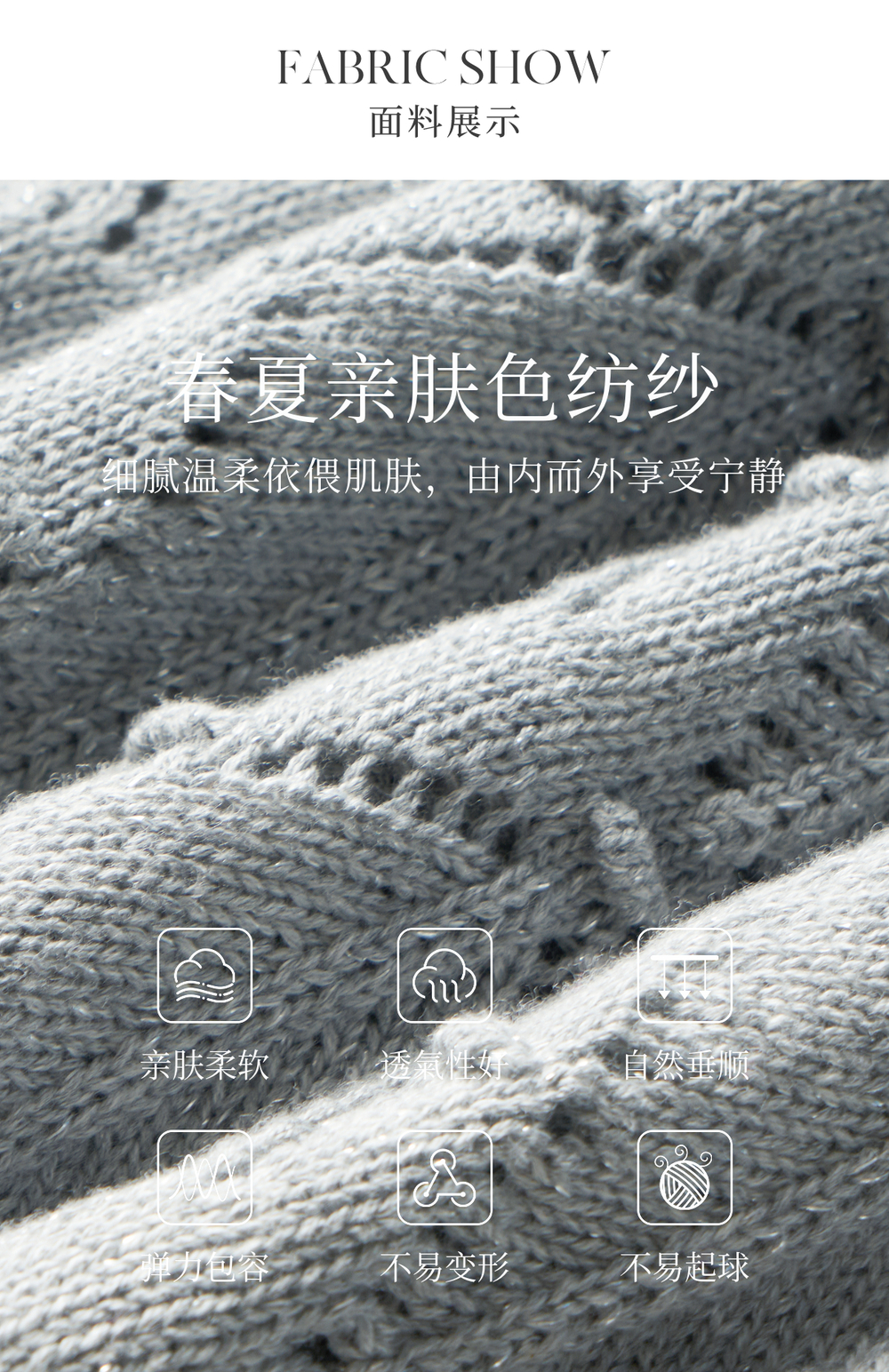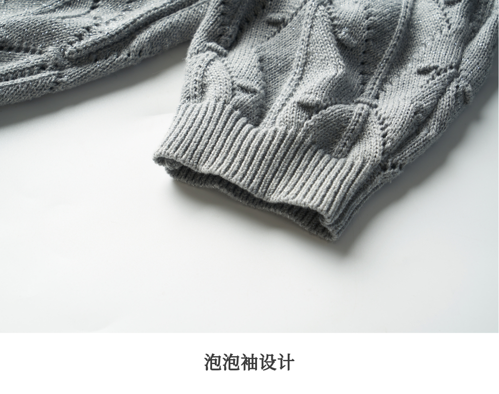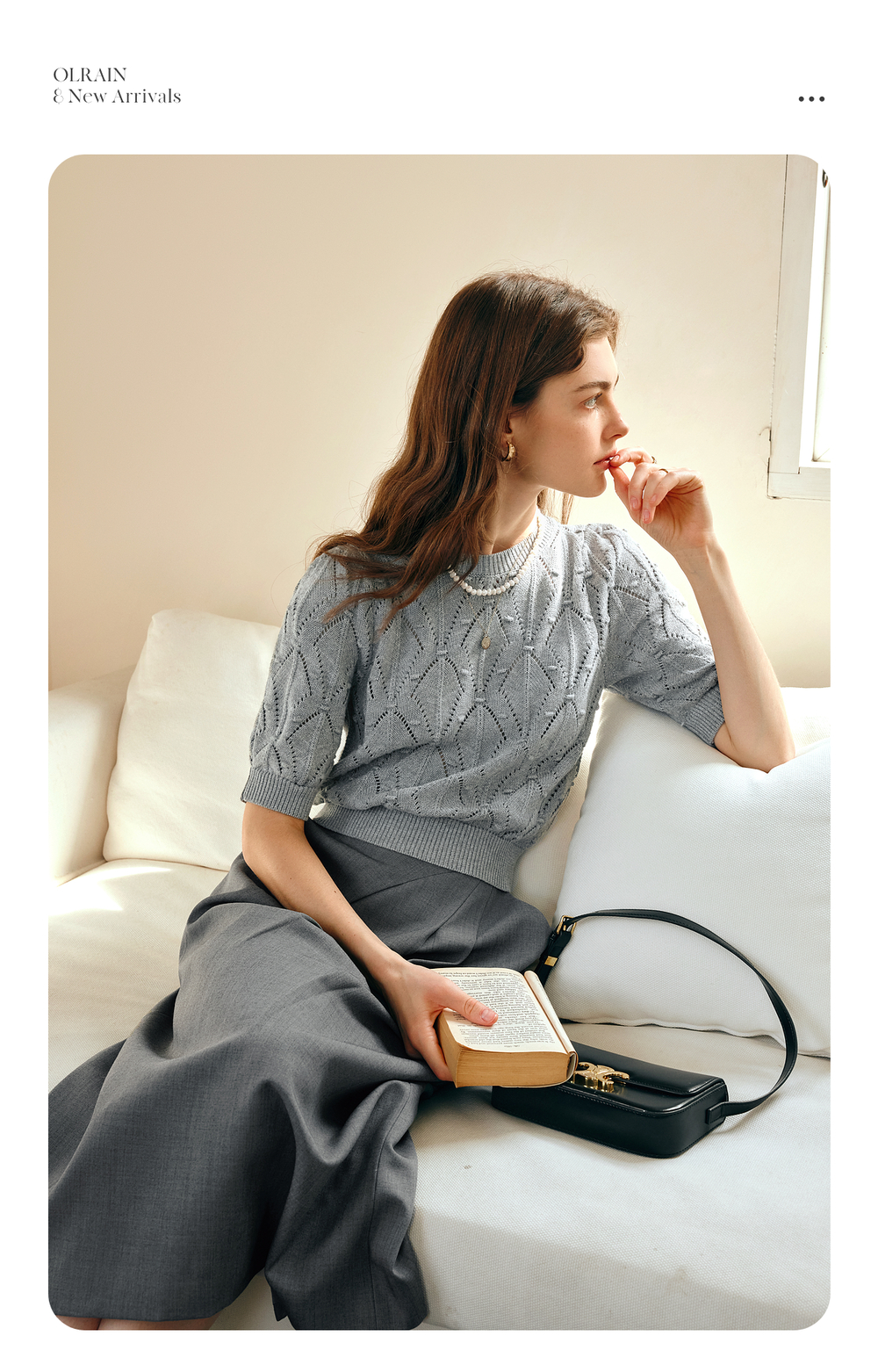 OLrain欧芮儿法式灰色针织衫女春季2025新款设计感镂空圆领套头衫