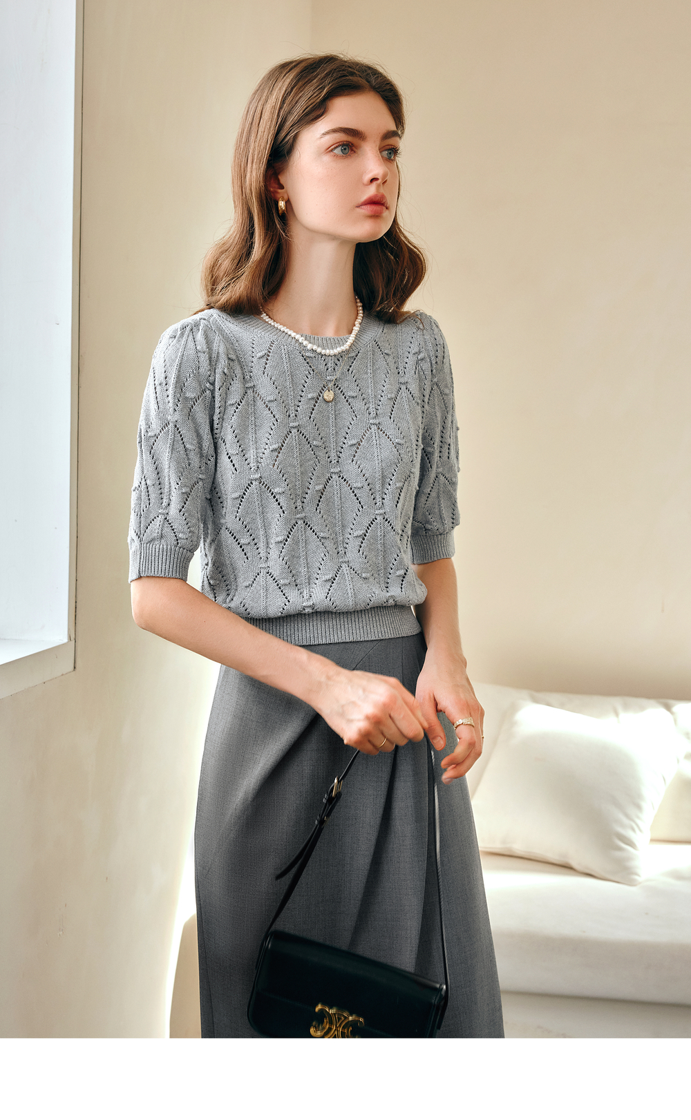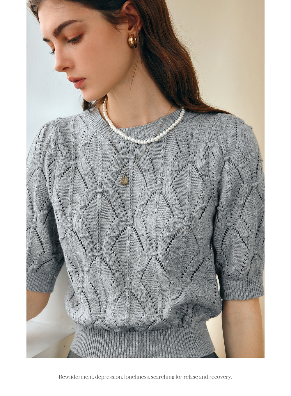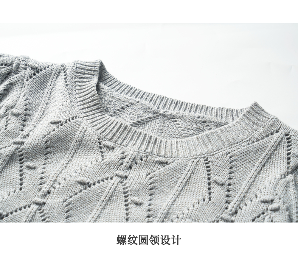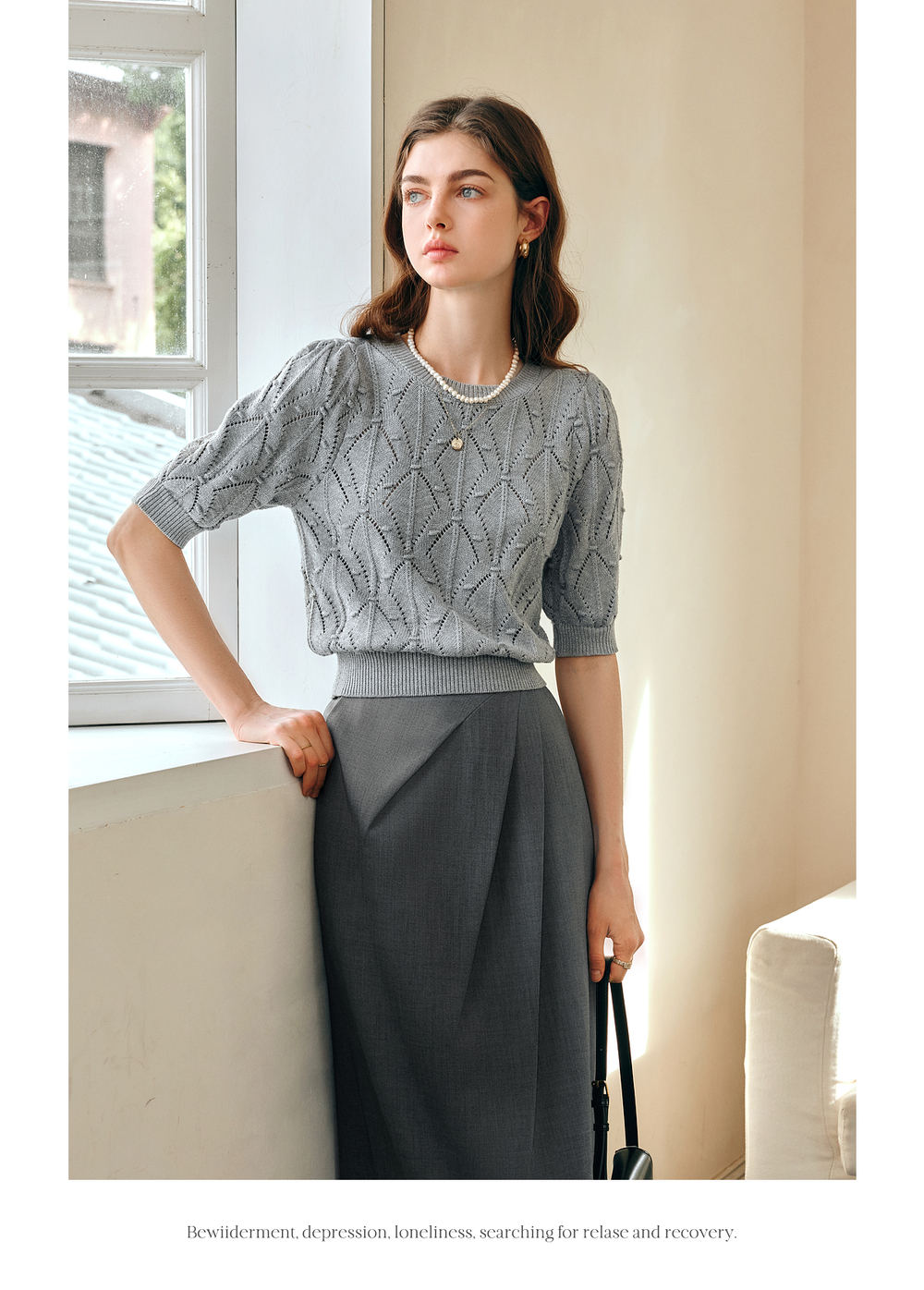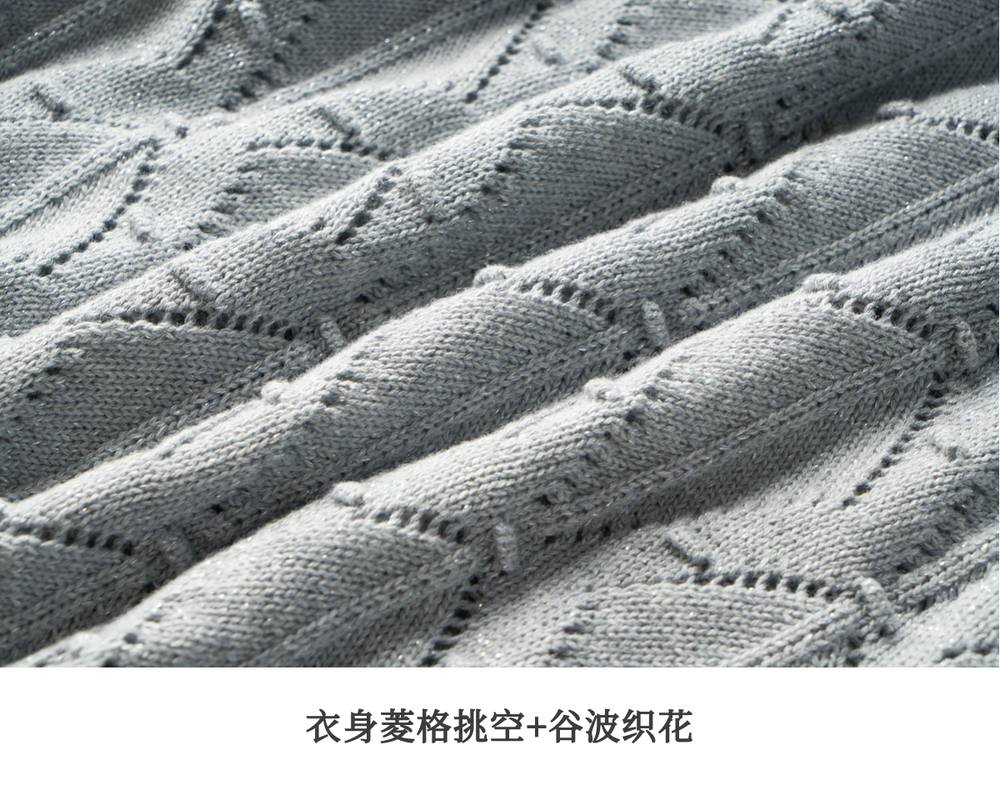 OLrain欧芮儿法式灰色针织衫女春季2025新款设计感镂空圆领套头衫