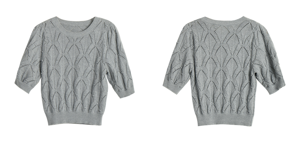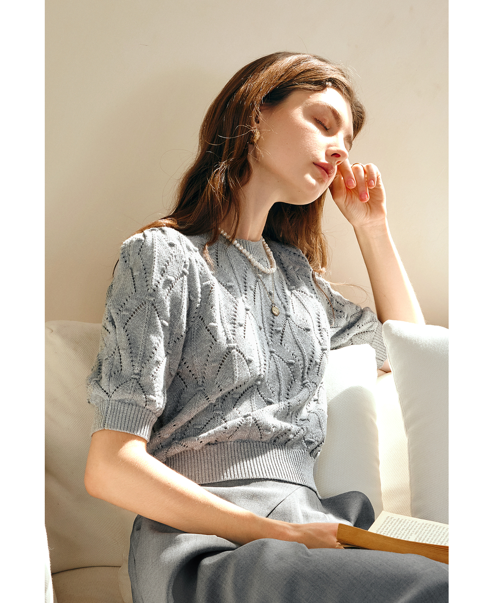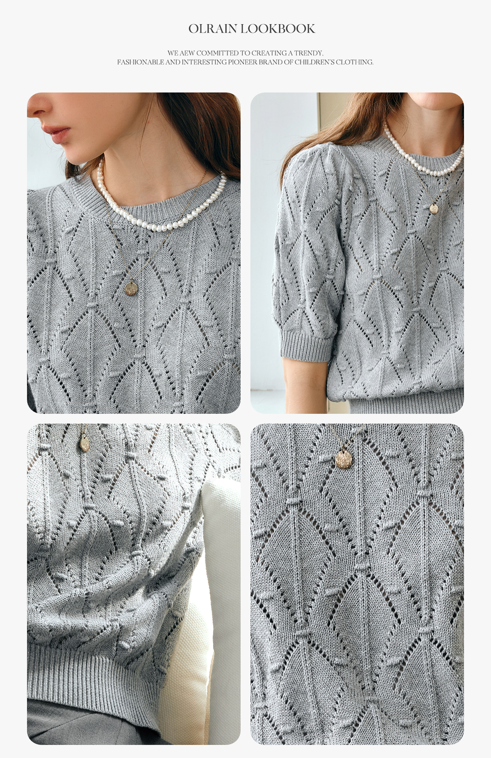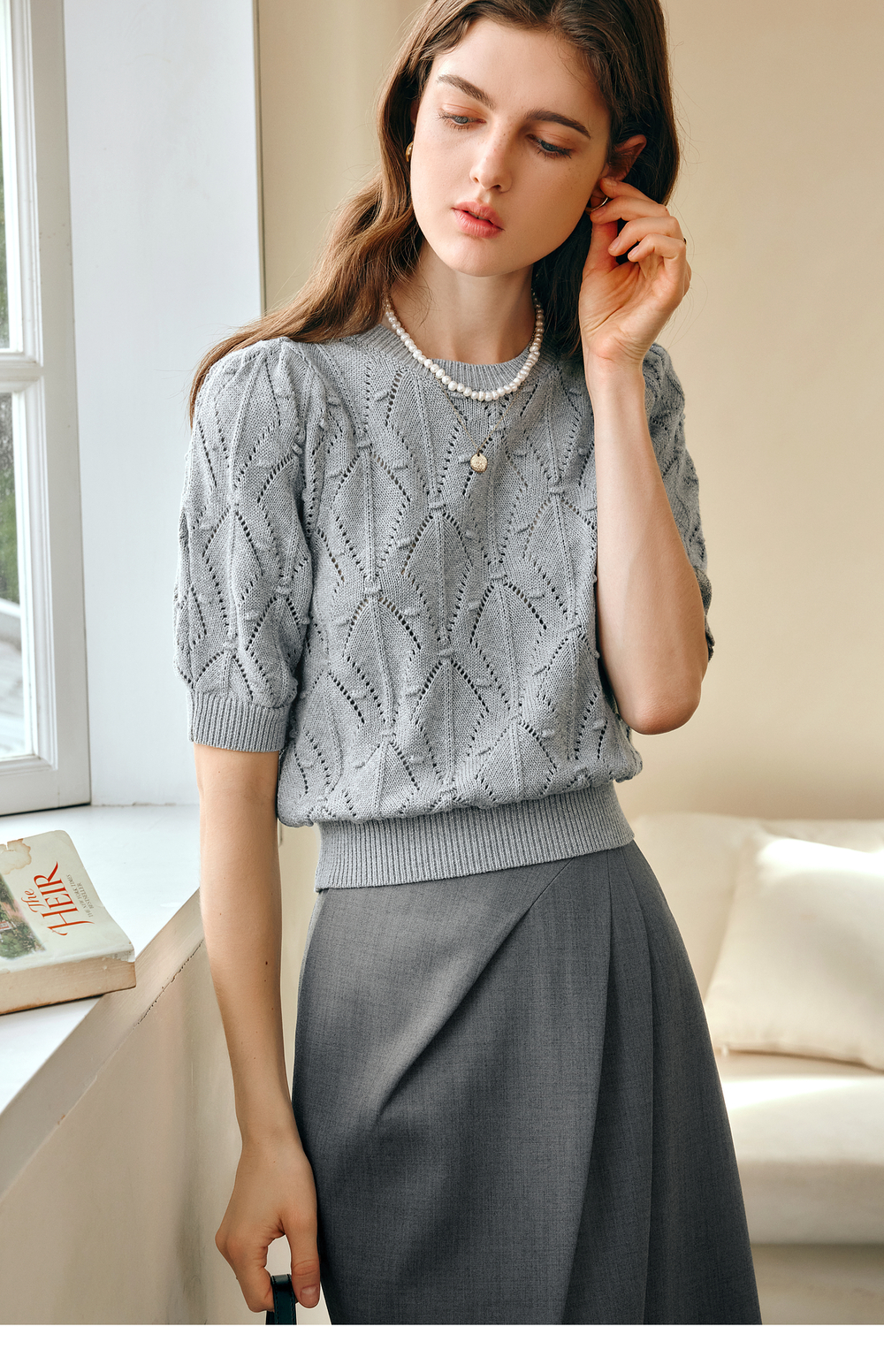 OLrain欧芮儿法式灰色针织衫女春季2025新款设计感镂空圆领套头衫