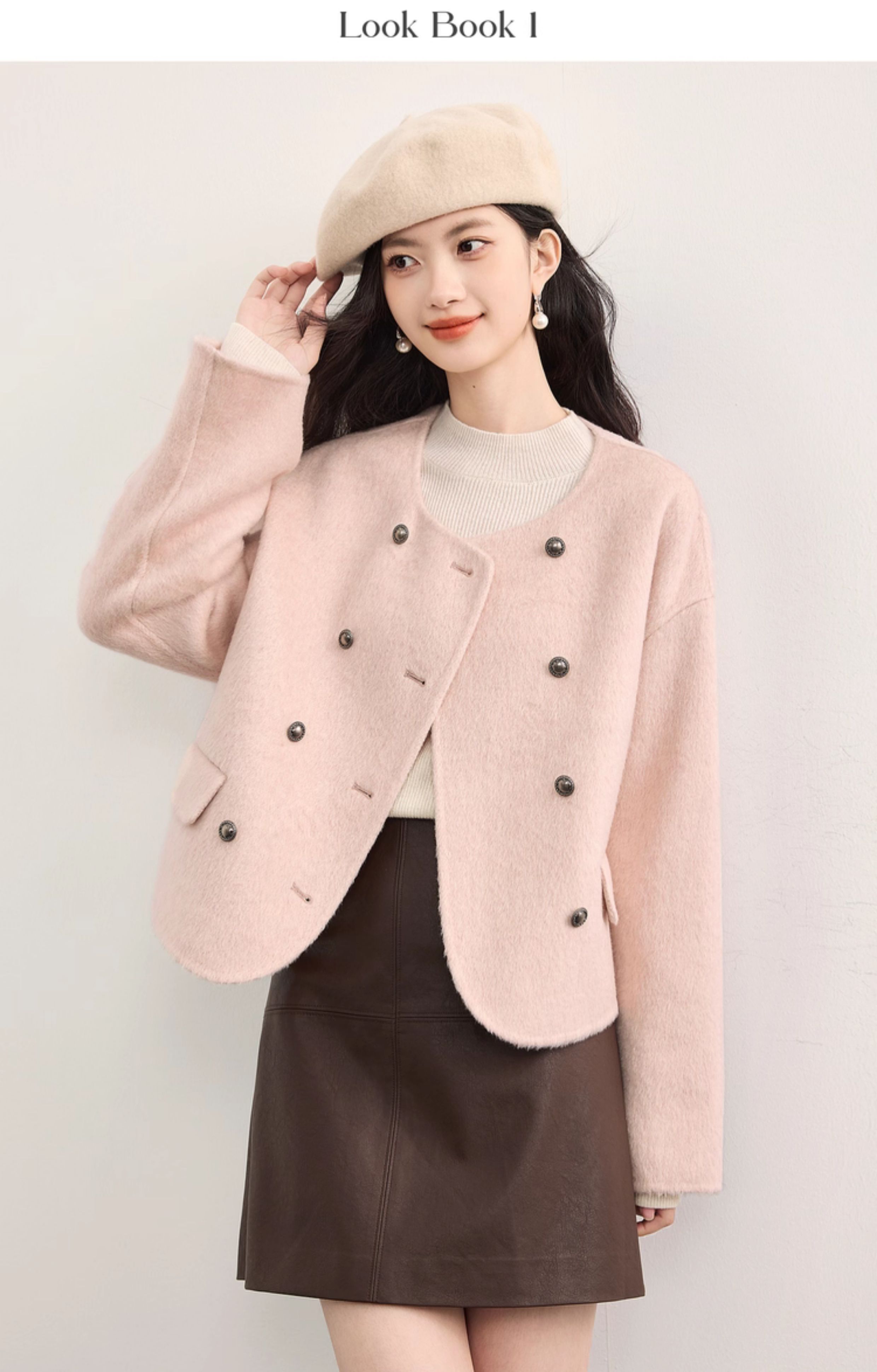 【周末秒杀】熙世界小香风羊毛双面呢外套女小个子2025秋冬新款山羊绒短款大衣