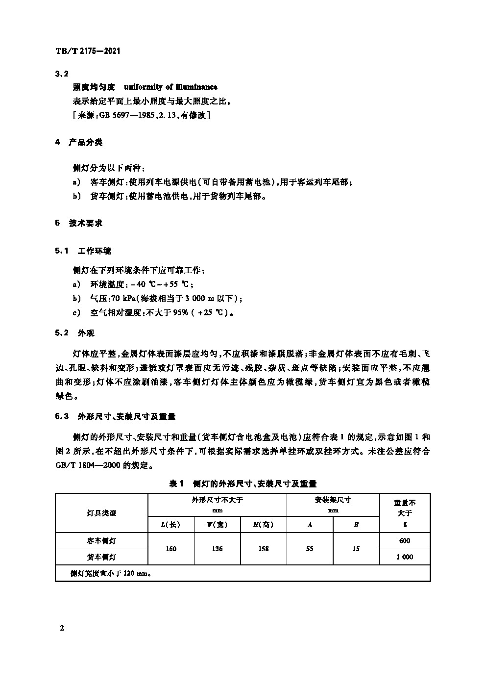 本标准为铁道行业标准《列车尾部侧灯》,由西安全路通号器材研究有限公司归口,标准号为TB/T 2175-2021。