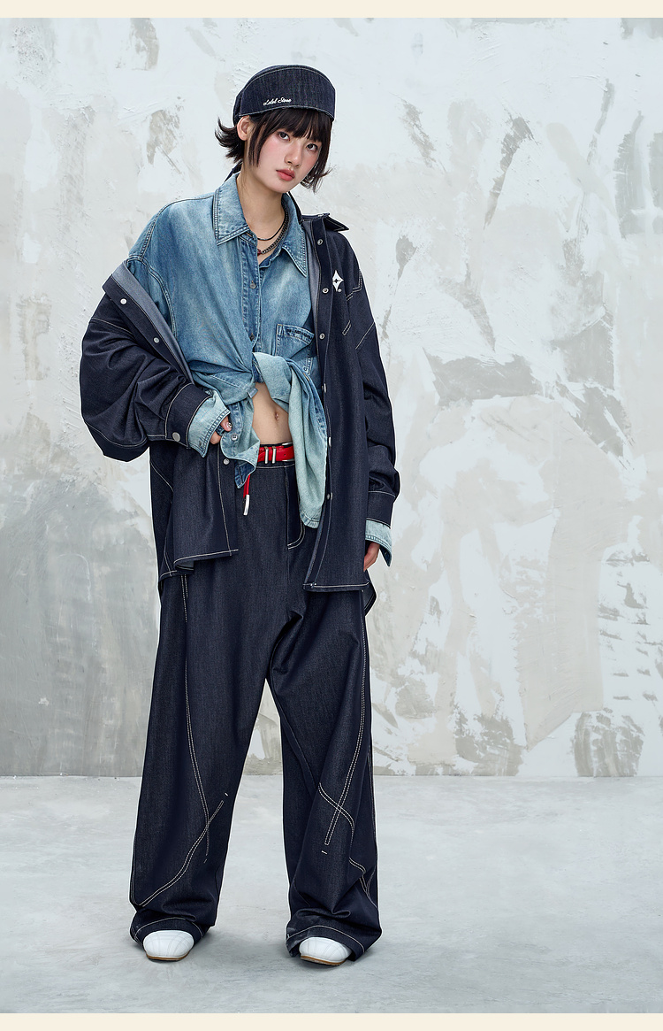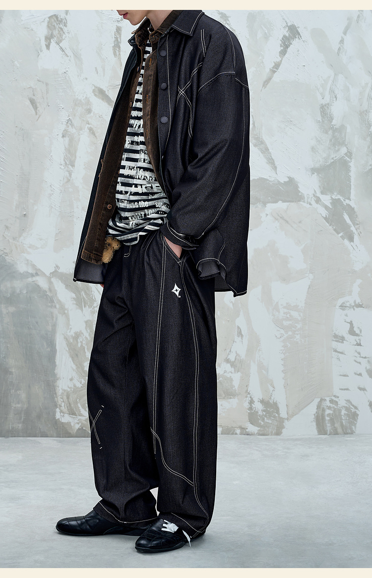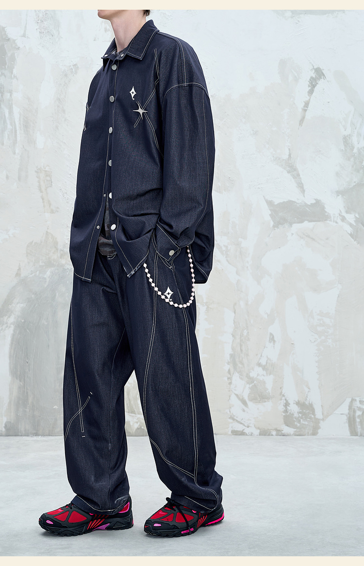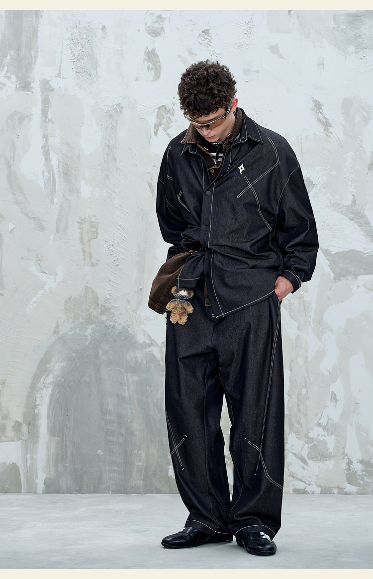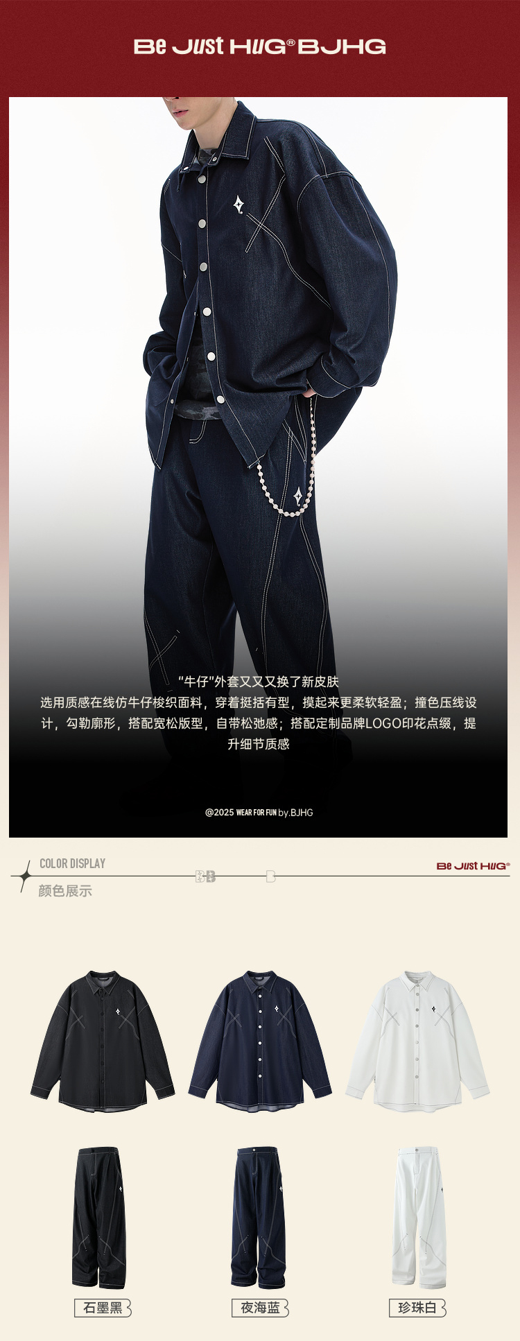 BJHG不计后果新款时尚套装外套男女款秋季休闲裤子高街仿牛仔套装