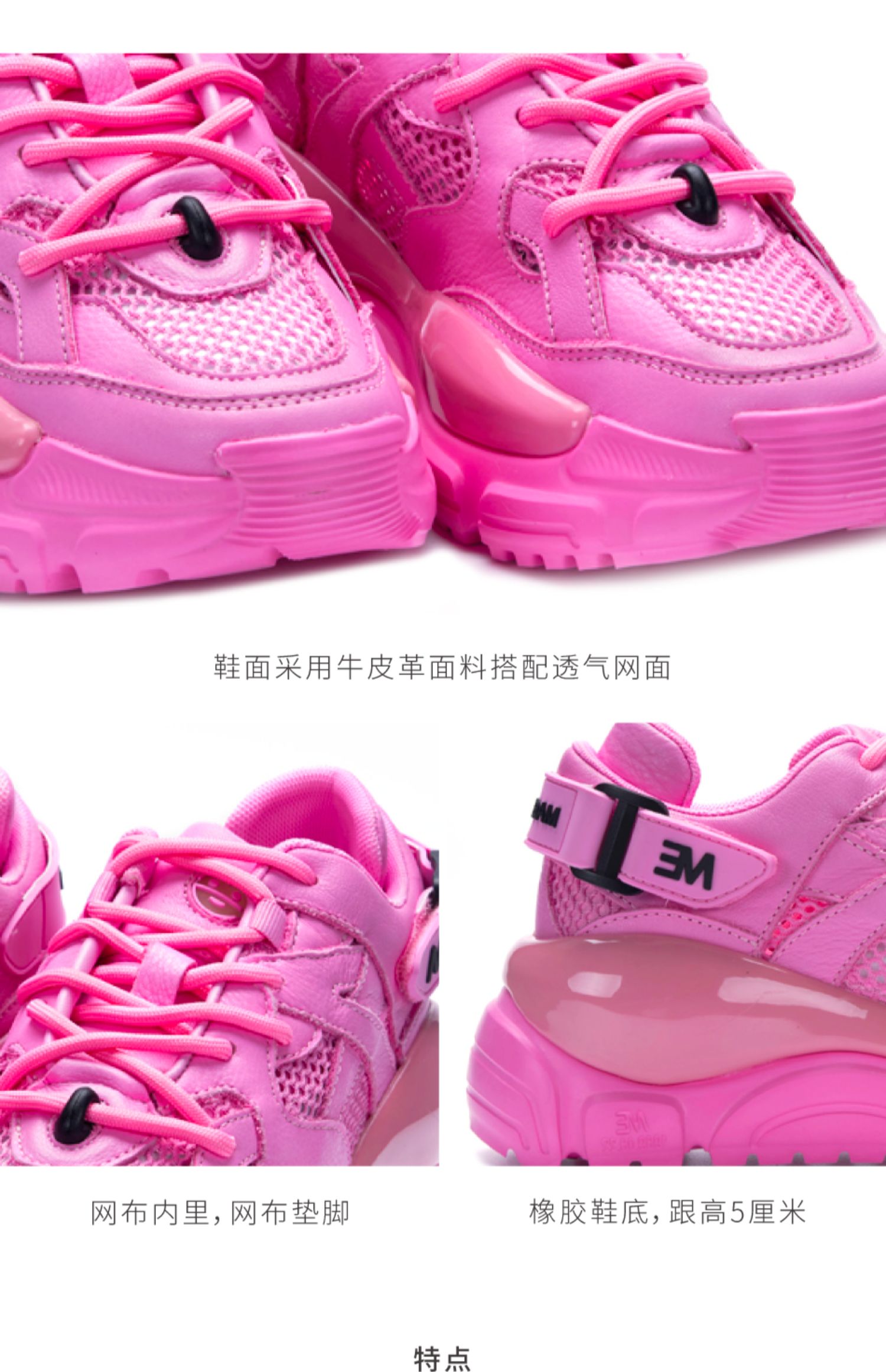nekomomo2023年夏季新款商场同款牛皮网面超轻厚底运动鞋老爹鞋M21CM34661女