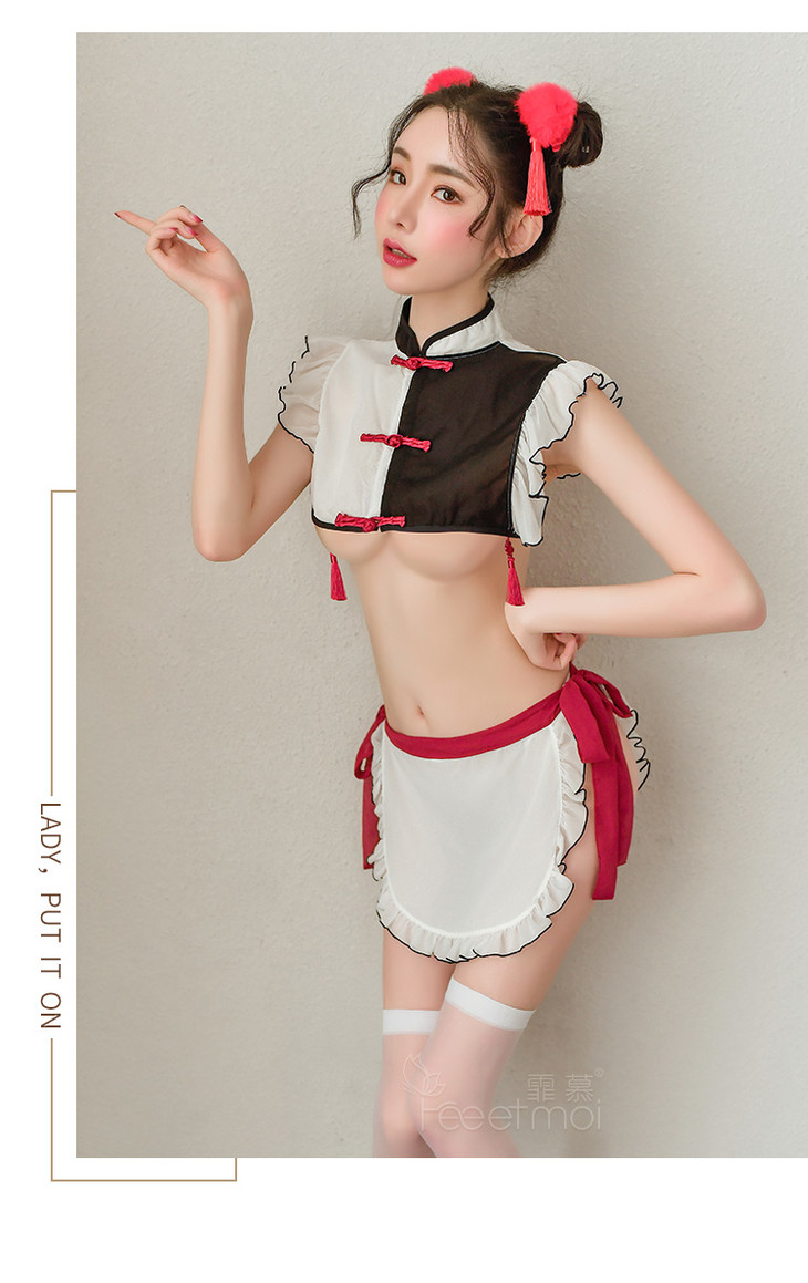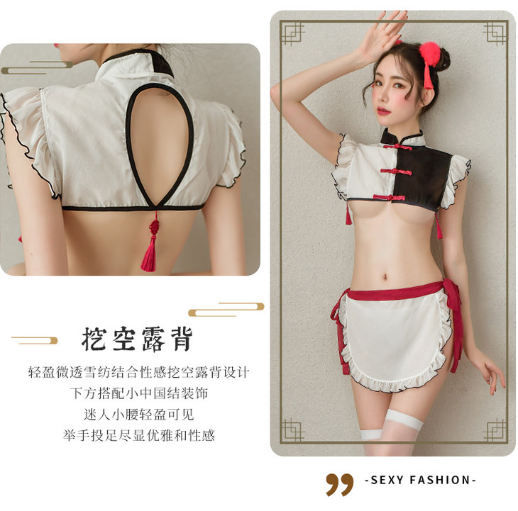 【贴身小丫鬟】情趣内衣 制服 性感 角色 镂空 后背 拼色 古典风 丫环 套装 6935