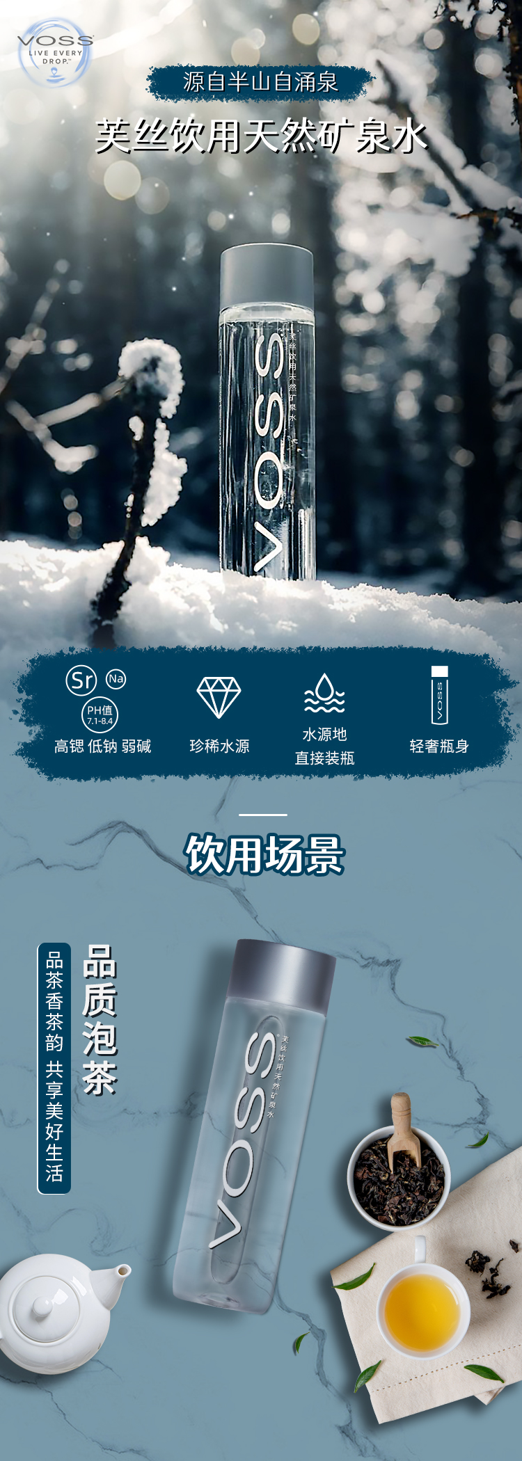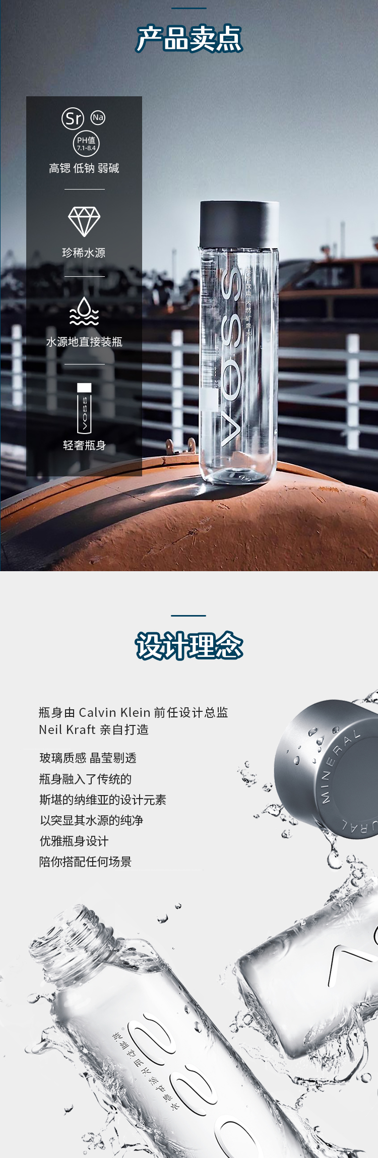 【低钠弱碱】VOSS芙丝天然矿泉水 弱碱性水 500ml*24瓶 整箱