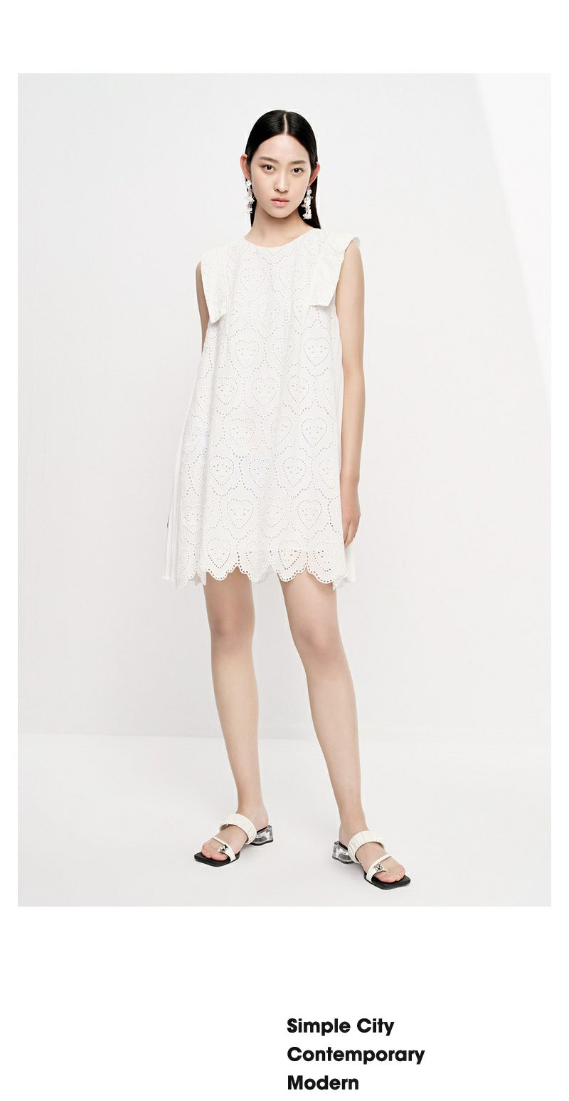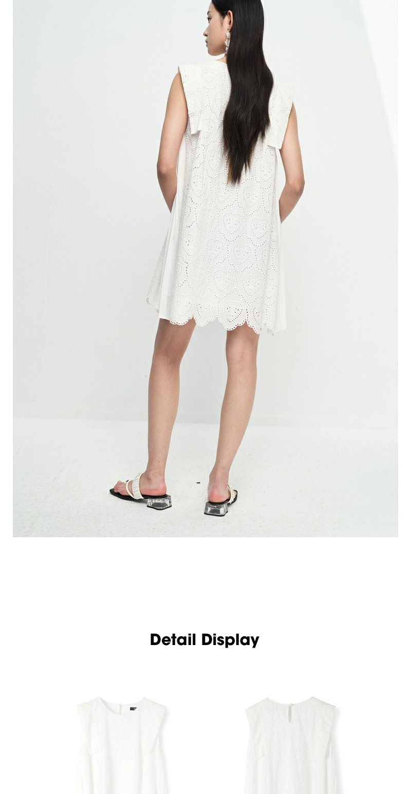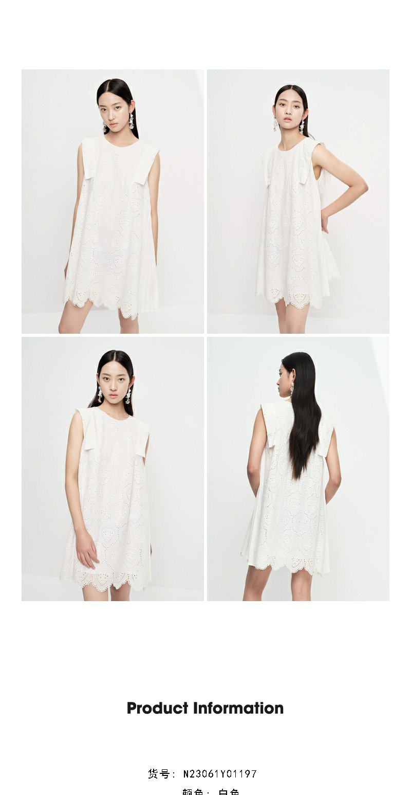 NEELLY纳俪商场同款法式刺绣爱心无袖连衣裙女气质花边下摆娃娃裙N23061Y01197