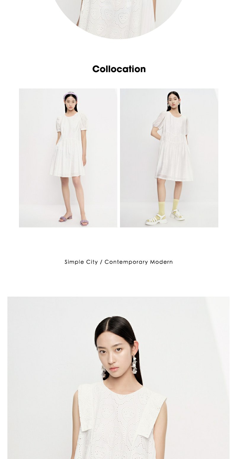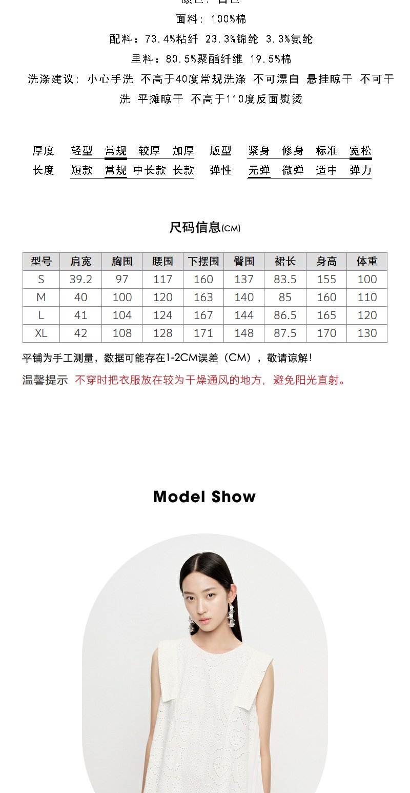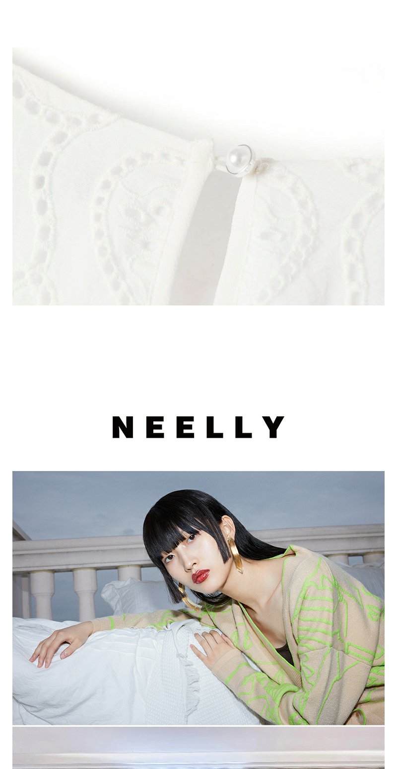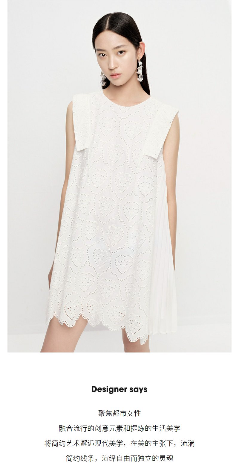 NEELLY纳俪商场同款法式刺绣爱心无袖连衣裙女气质花边下摆娃娃裙N23061Y01197