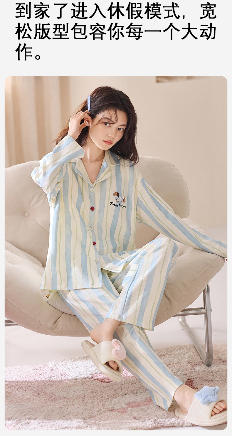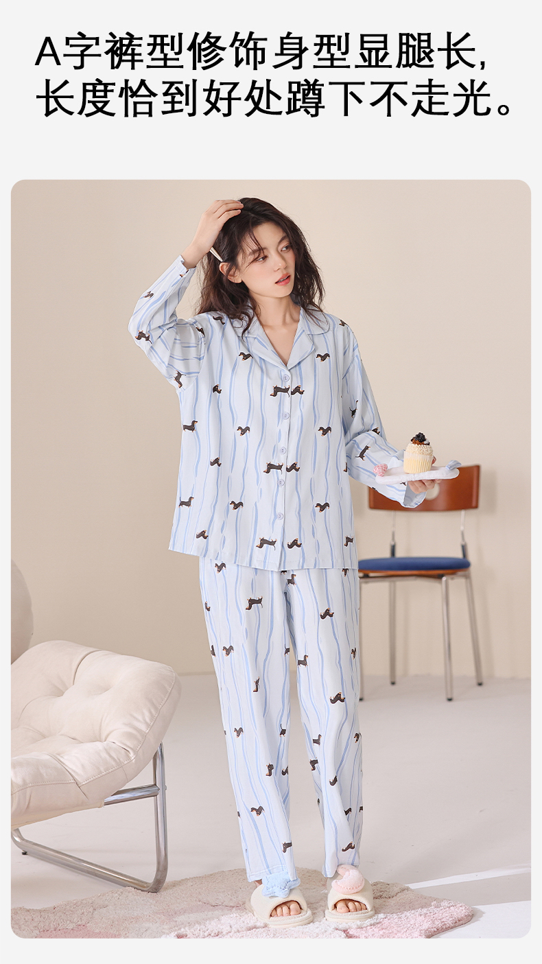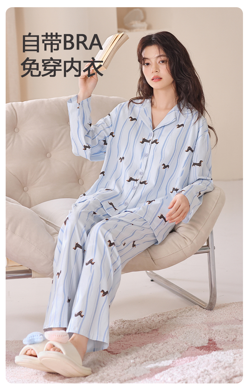 爱帝新品女士针织棉卡通印花长袖家居服(自带胸垫免穿内衣)