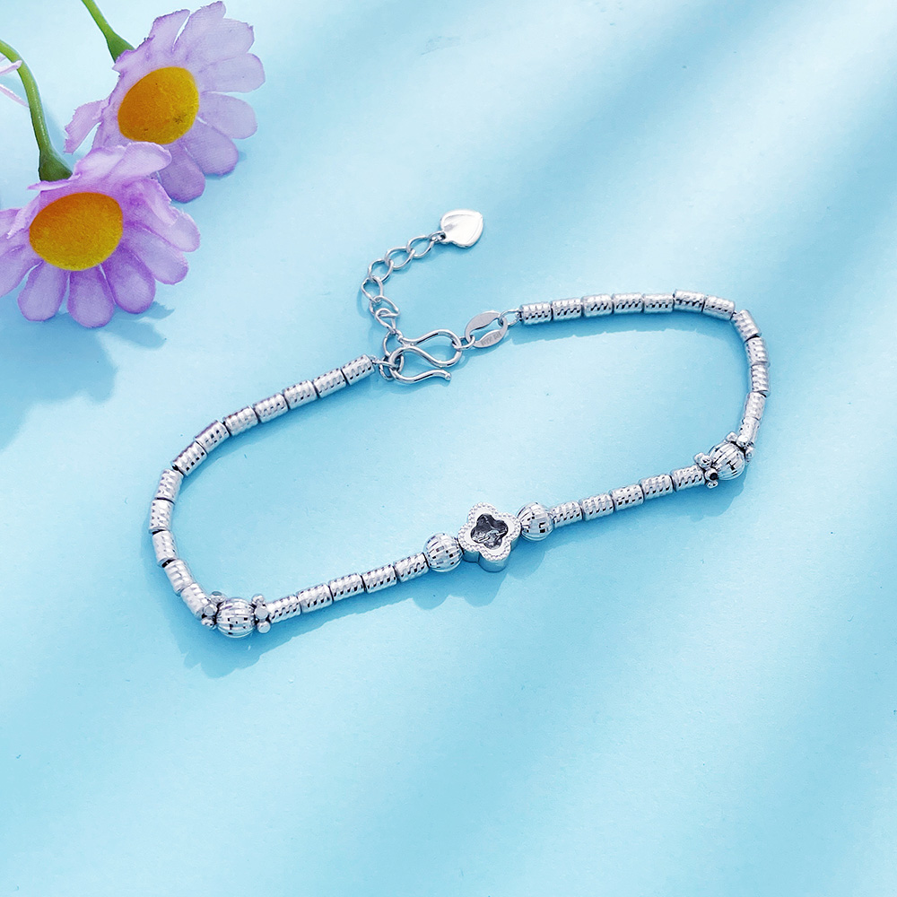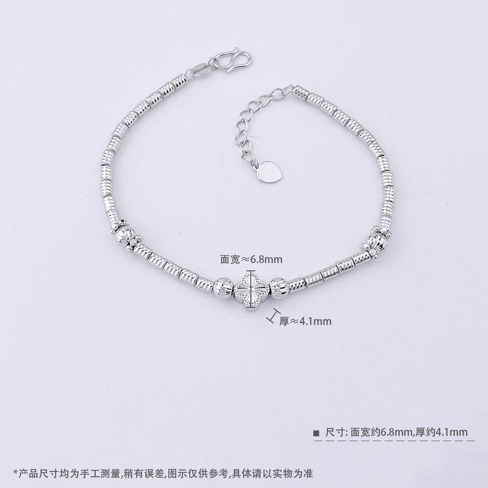 【限时8.8折】【线上铂金馆】PT950 【精品】铂金CNC空心小幸福幸运四叶草转运圆珠筒珠间款调节手链(内里为铂金线)(BFPTSL00015)预售产品下单后不退款不退货不换货不补差价)