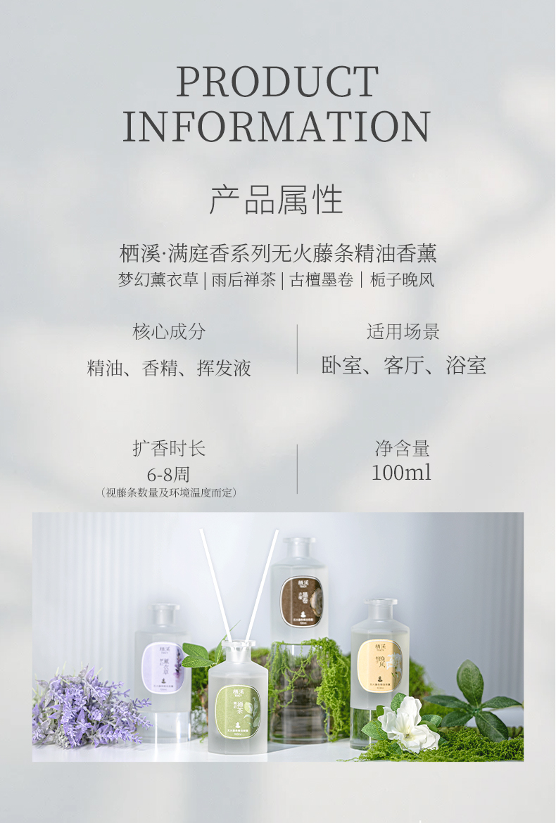 栖溪满庭香系列香薰100ml 精油香薰室内扩香留香持久