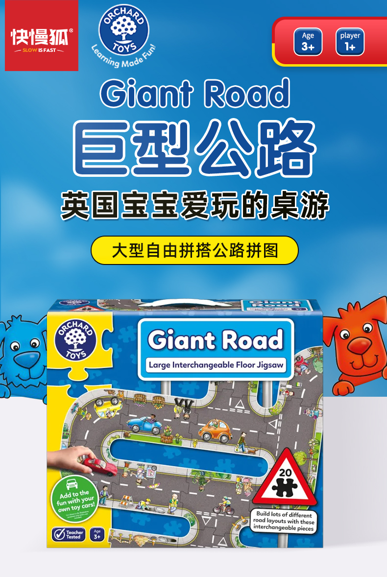 快慢狐Orchard Toys巨型公路地板拼图游戏儿童早教益智桌游玩具3岁+