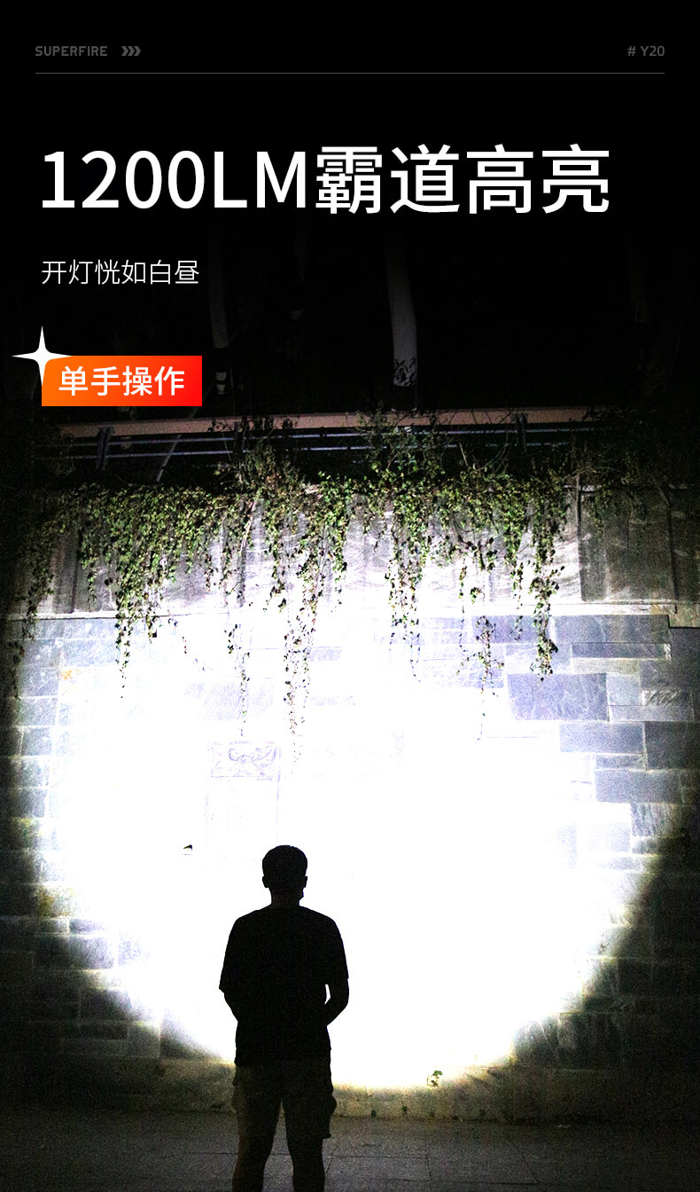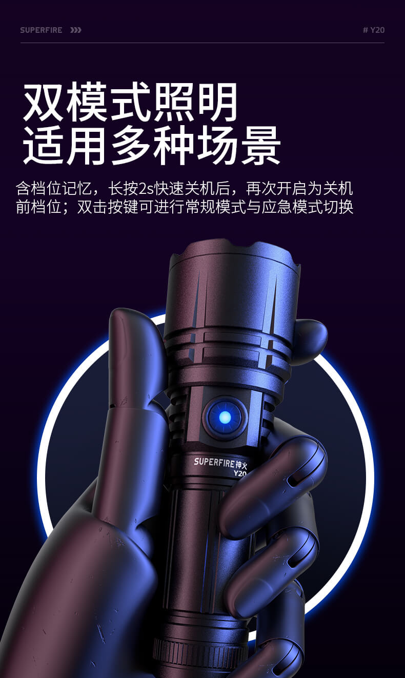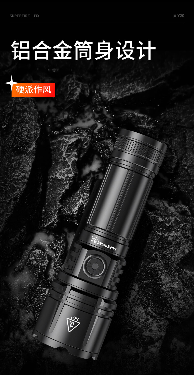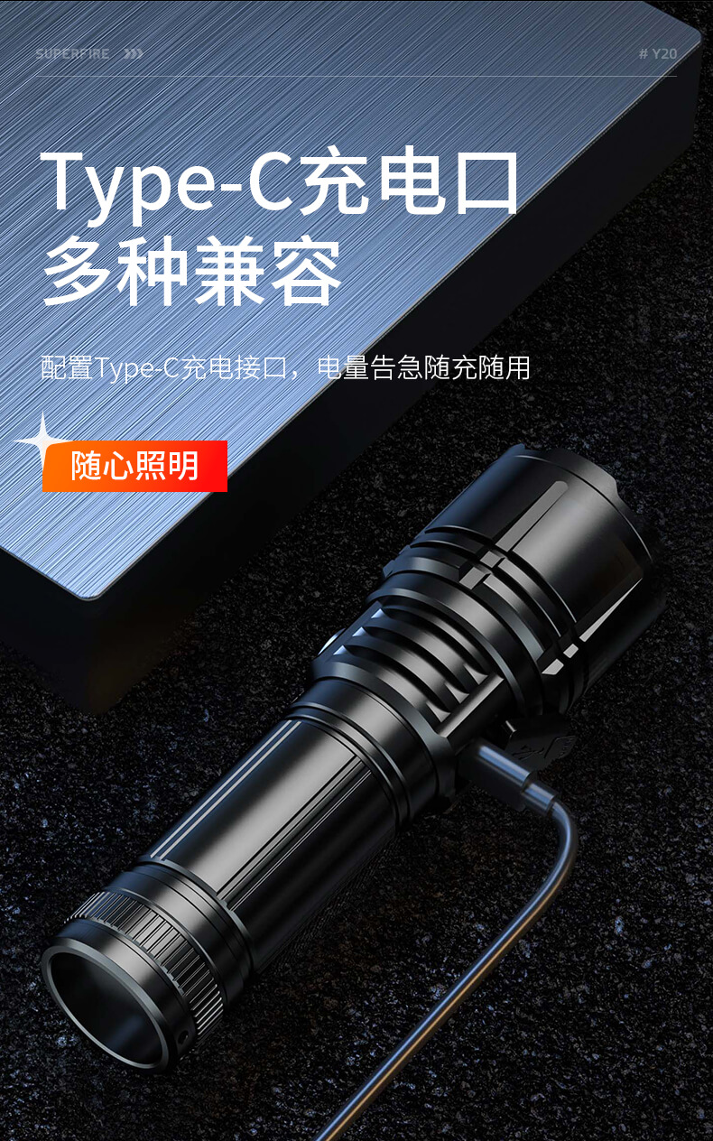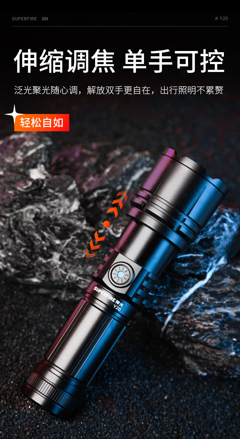 SUPERFIRE神火Y20手电筒变焦强光超亮远射可充电led户外家用应急手电