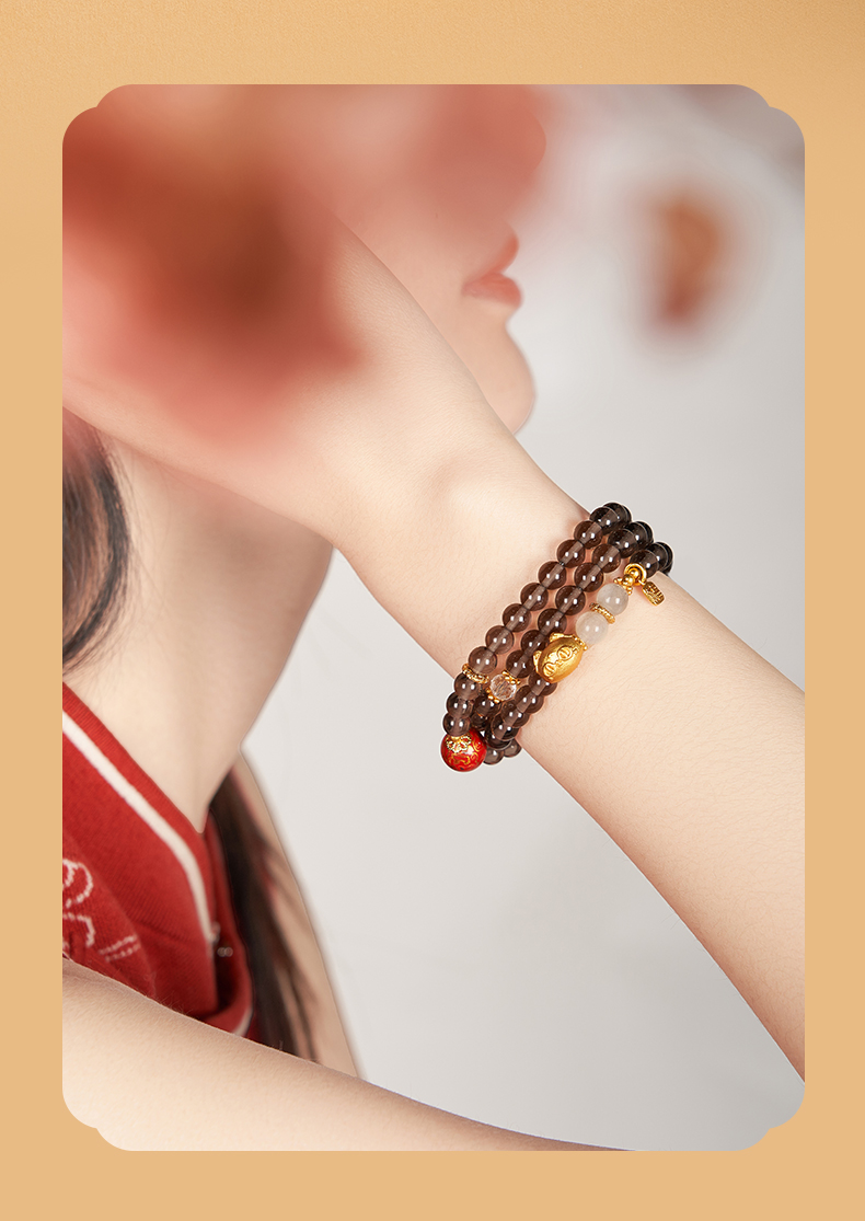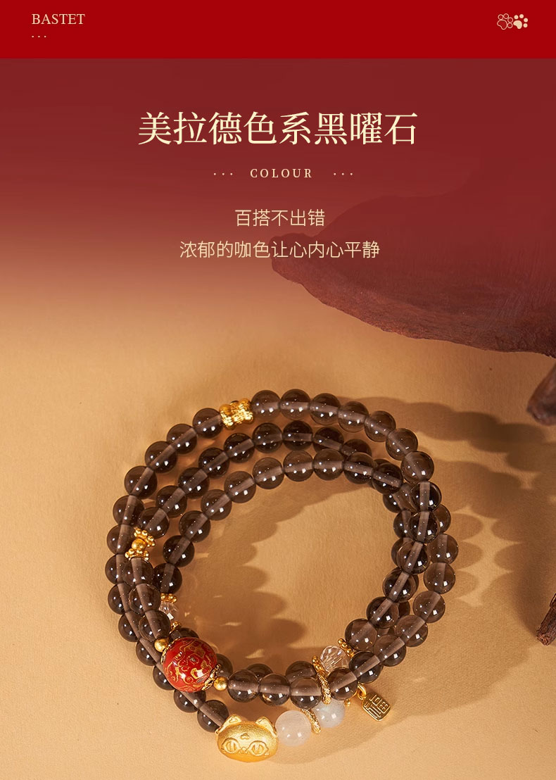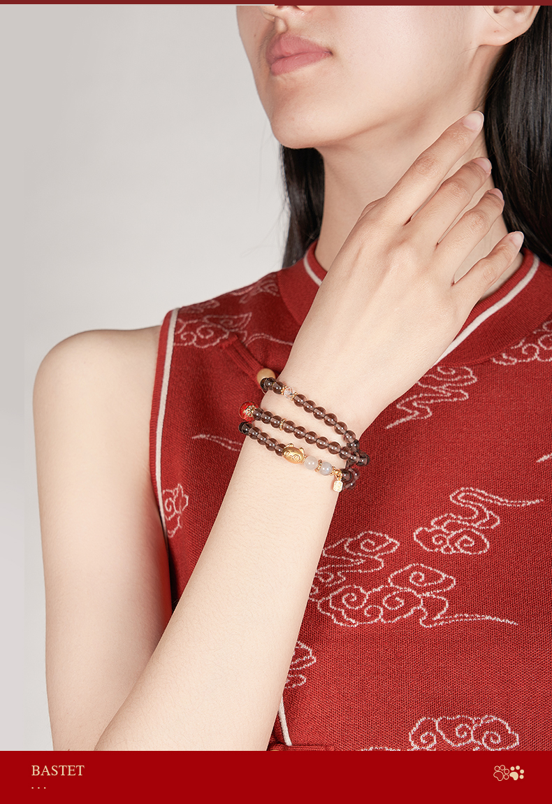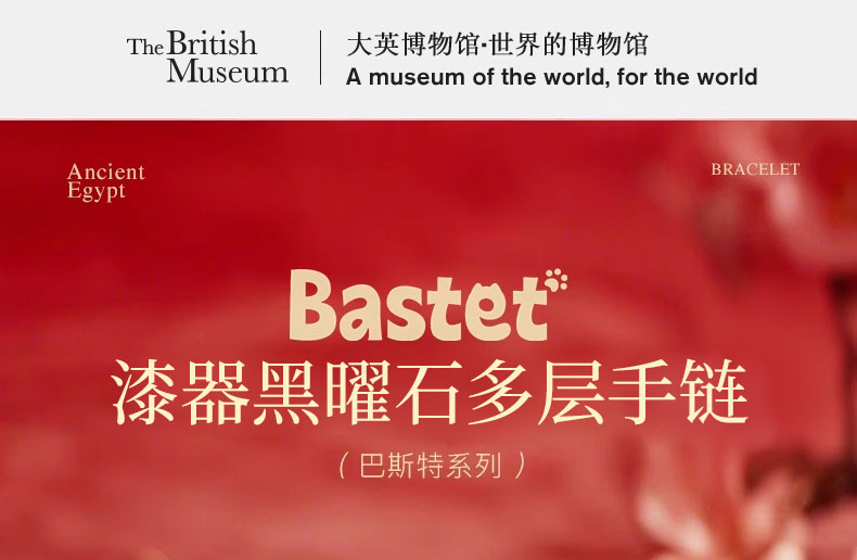 大英博物馆 巴斯特系列 茶晶 漆器 三层手链