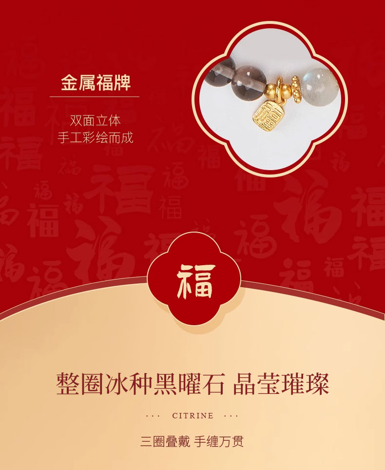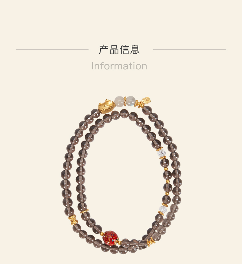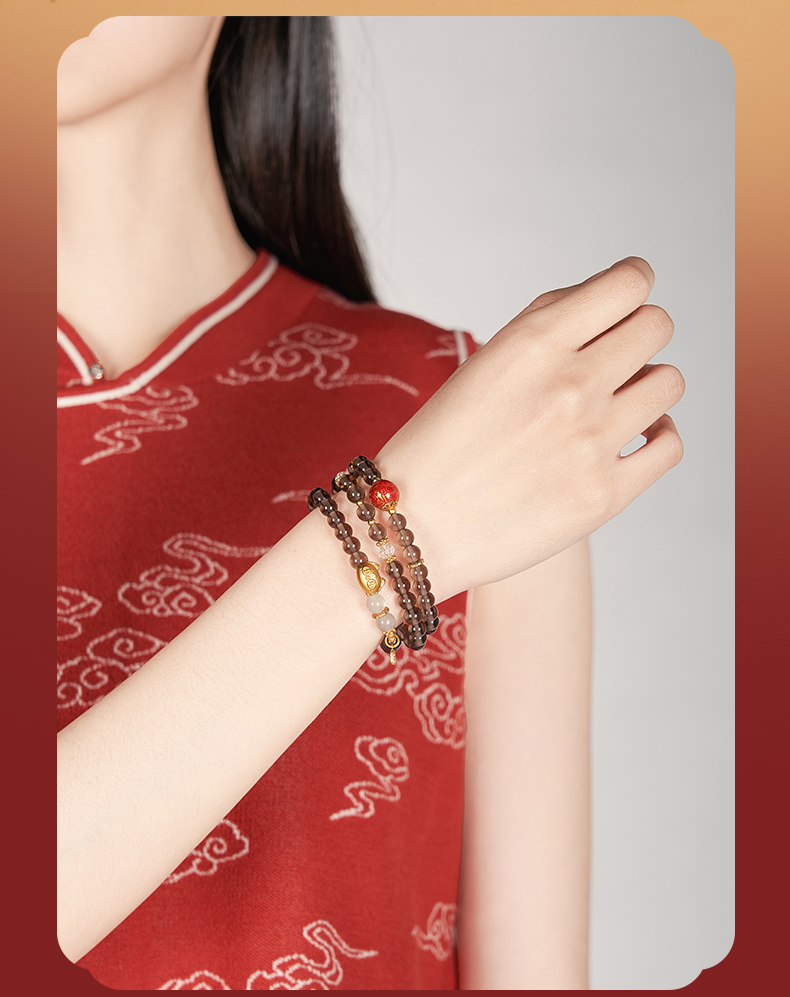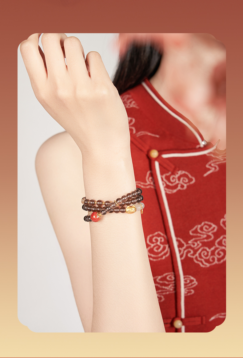 大英博物馆 巴斯特系列 茶晶 漆器 三层手链