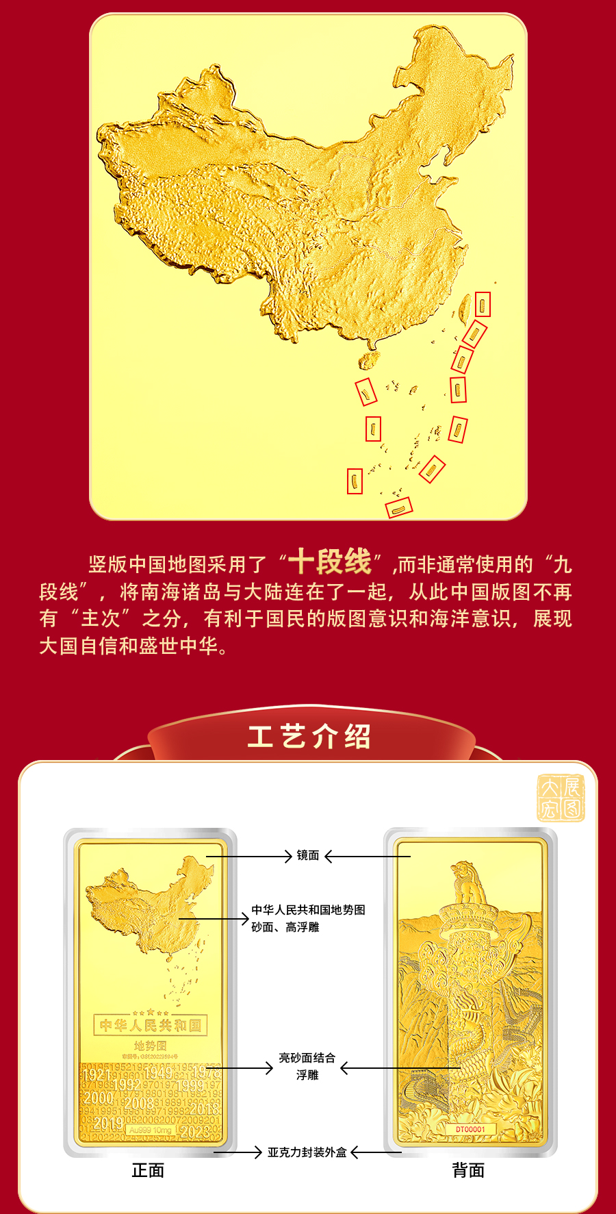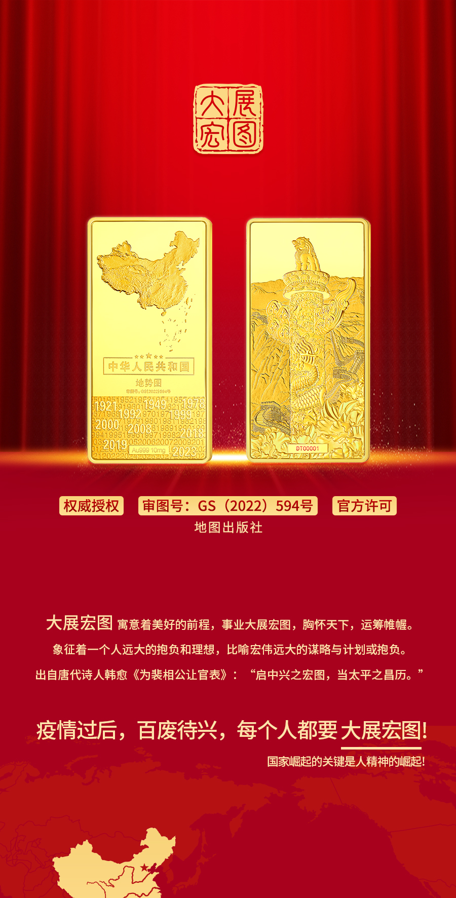【大展宏图】中华人民共和国地势图纪念金砖 金999 地图金砖