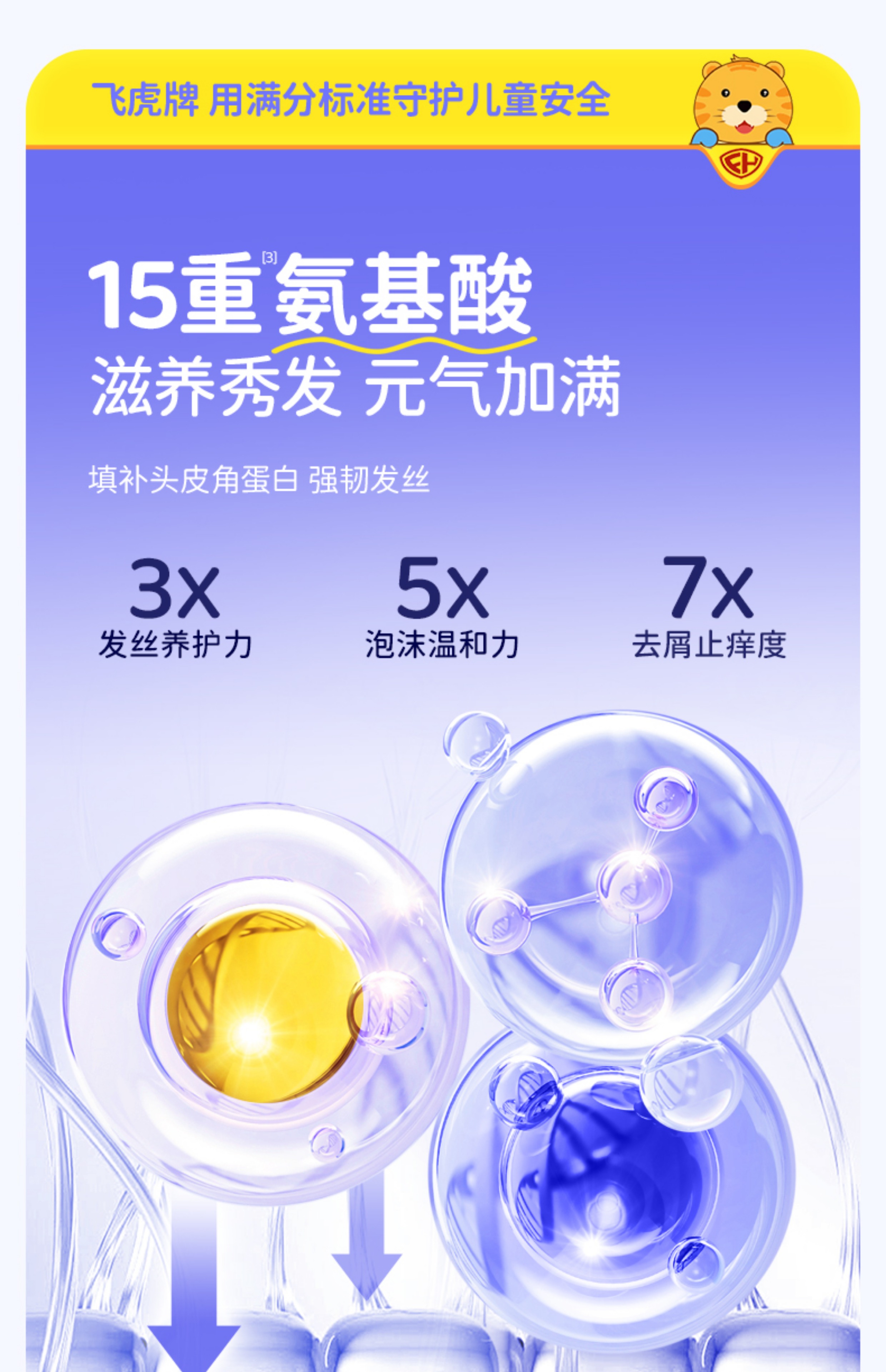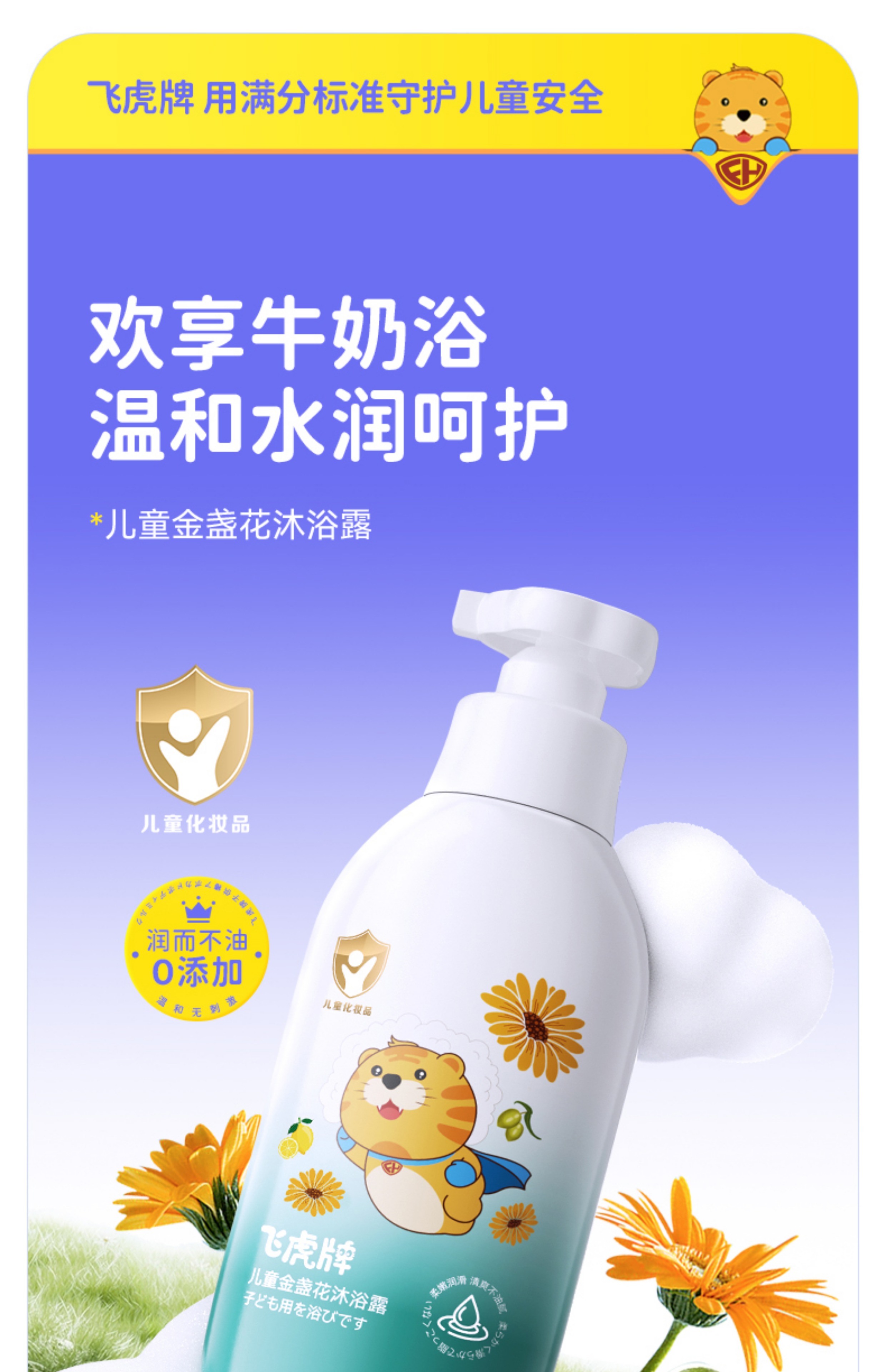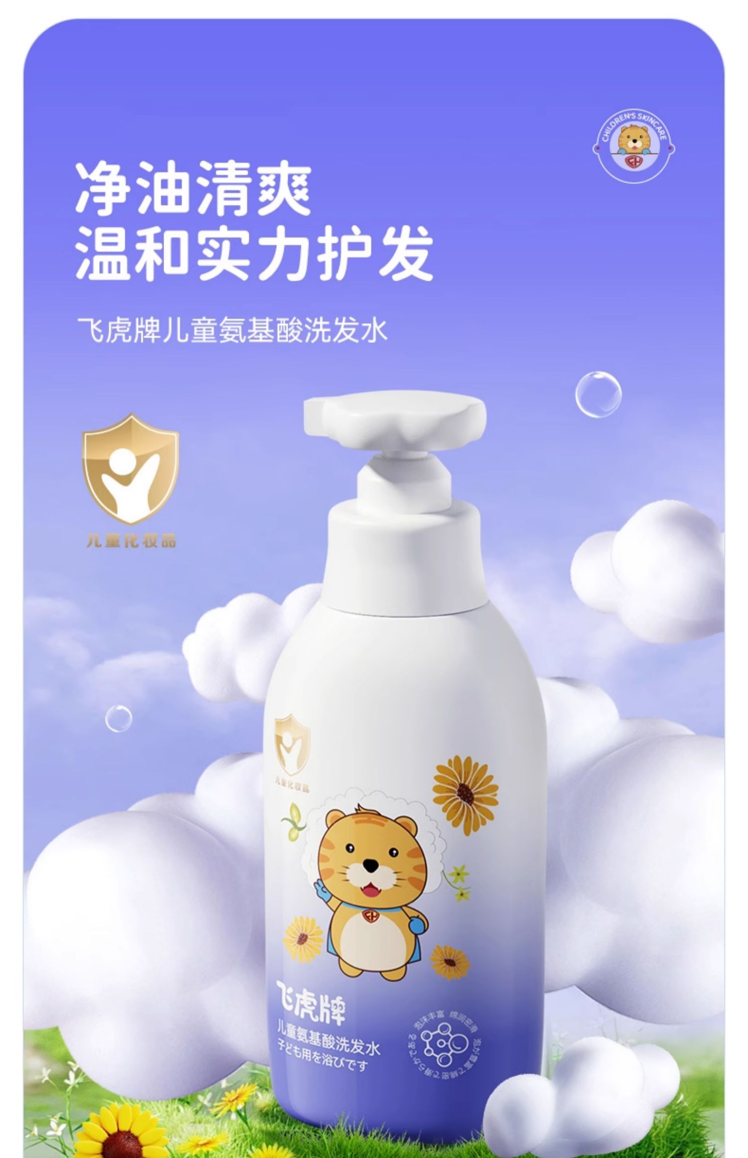 飞虎牌儿童氨基酸洗发水露专用控油去屑止痒儿童专用金盏花沐浴露氨基酸止痒温和补水保湿