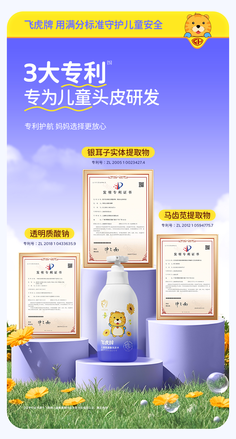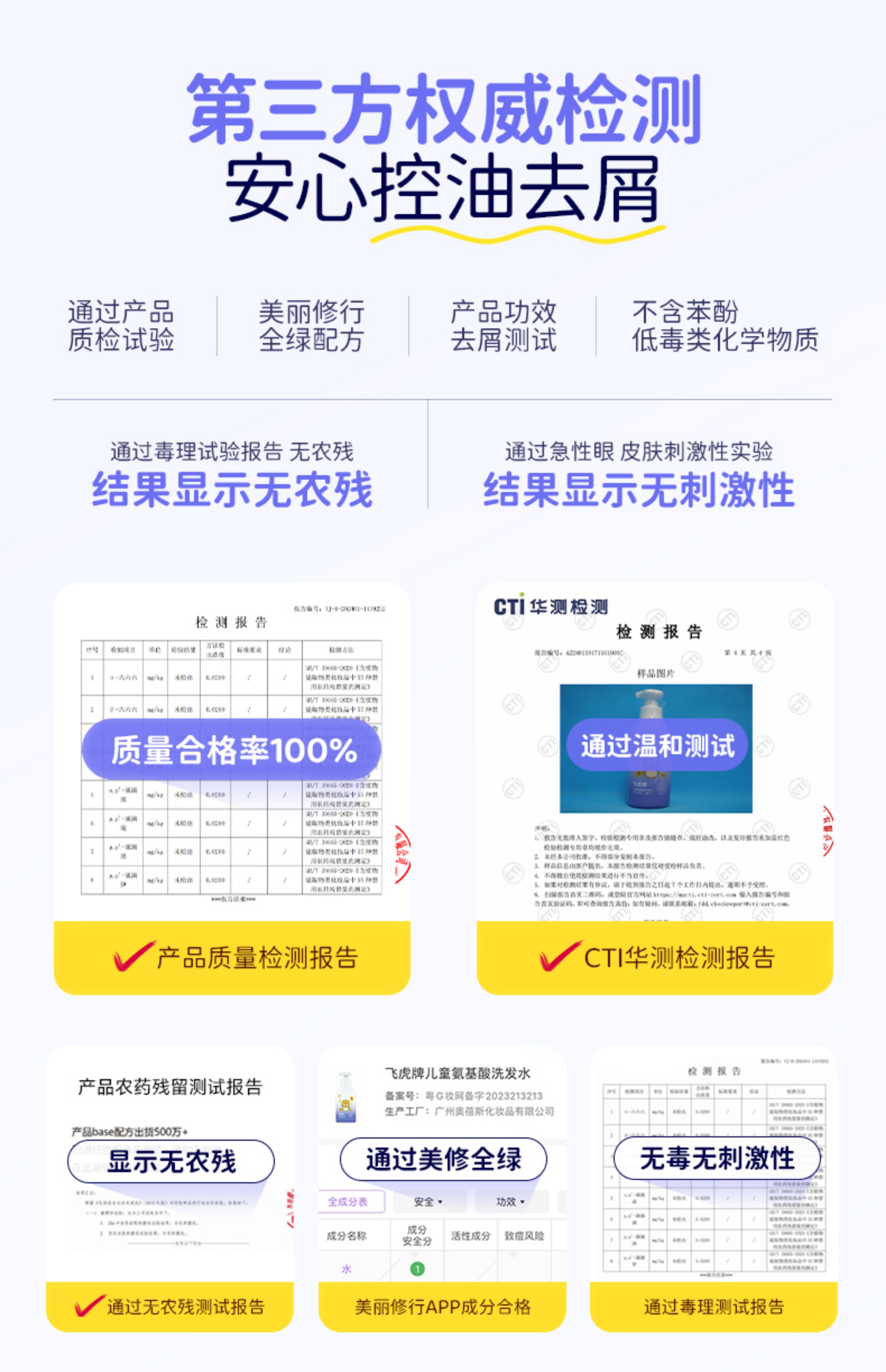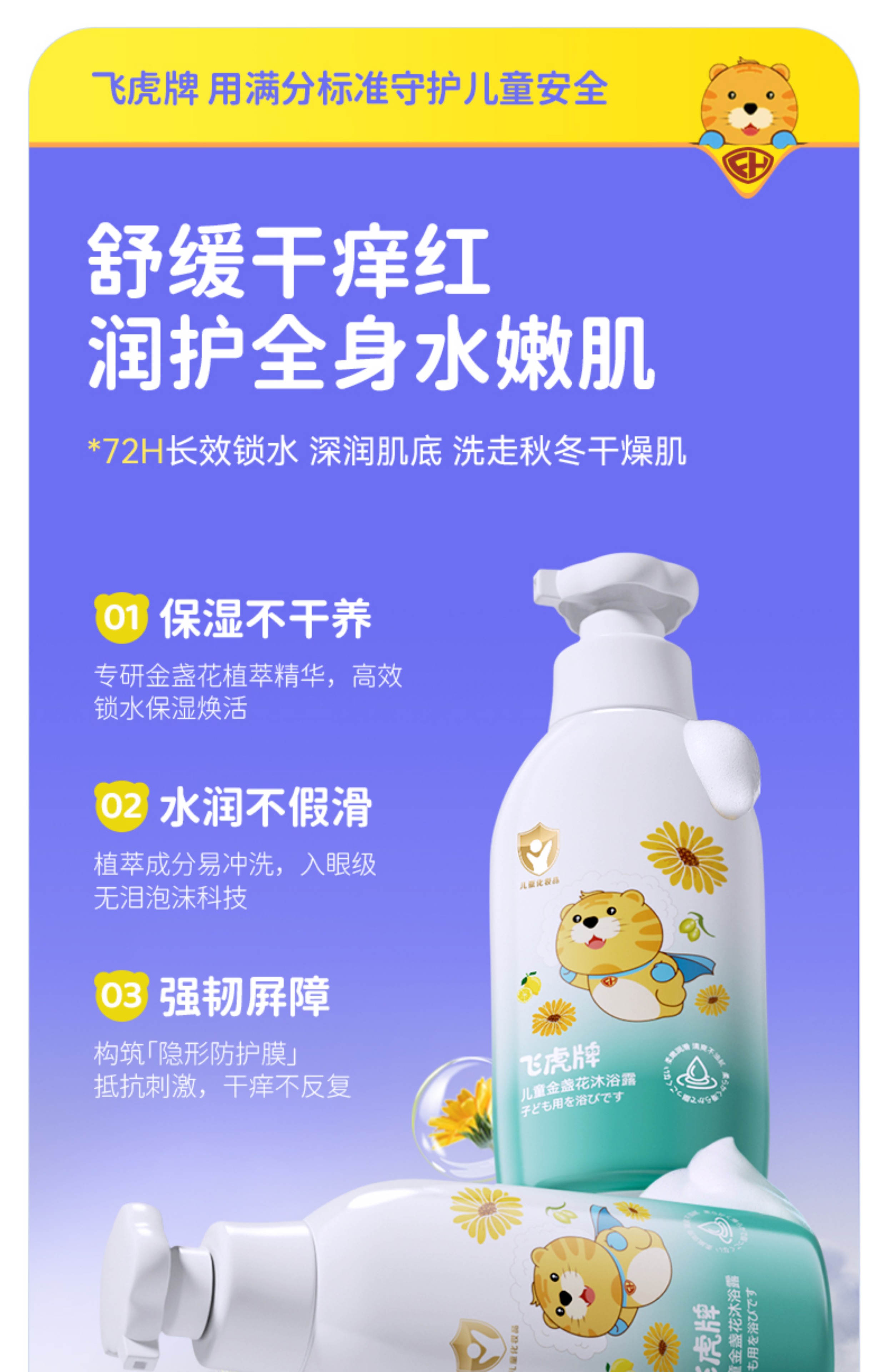 飞虎牌儿童氨基酸洗发水露专用控油去屑止痒儿童专用金盏花沐浴露氨基酸止痒温和补水保湿
