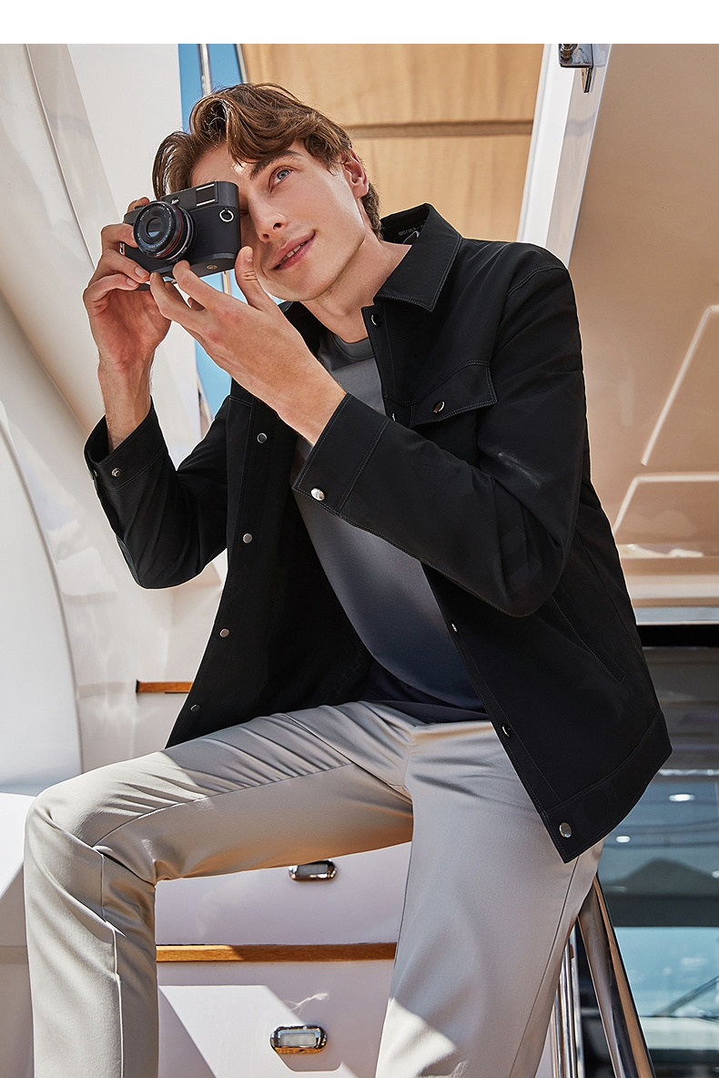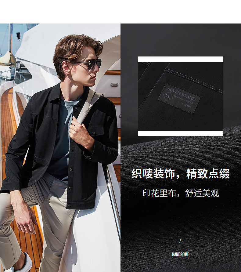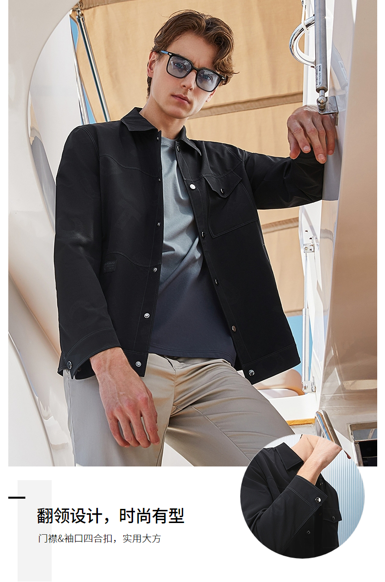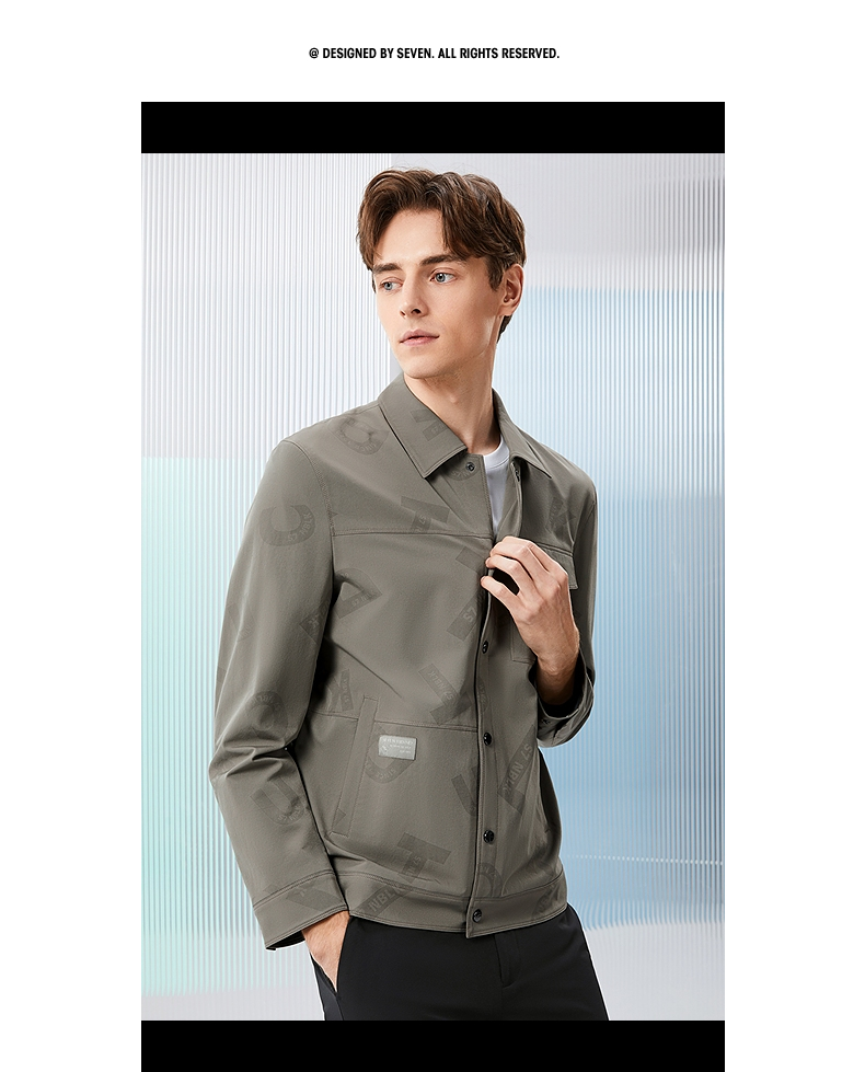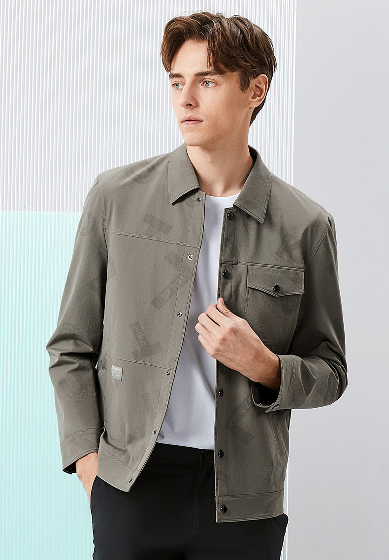 柒牌男装印花夹克衫男2024春季新款时尚潮流工装风男士翻领外套薄 126K70220