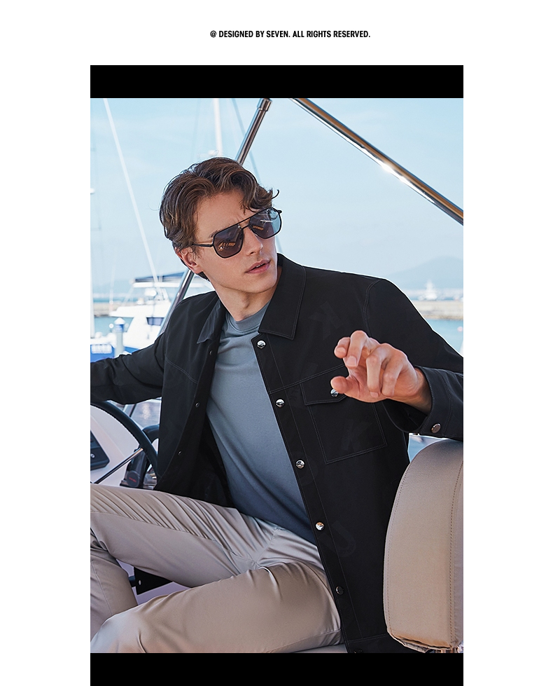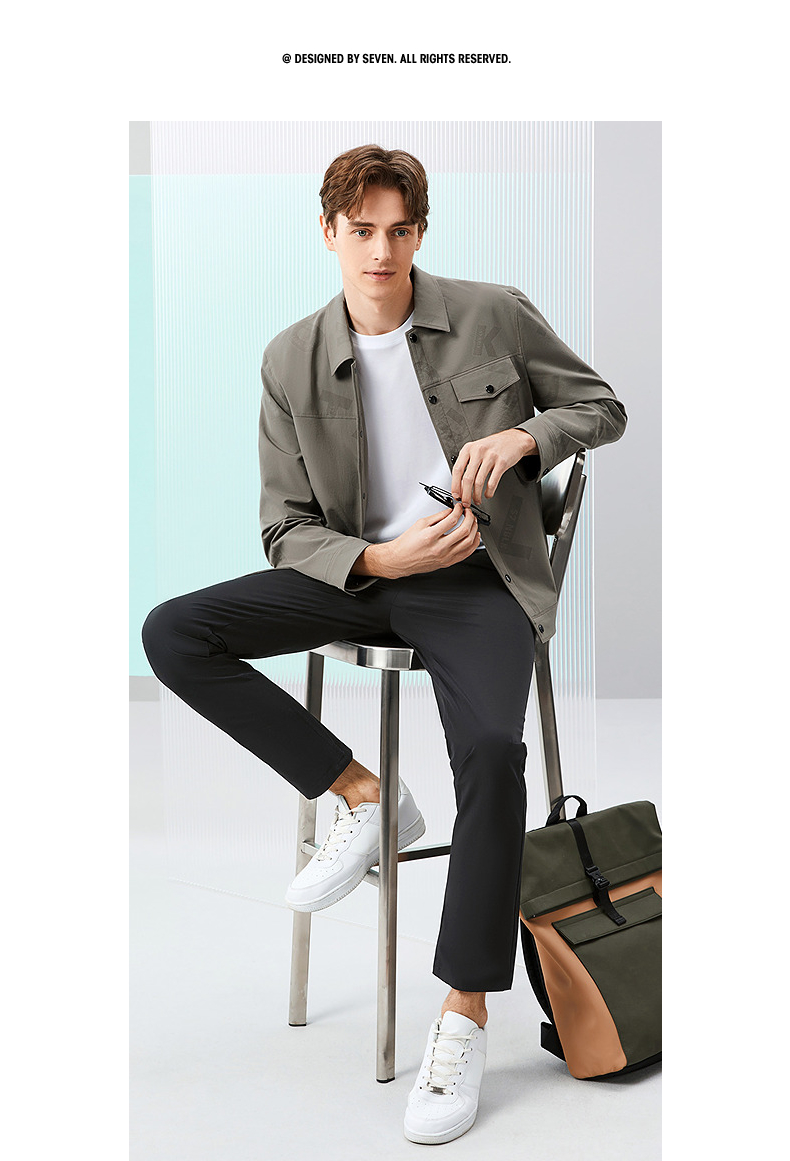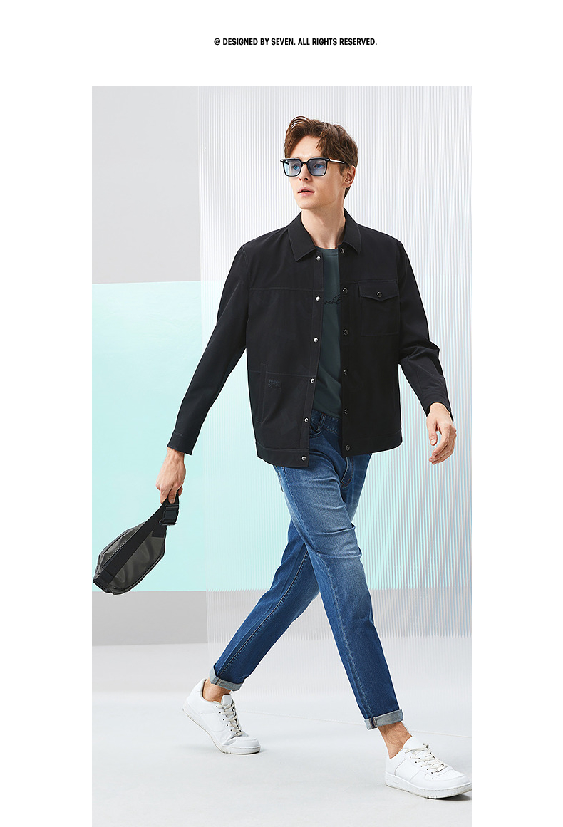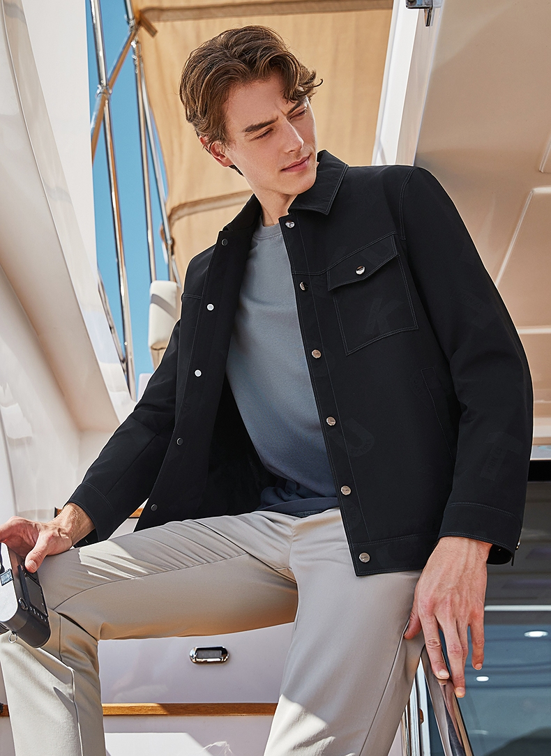 柒牌男装印花夹克衫男2024春季新款时尚潮流工装风男士翻领外套薄 126K70220