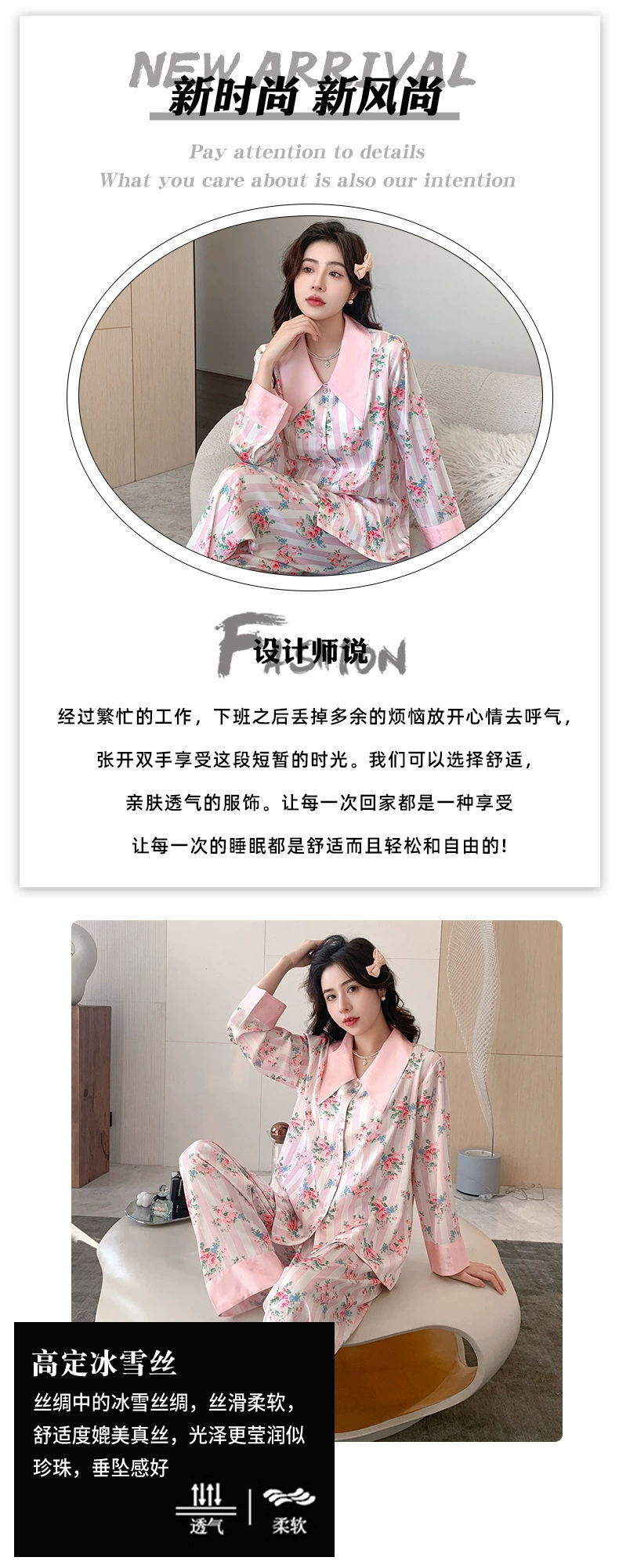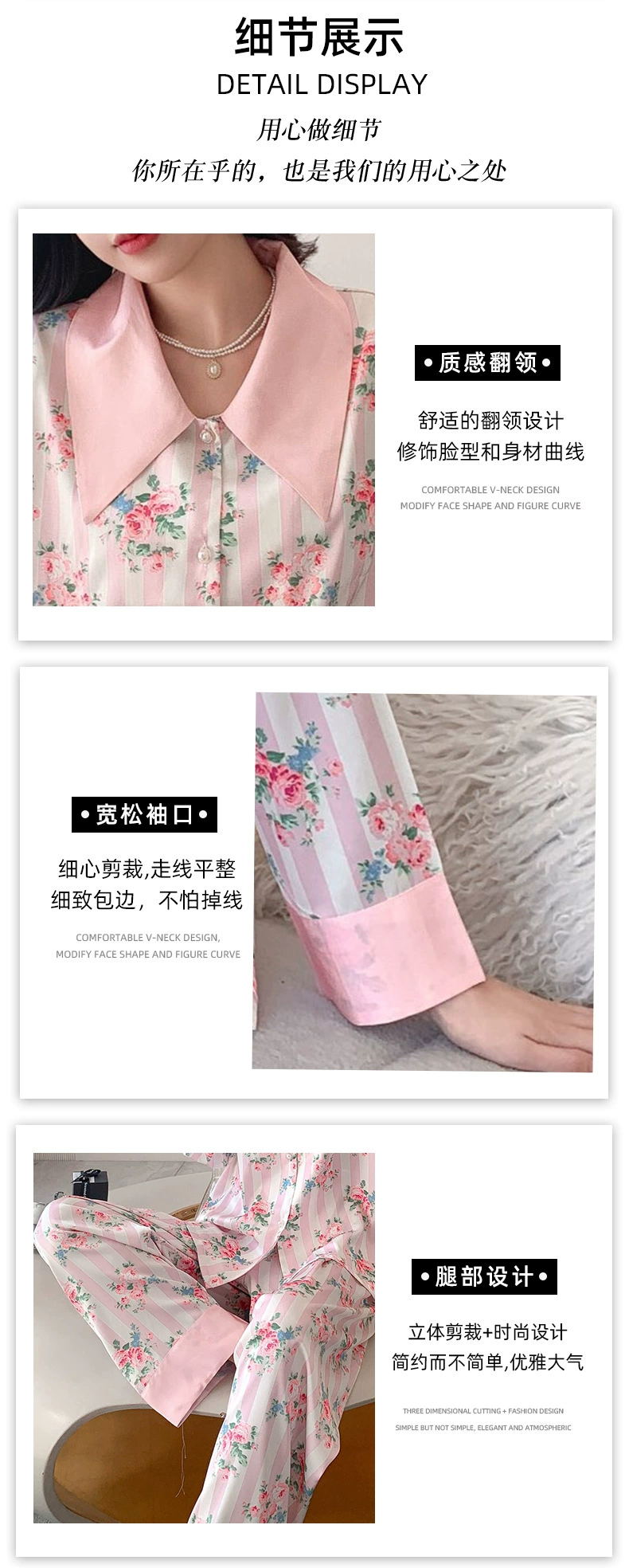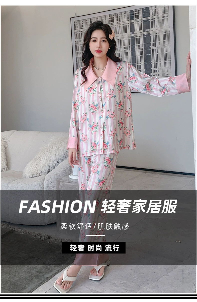 冰雪丝碎花翻领珍珠扣家居套装20002