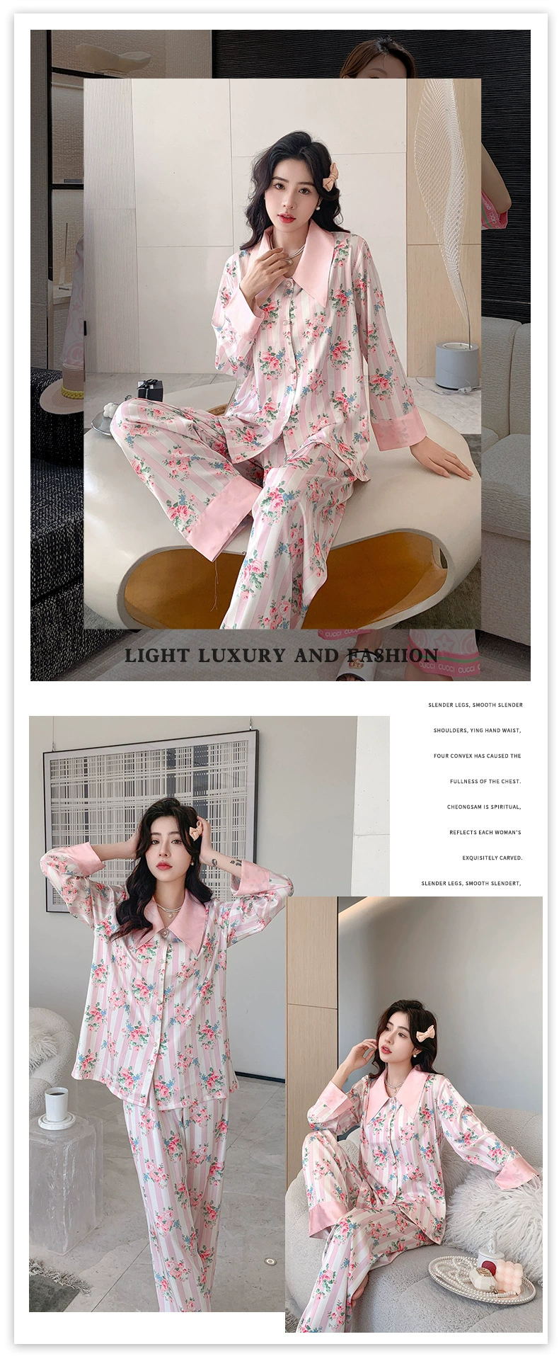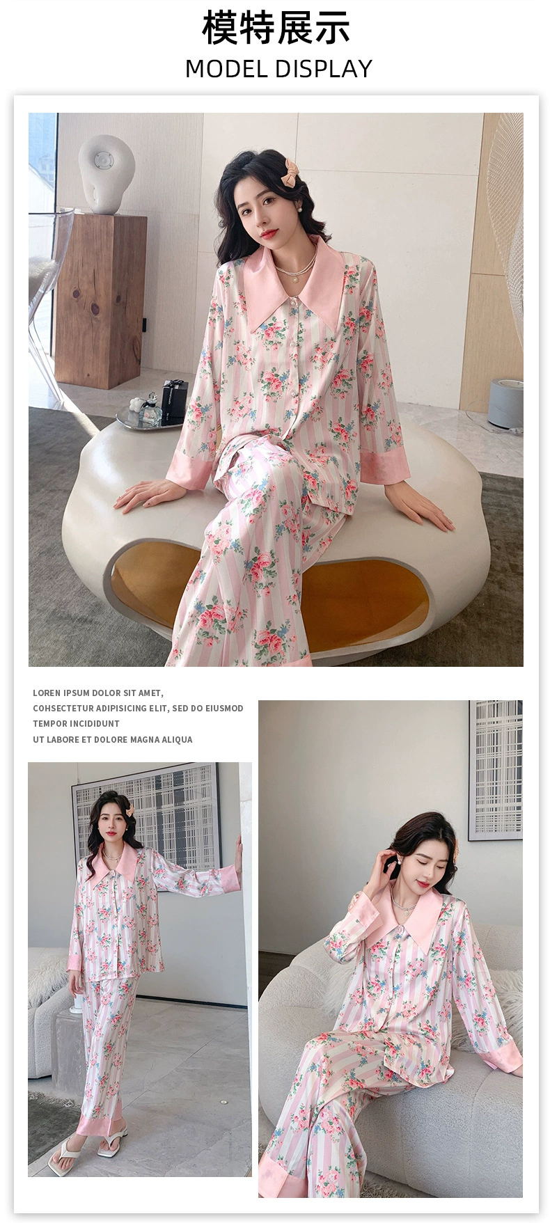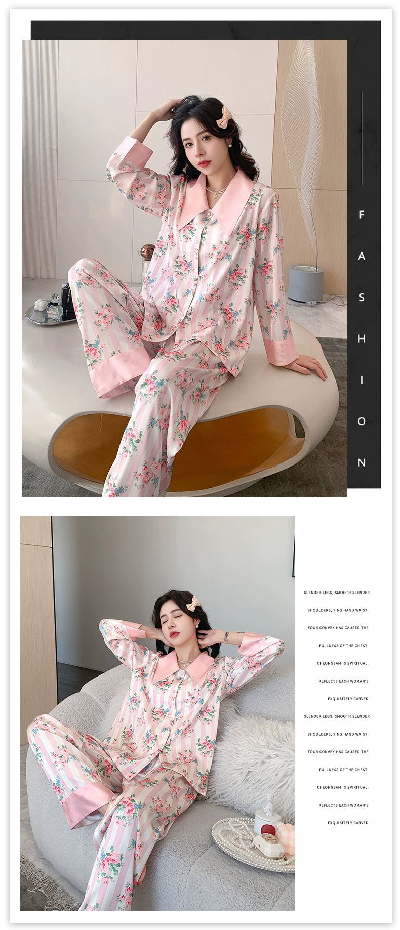 冰雪丝碎花翻领珍珠扣家居套装20002