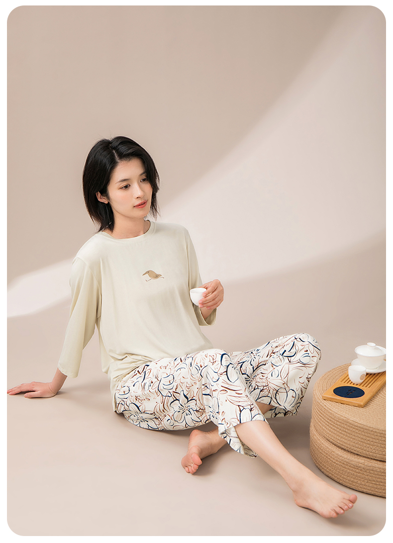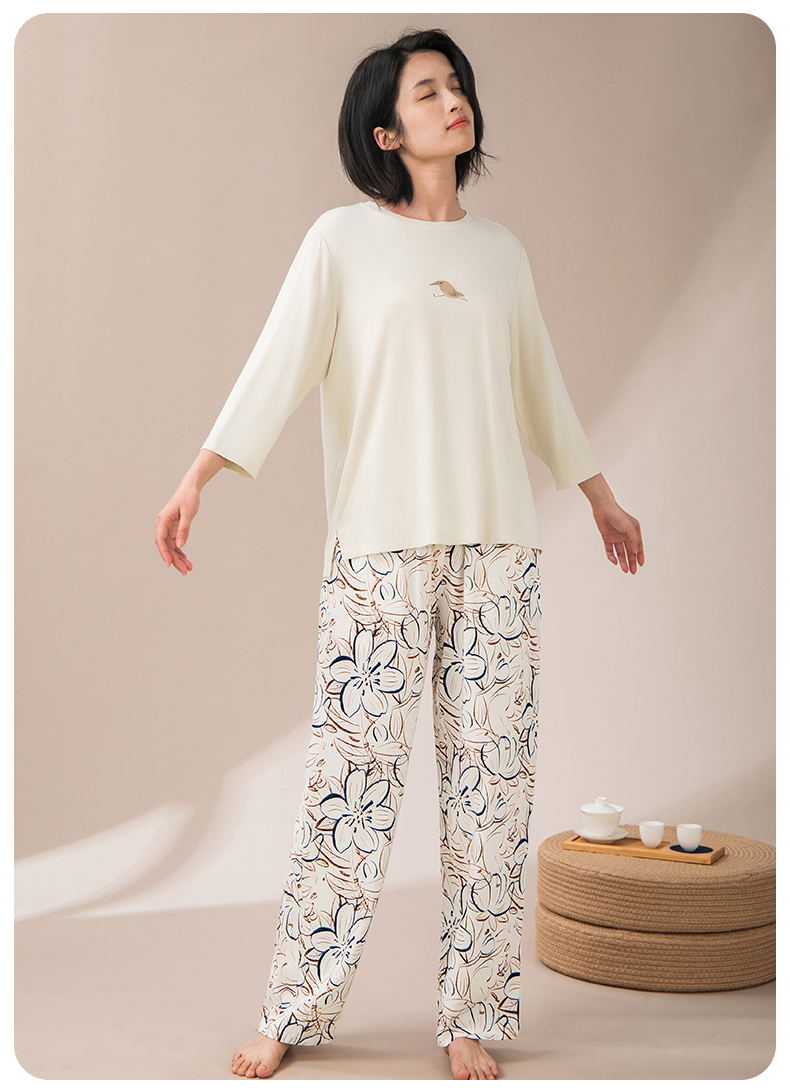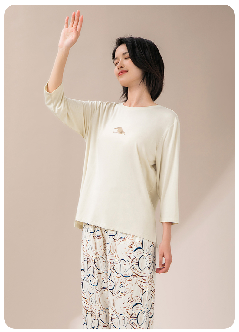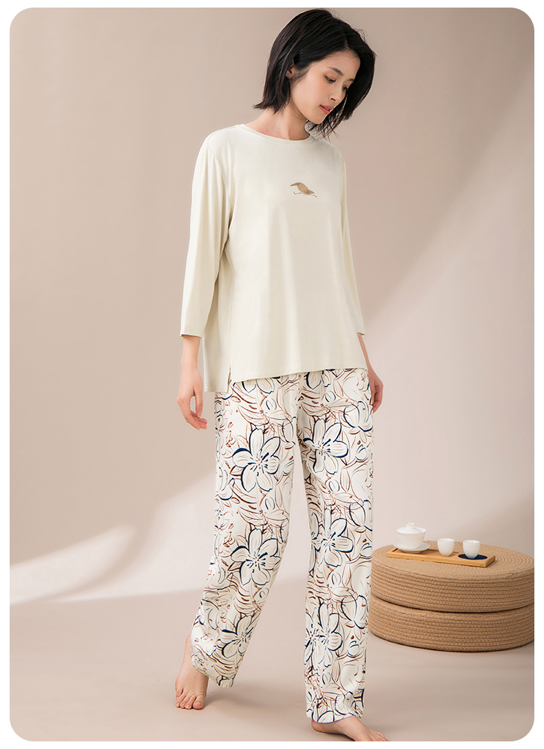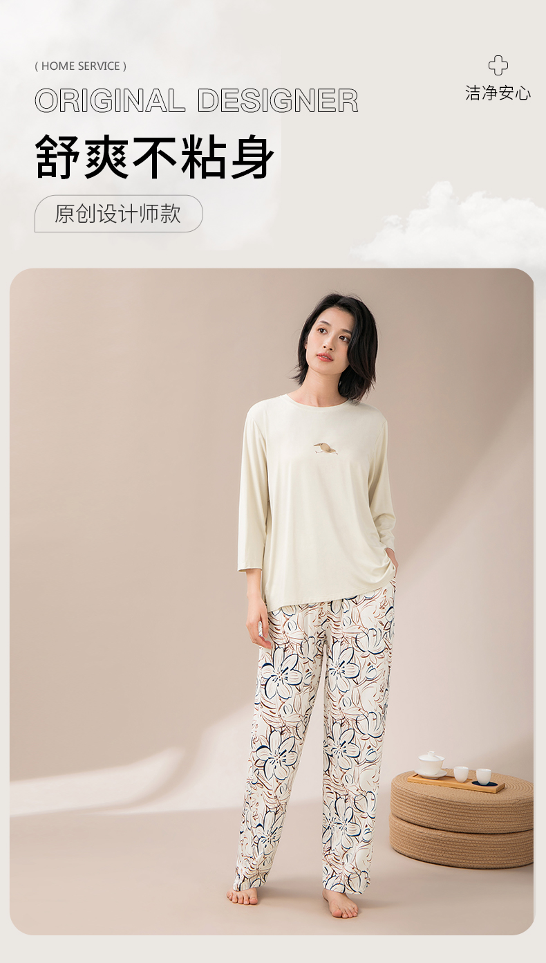 康妮雅2023年春款睡衣女式长袖长裤套头套装