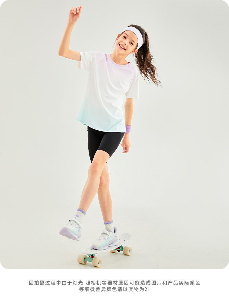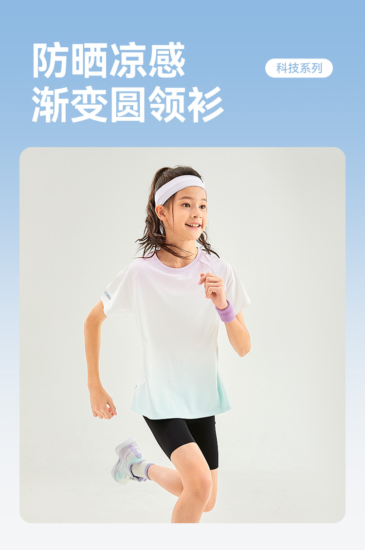 水孩儿童装24夏季新款女童防晒凉感短袖T恤儿童时尚渐变圆领衫