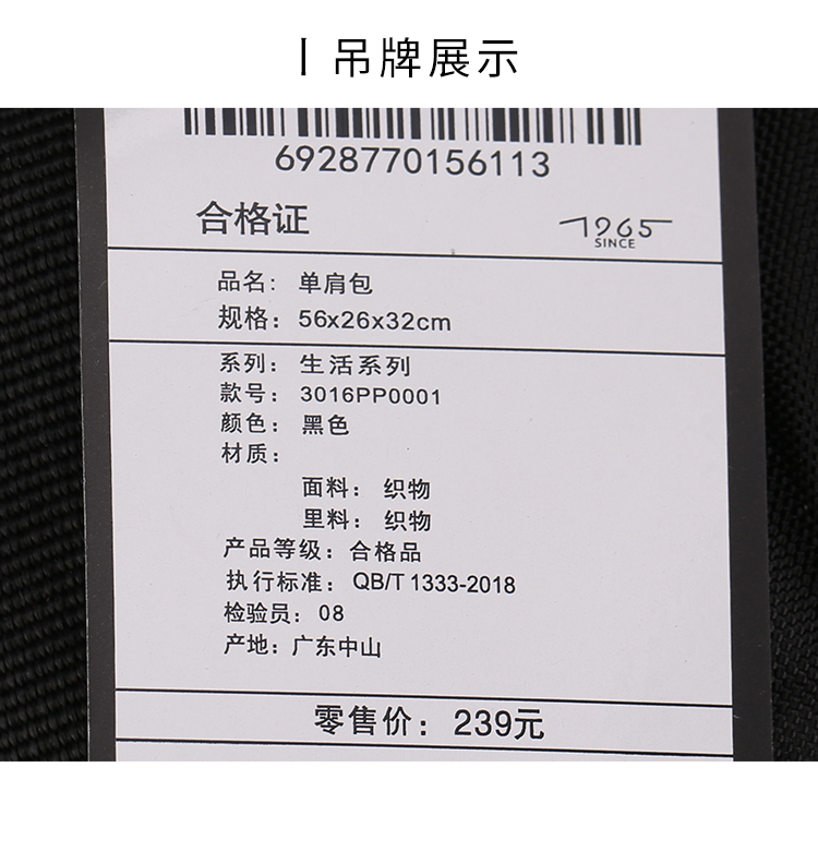 JOMA/霍马 运动休闲单肩包男【黑】3016PP0001