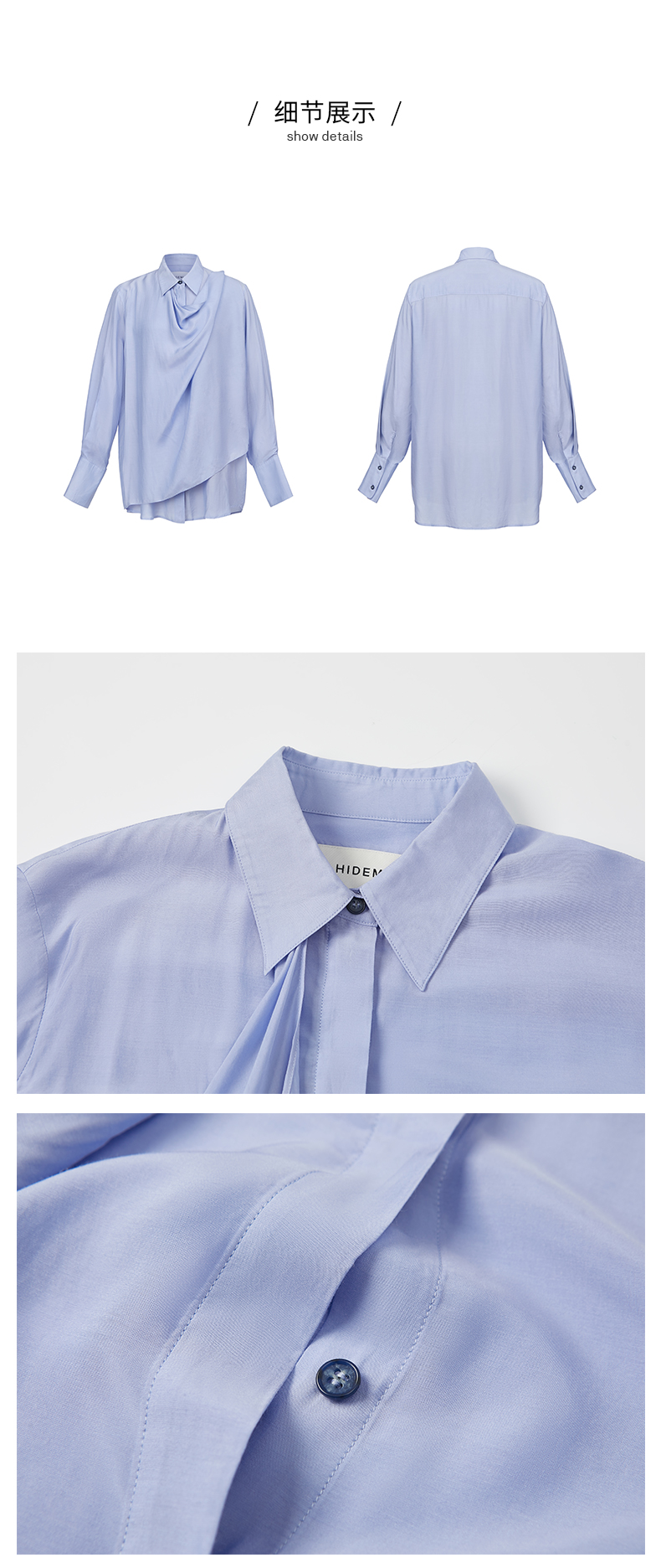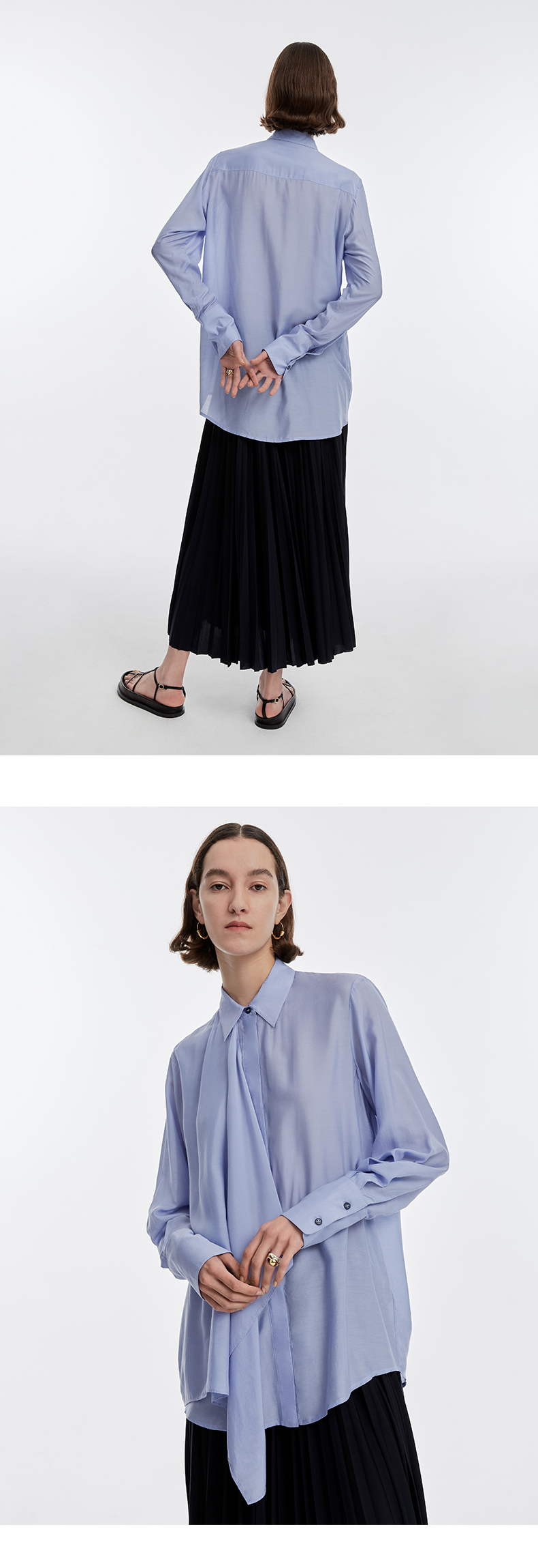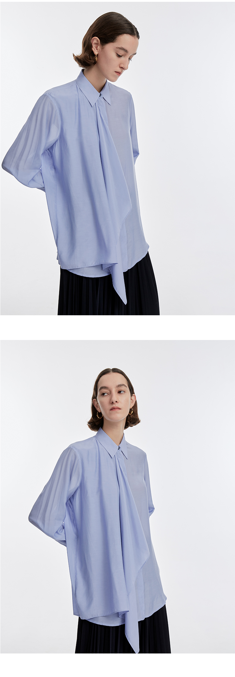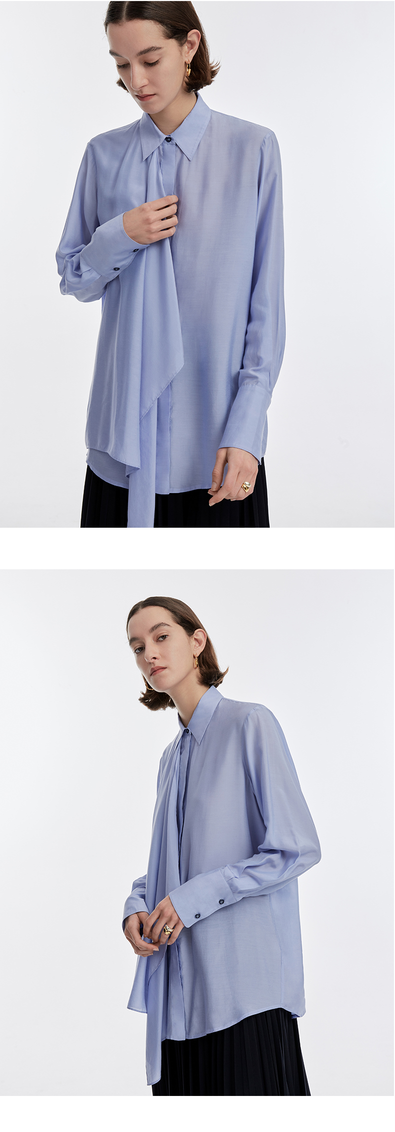HIDEMI 马卡龙蓝丝巾设计感柔顺桑蚕丝衬衫