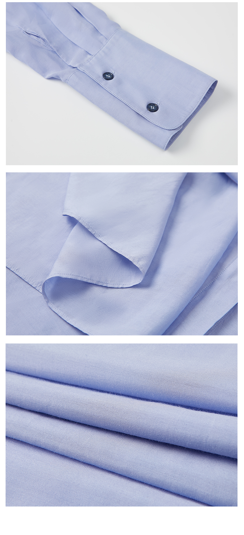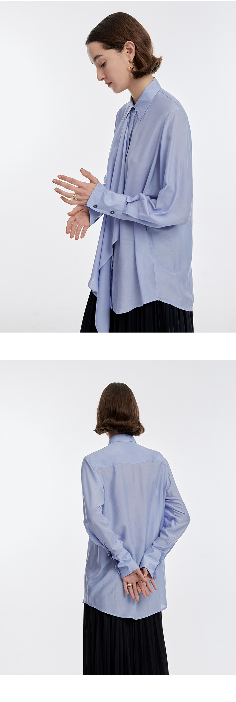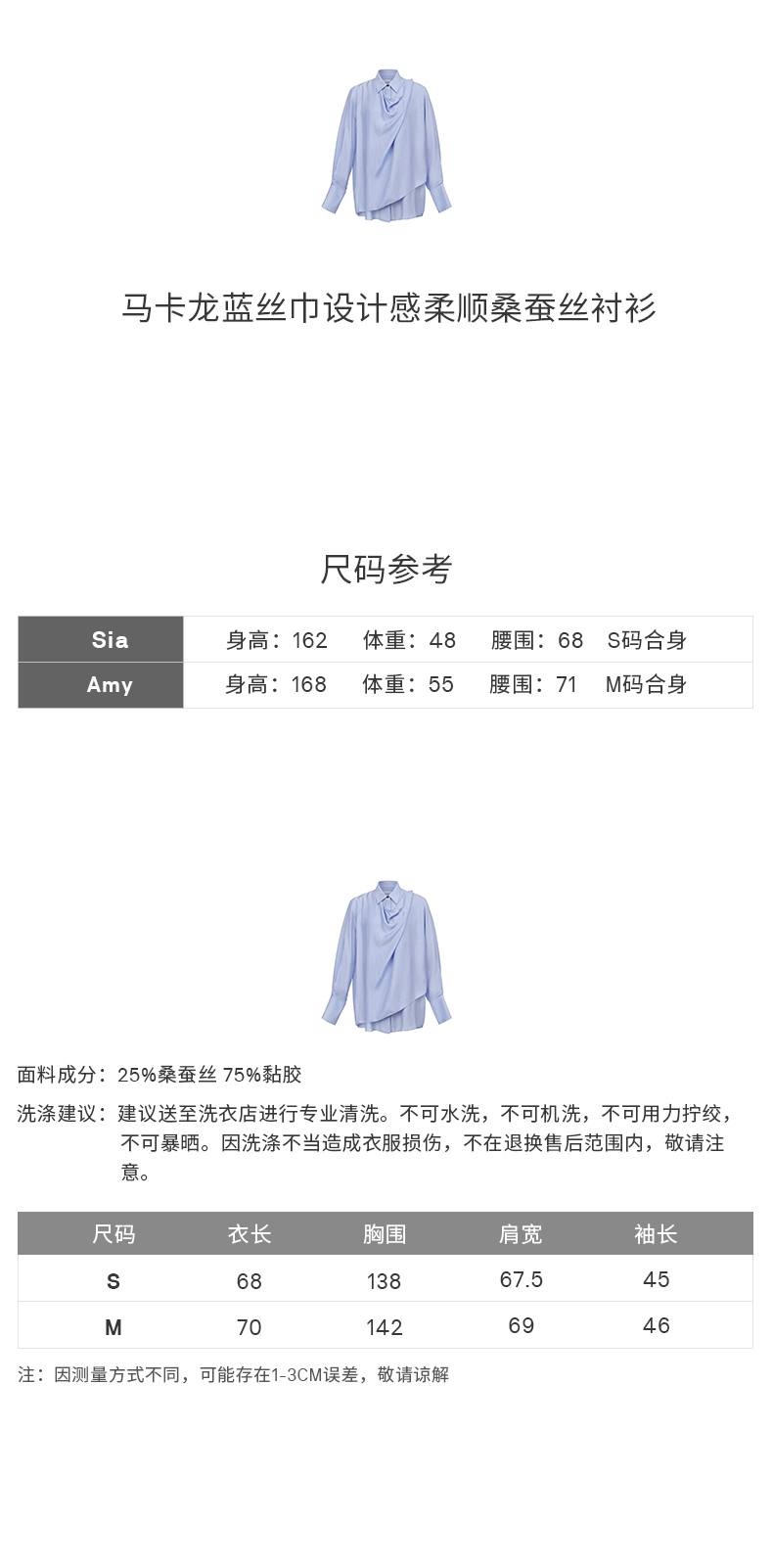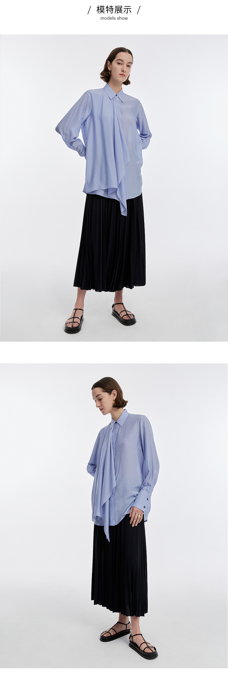 HIDEMI 马卡龙蓝丝巾设计感柔顺桑蚕丝衬衫