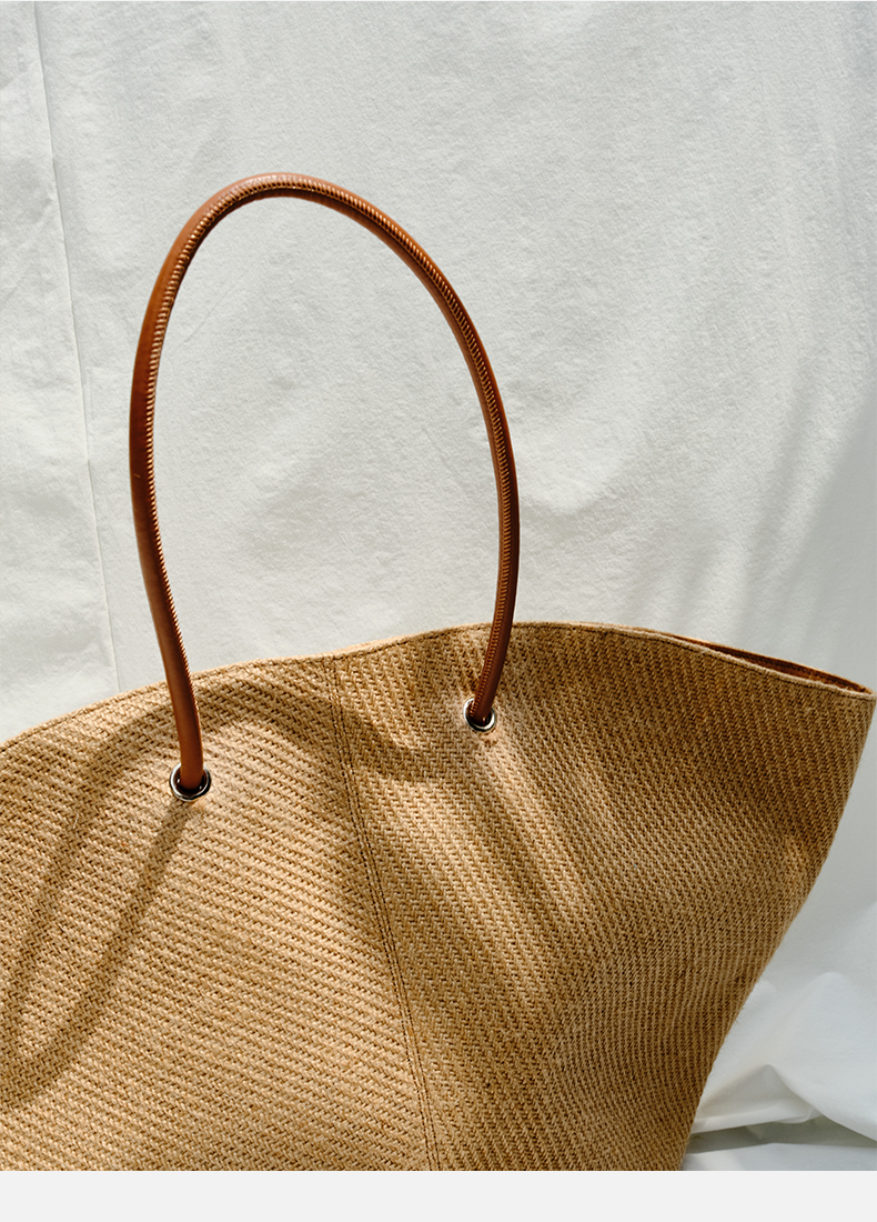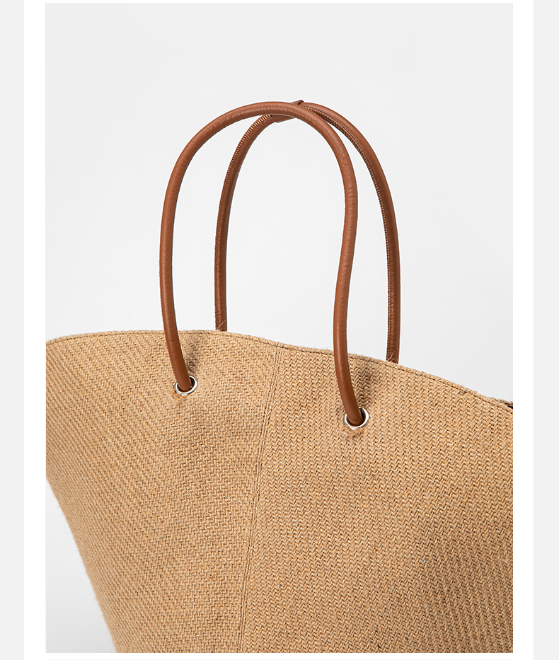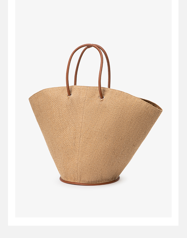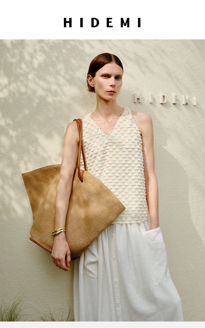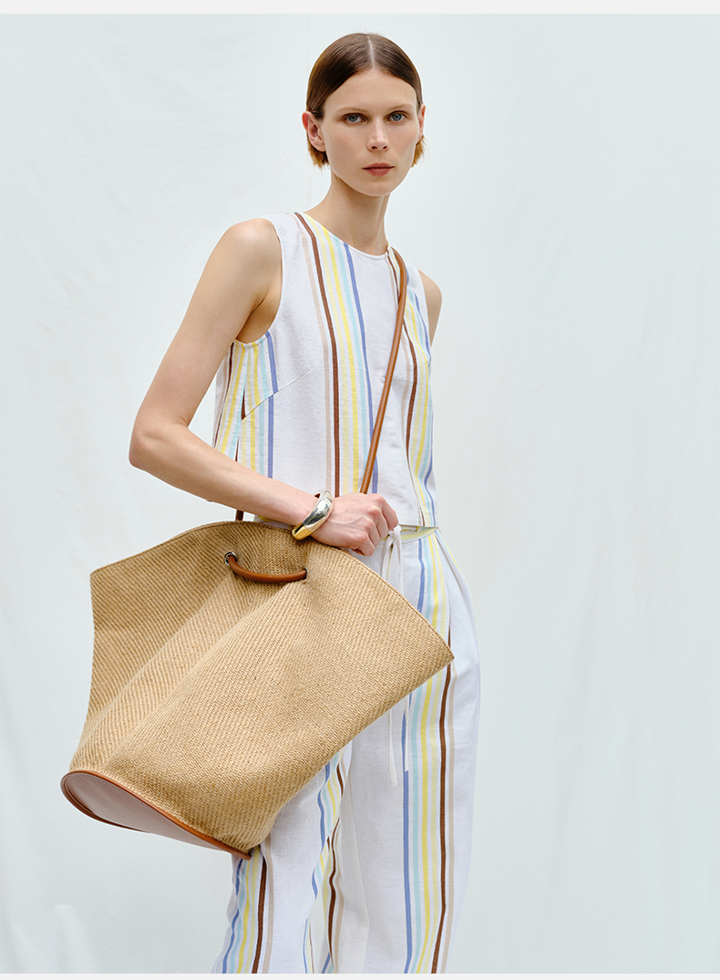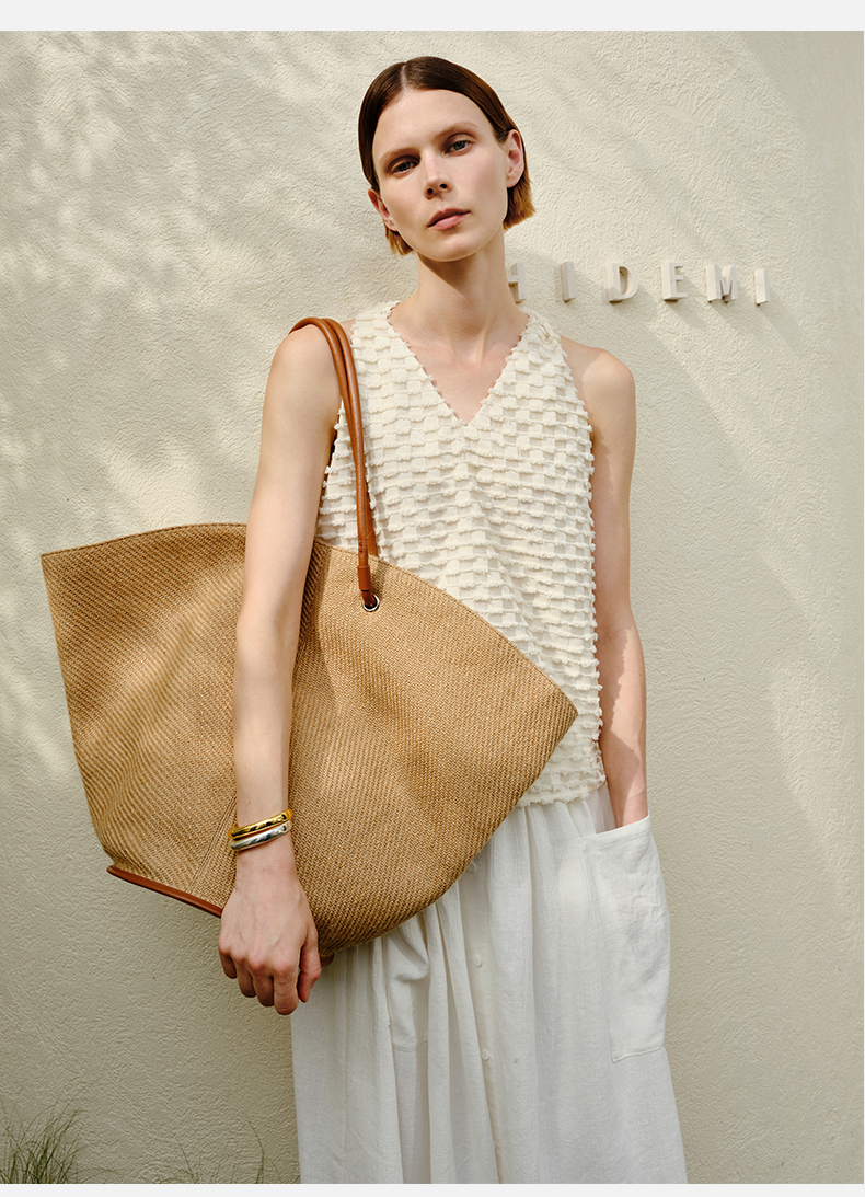HIDEMI 度假系列草编织拼皮可调节肩带背包