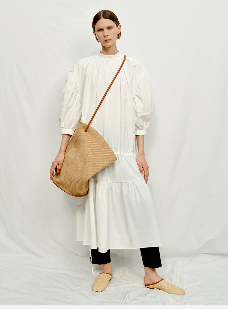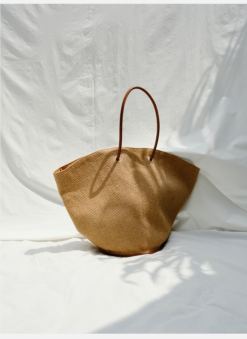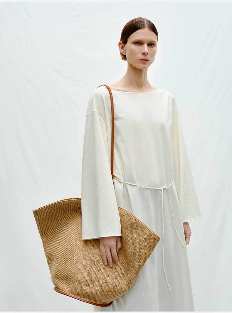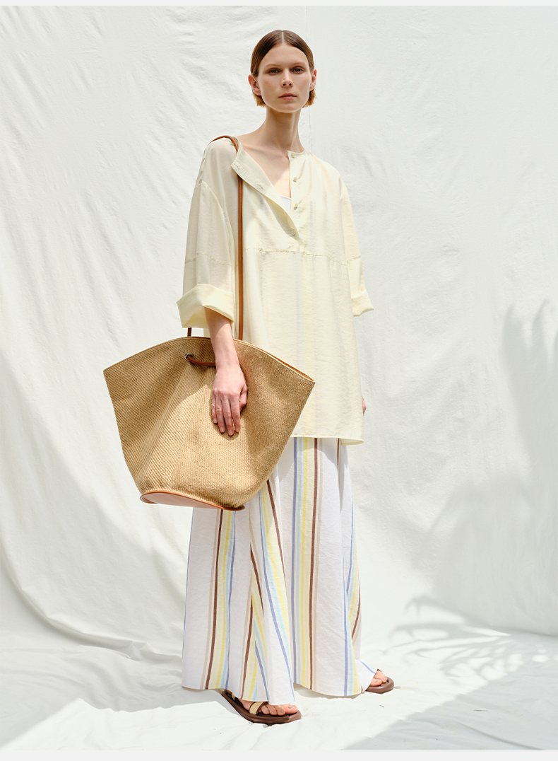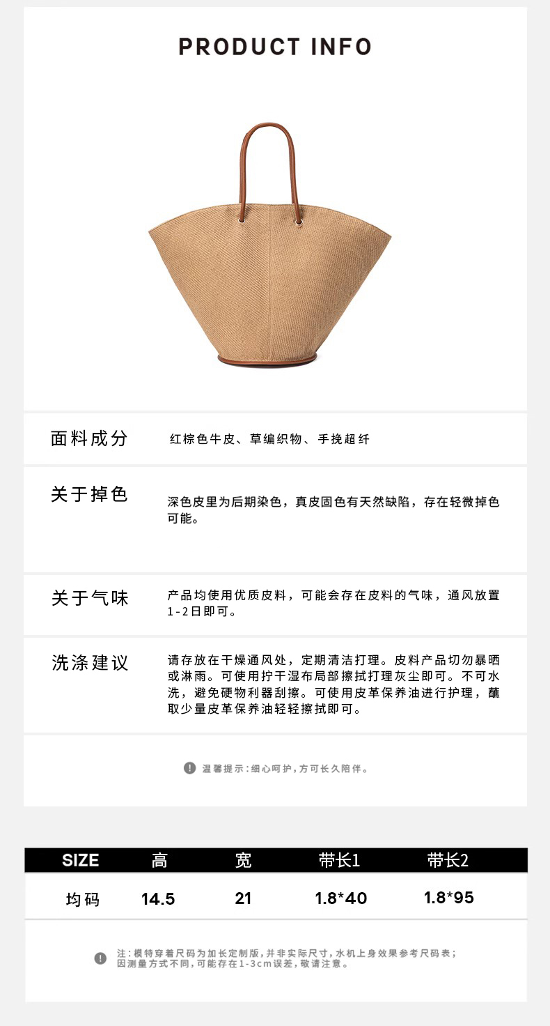 HIDEMI 度假系列草编织拼皮可调节肩带背包