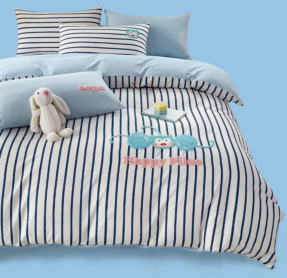 ³ 【匹鲁重工刺绣款全棉三/四件套】新疆长绒棉 设计师款万针刺绣 床笠&床单可选 XN03-CRMM-PL
