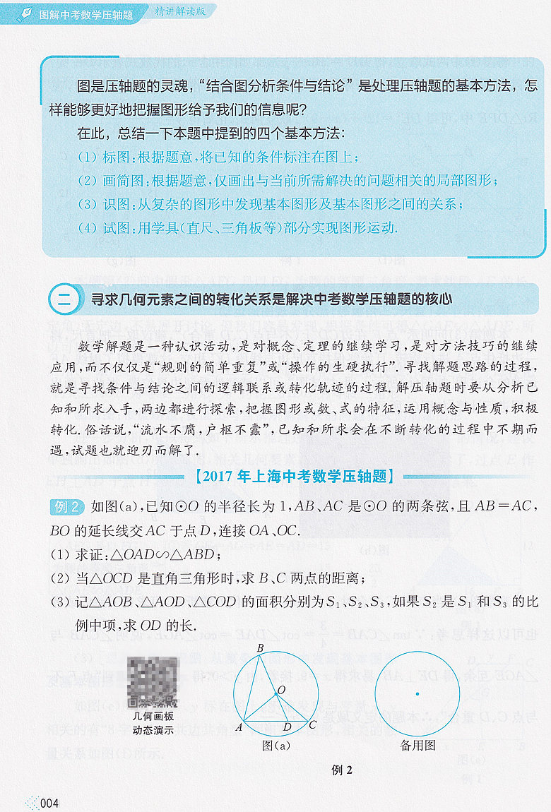 图解中考数学压轴题 精讲解读版 赠几何画板动态演示 各类压轴题科学分类解题思路与通发总结关键步骤详细图解 华东理工大学出版社