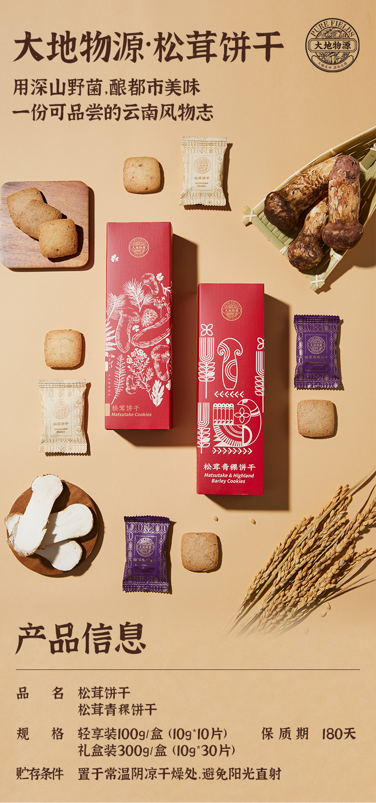 大地物源 松茸饼干松茸青稞饼干100g/盒 咸香酥脆