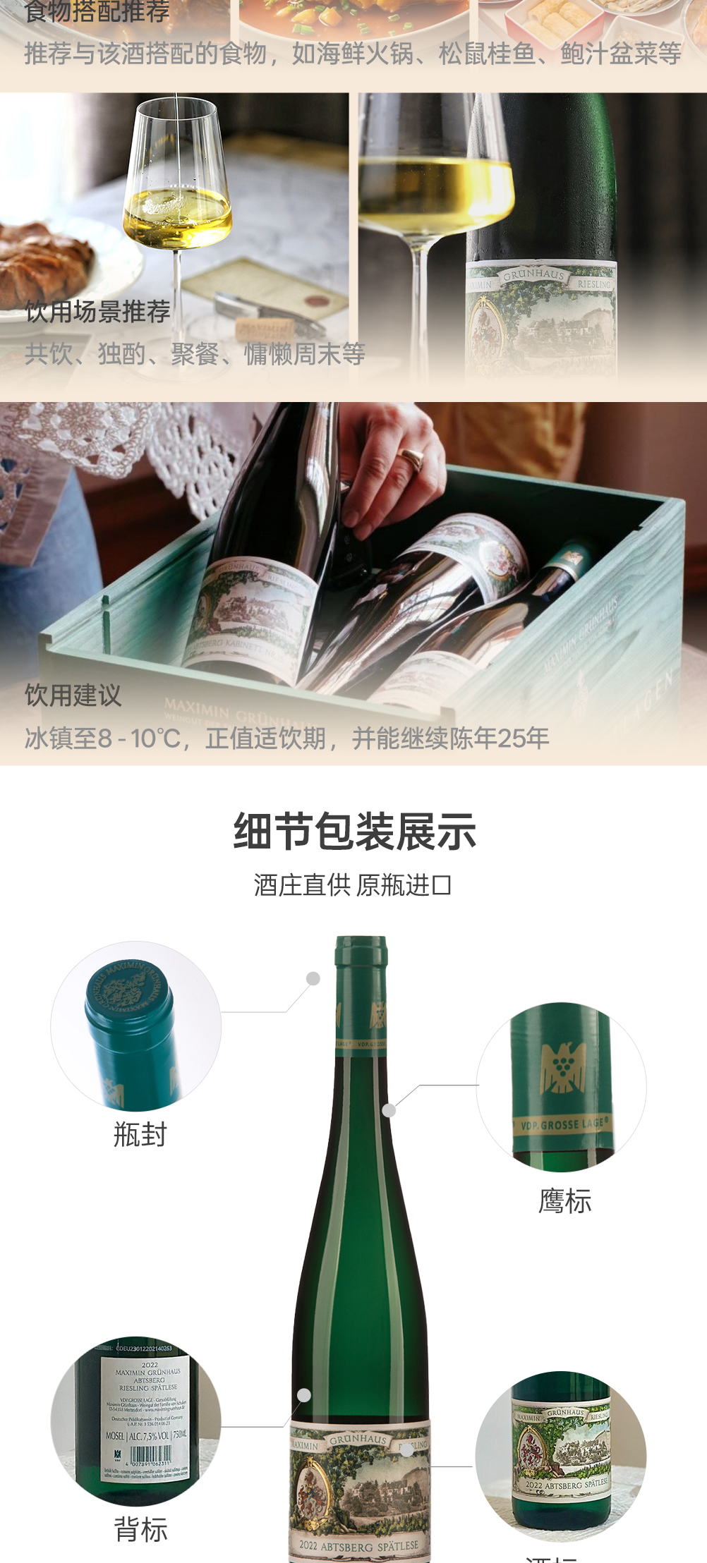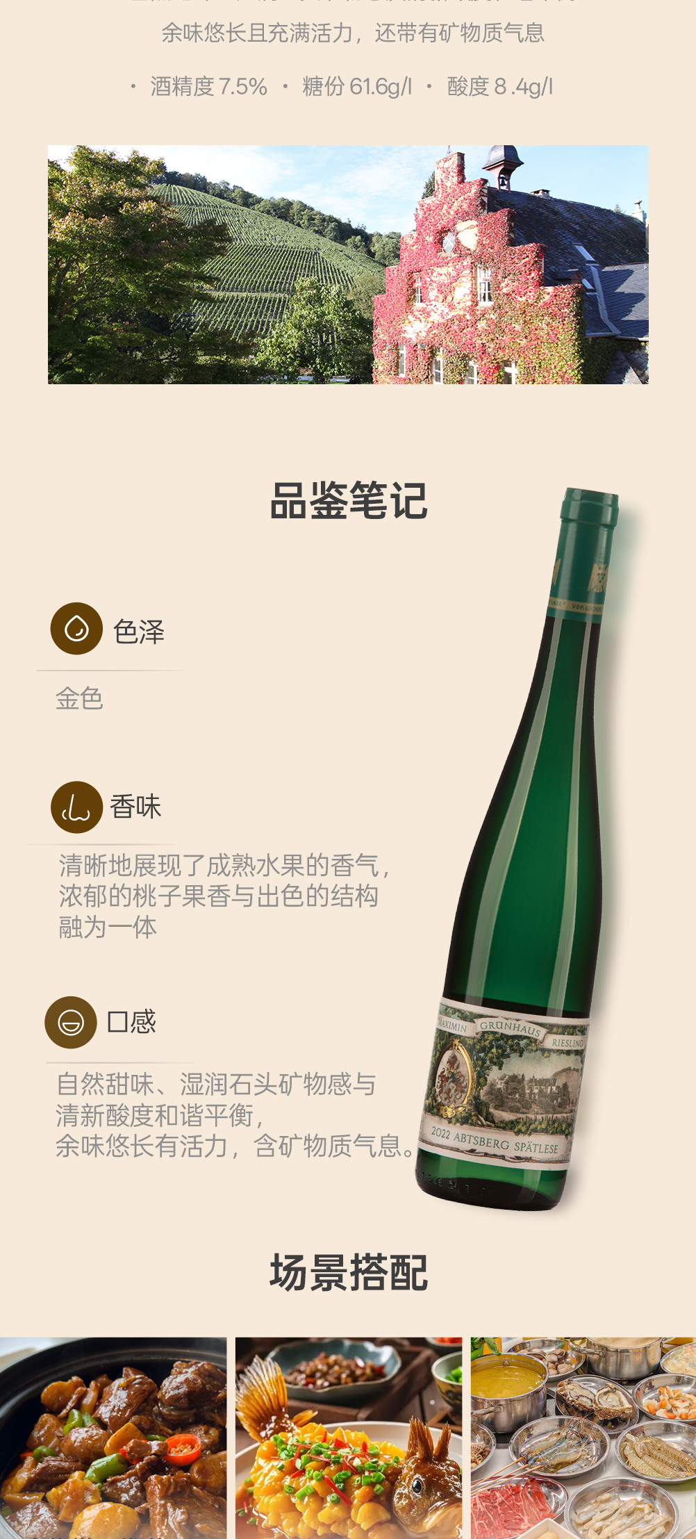 漫翠园雅思堡雷司令晚摘白葡萄酒2022 甜型 7.5%vol 750ml