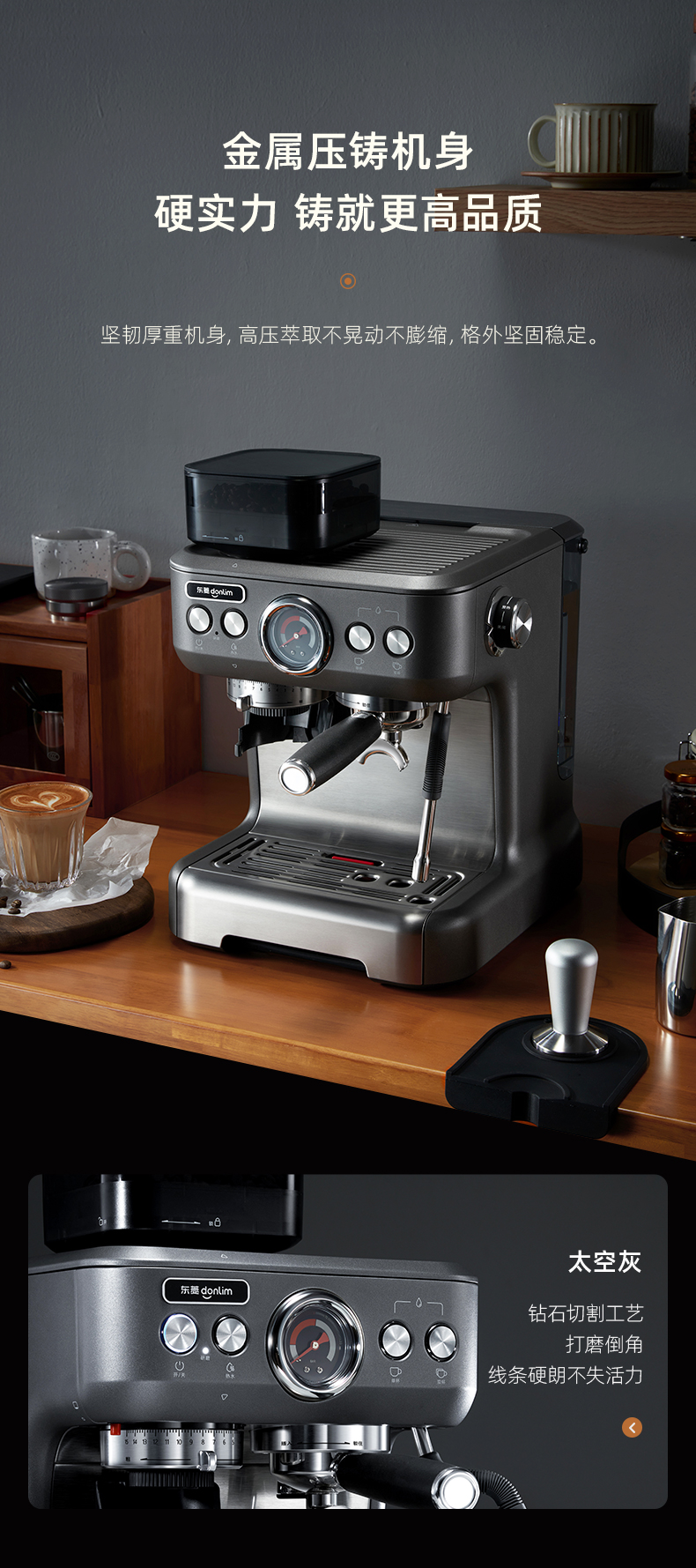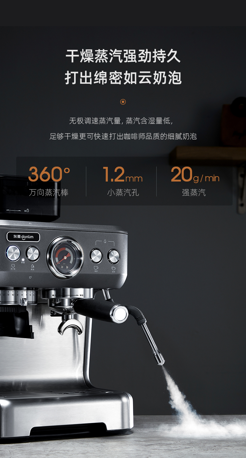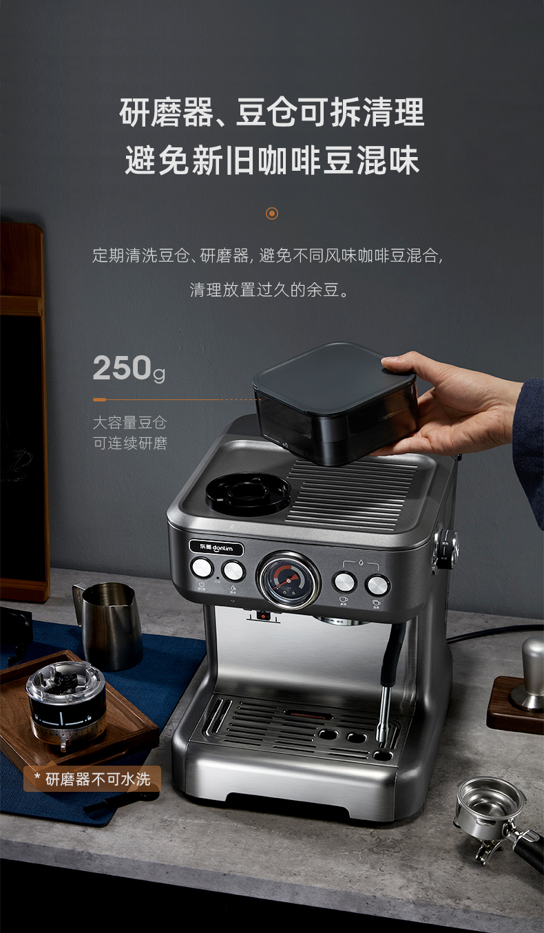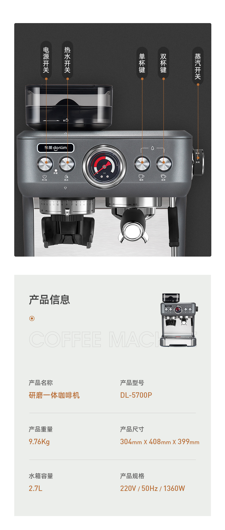 【秒杀】东菱研磨一体双泵双加热咖啡机家用小型全半自动意式DL-5700P